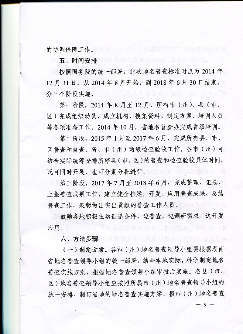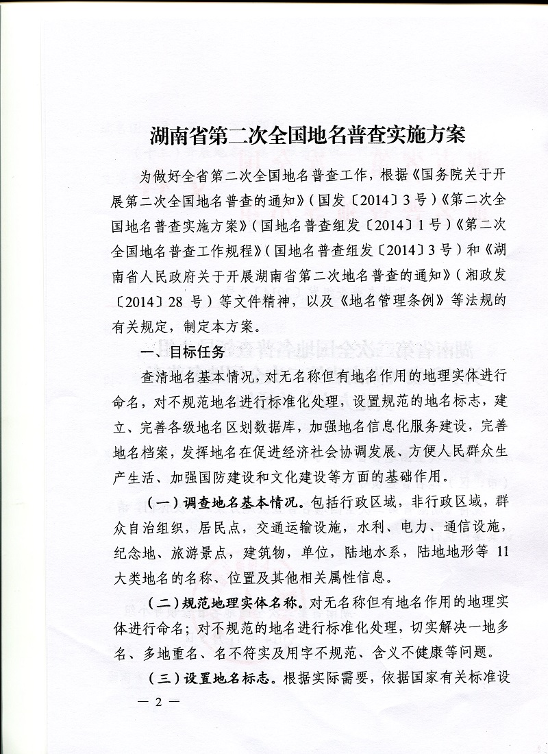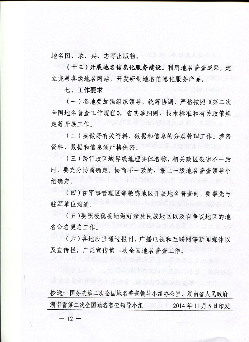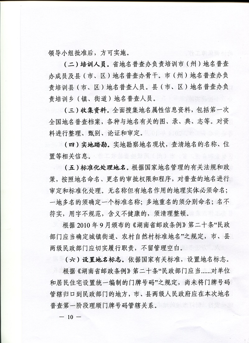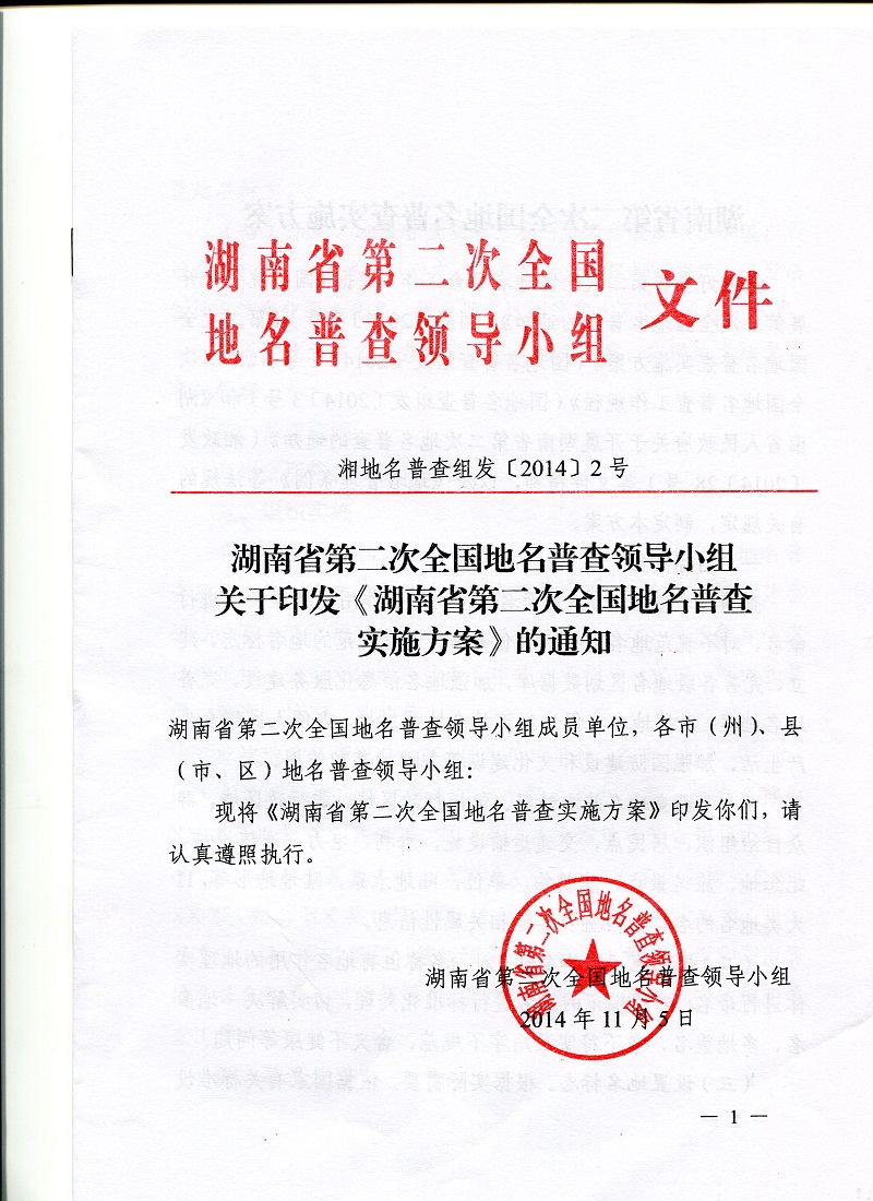 湖南省第二次全国地名普查领导小组关于印发《湖南省第二次全国地名普查实施方案》的通知