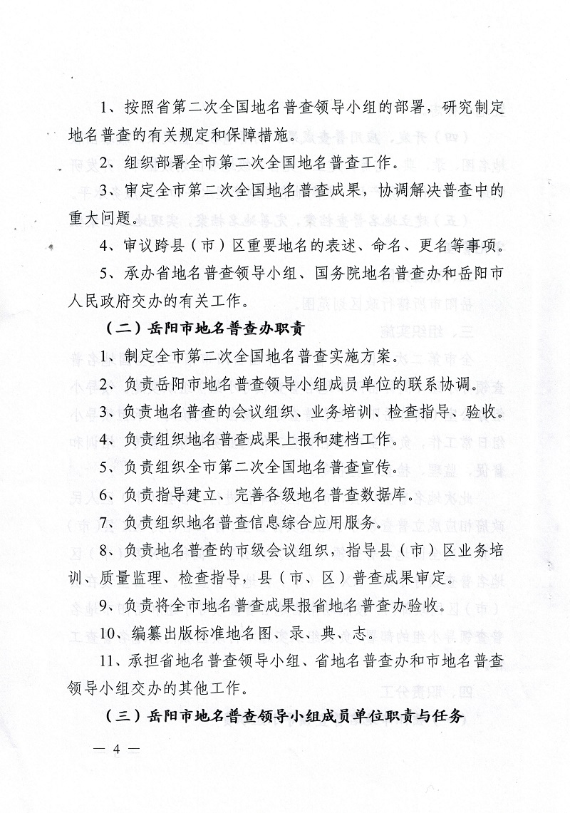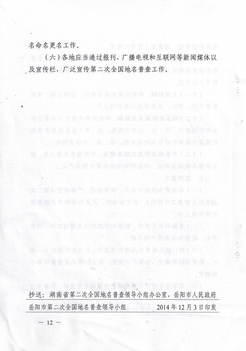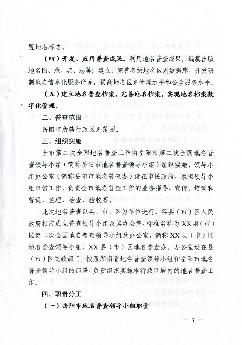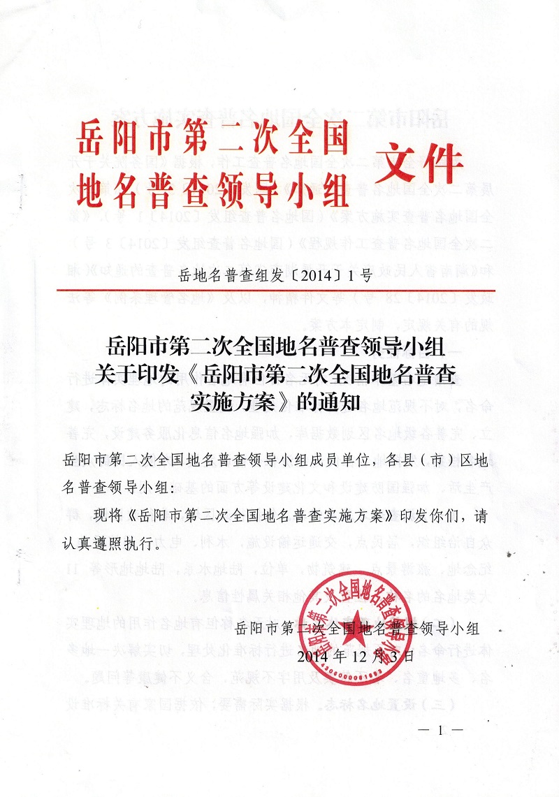 岳阳市第二次全国地名普查领导小组关于印发《岳阳市第二次全国地名普查实施方案》的通知