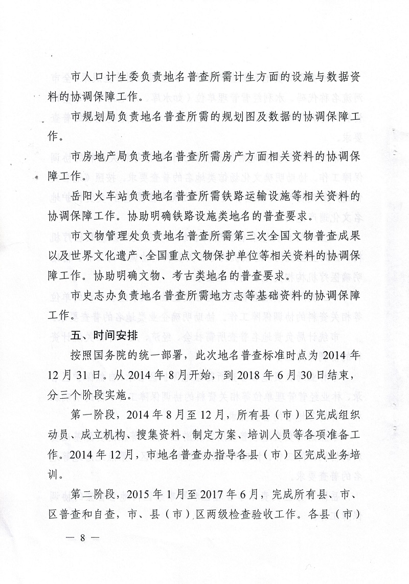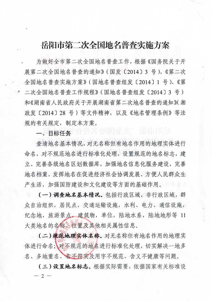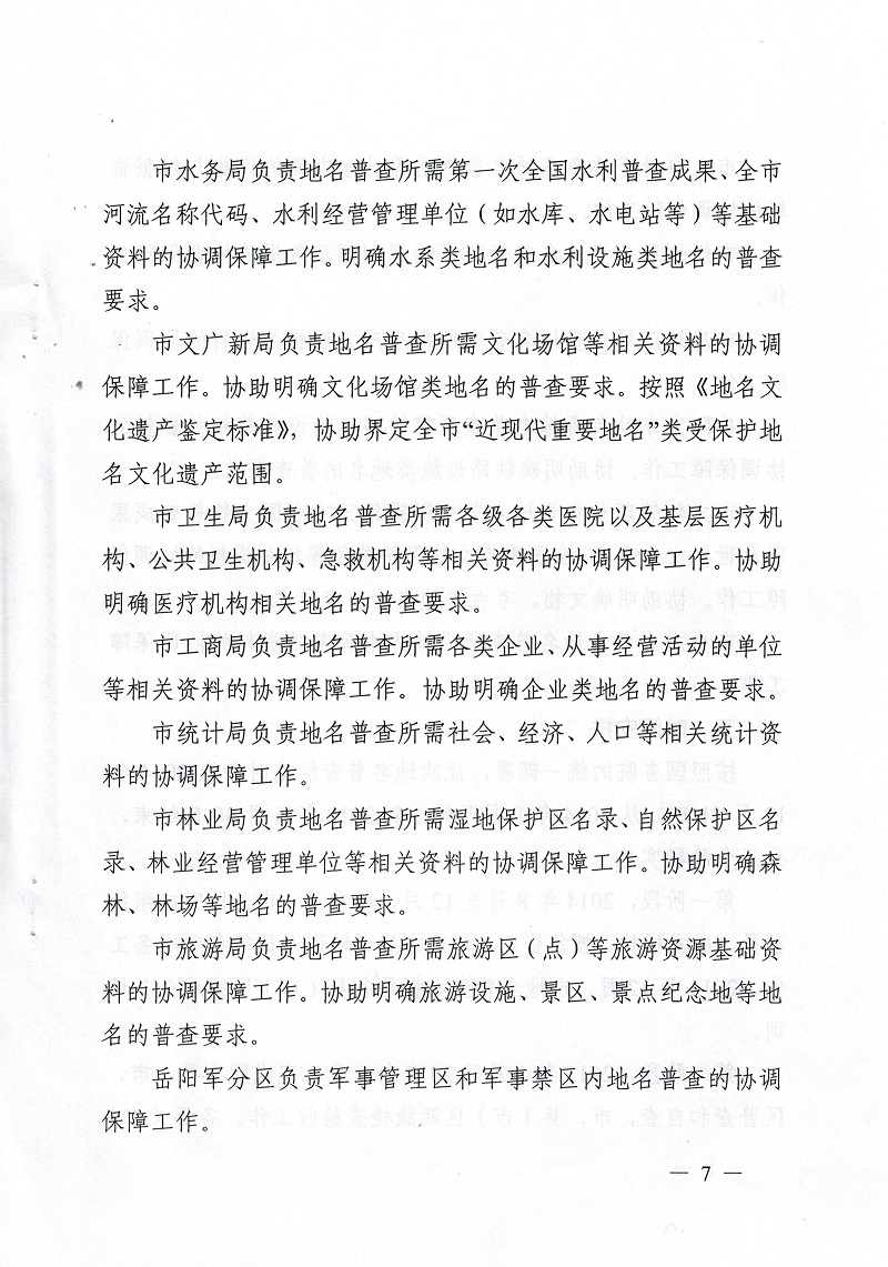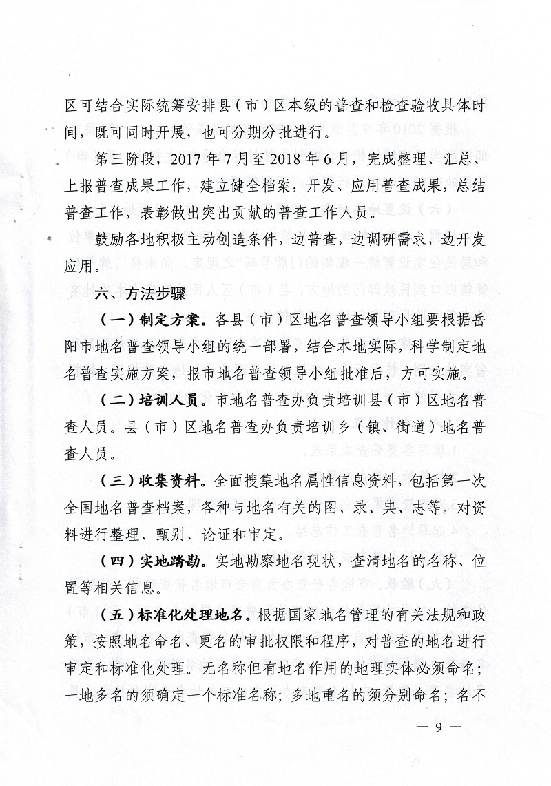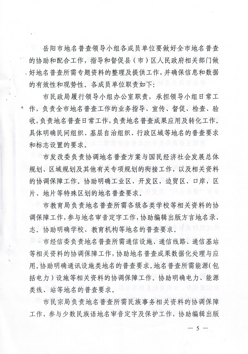岳阳市第二次全国地名普查领导小组关于印发《岳阳市第二次全国地名普查实施方案》的通知