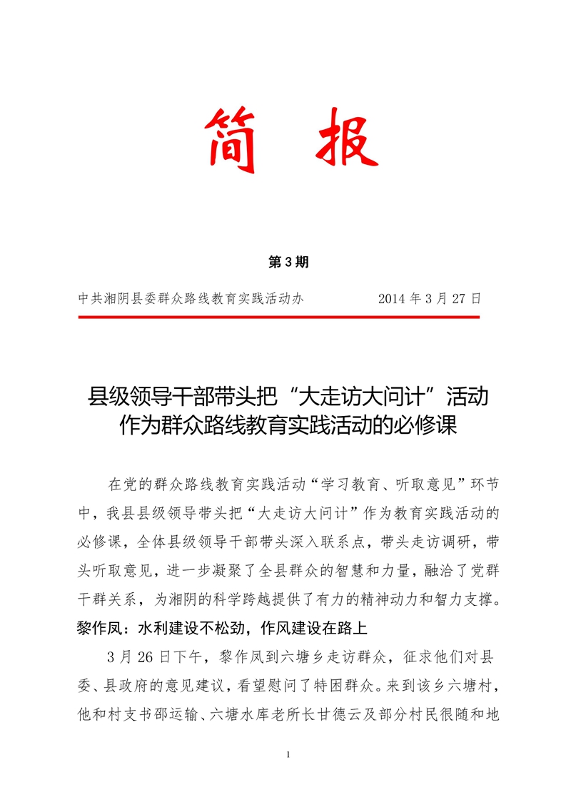 党的群众路线教育实践活动简报第3期