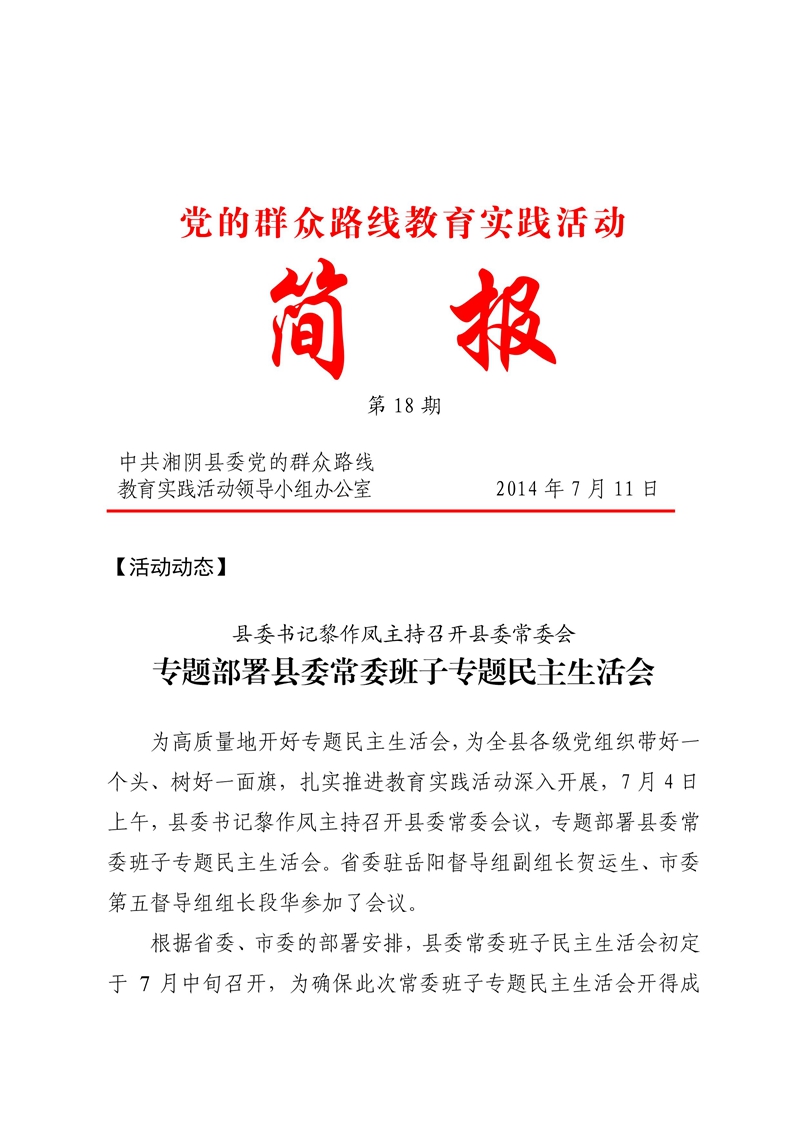 党的群众路线教育实践活动简报第18期