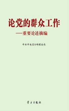 由中宣部理论局组织选编出版的《论党的群众工作——重要论述摘编》,选编了毛泽东、邓小平、江泽民和胡锦涛同志关于党的群众工作的一系列重要论述,分为“关于群众工作的重要性”“关于牢固树立群众观点”“关于自觉贯彻群众路线”“关于始终站稳群众立场”“关于群众工作主要任务”“关于提高群众工作本领”六个专题,集中反映了我们党关于群众工作的思想内涵和基本精神。