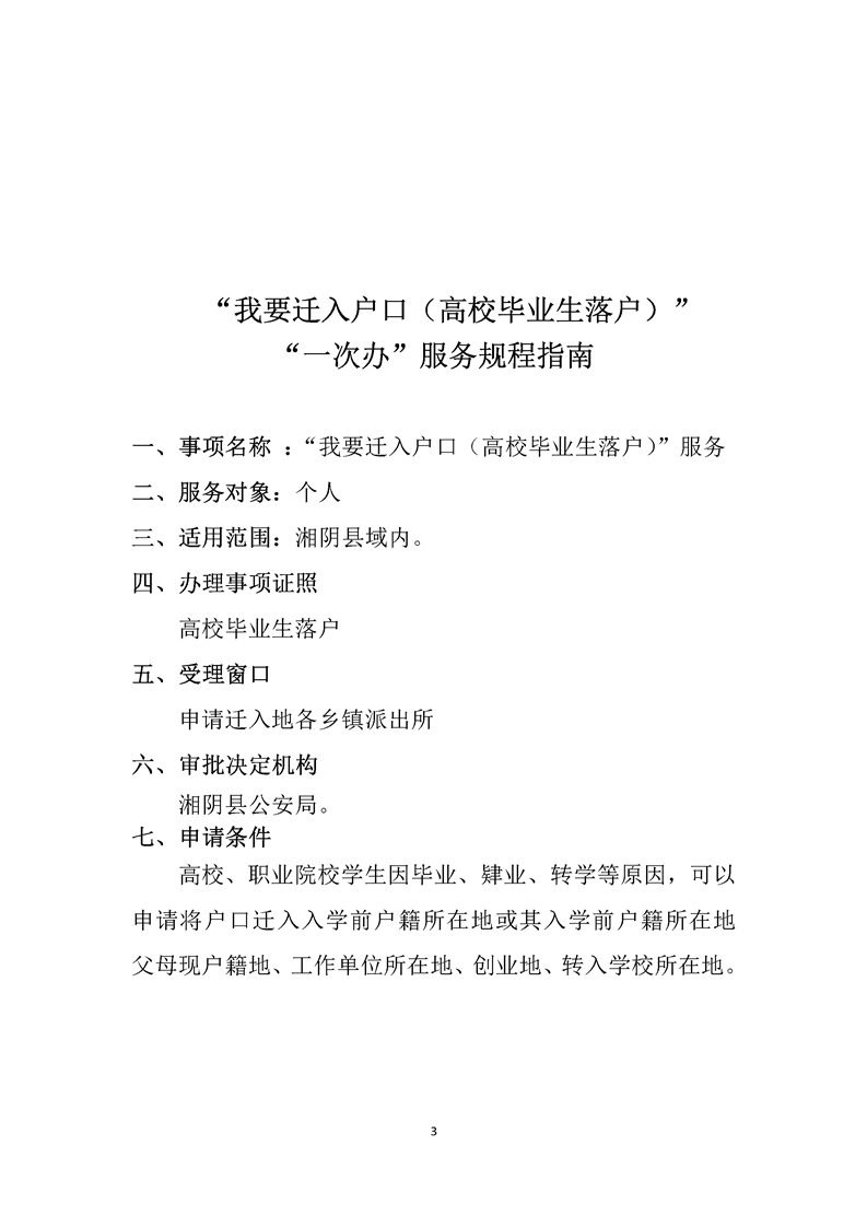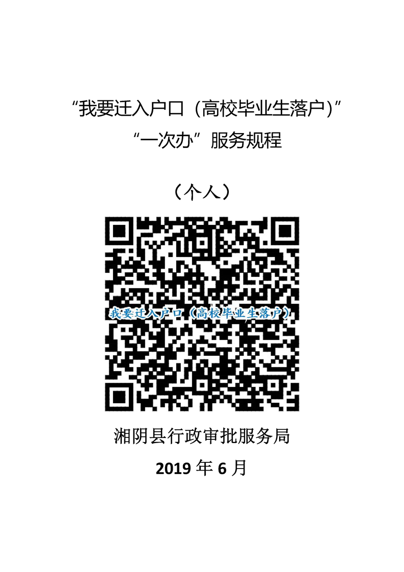“我要迁入户口(高校毕业生落户)”“一次办”服务规程(个人)