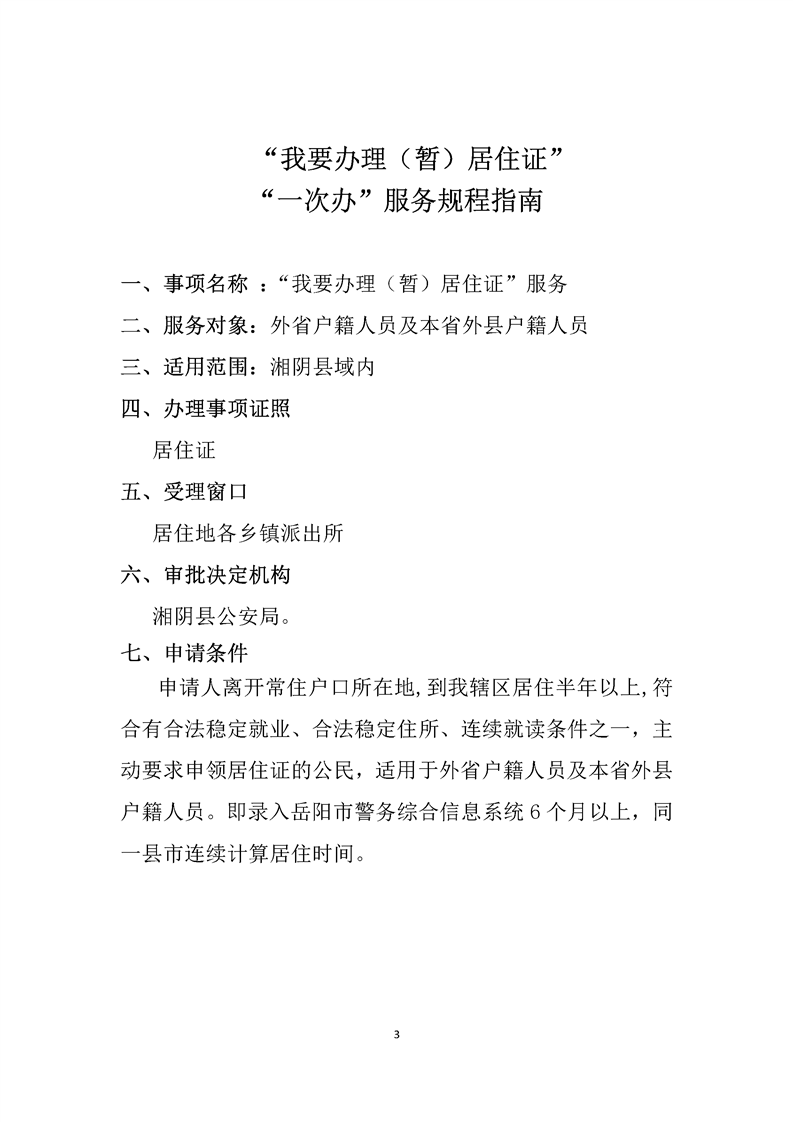 “我要办理(暂)居住证”“一次办”服务规程(个人)