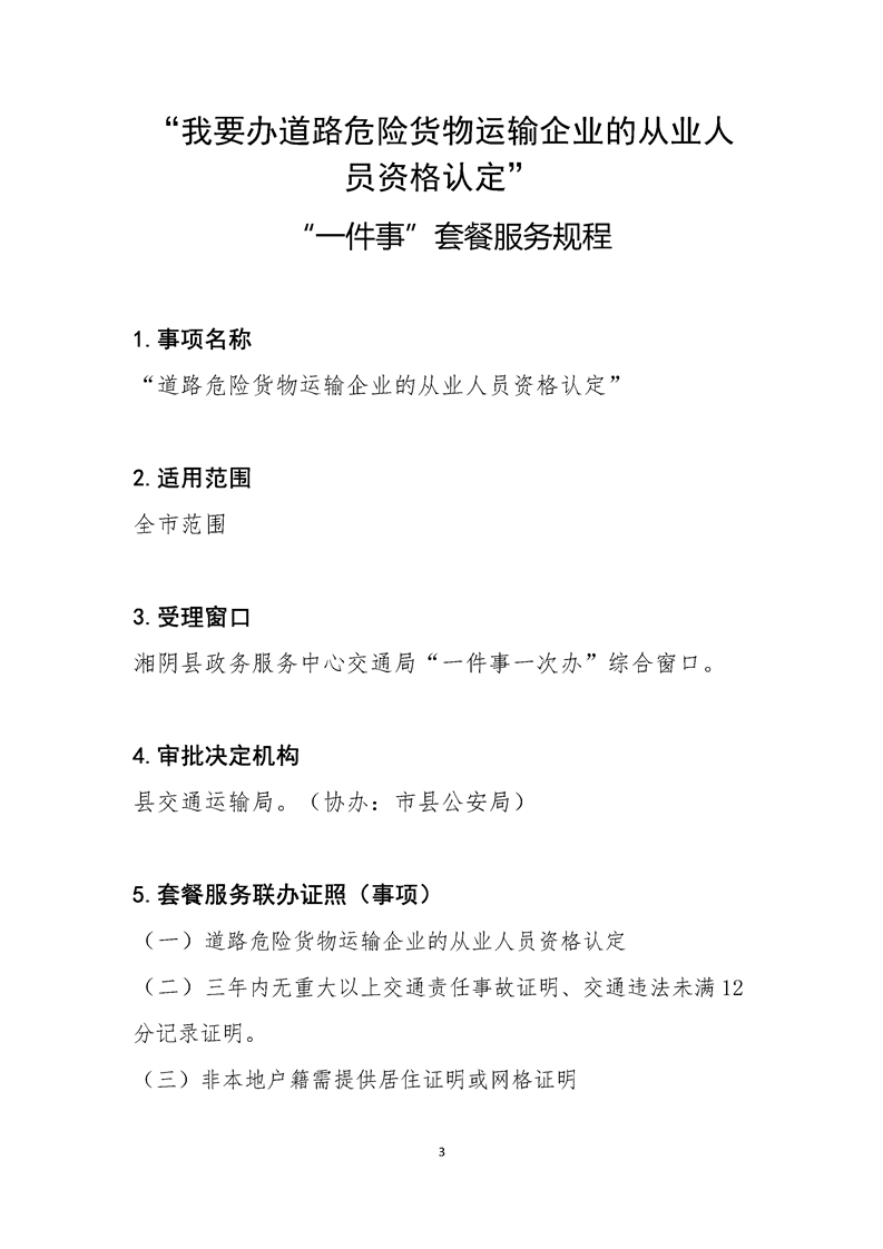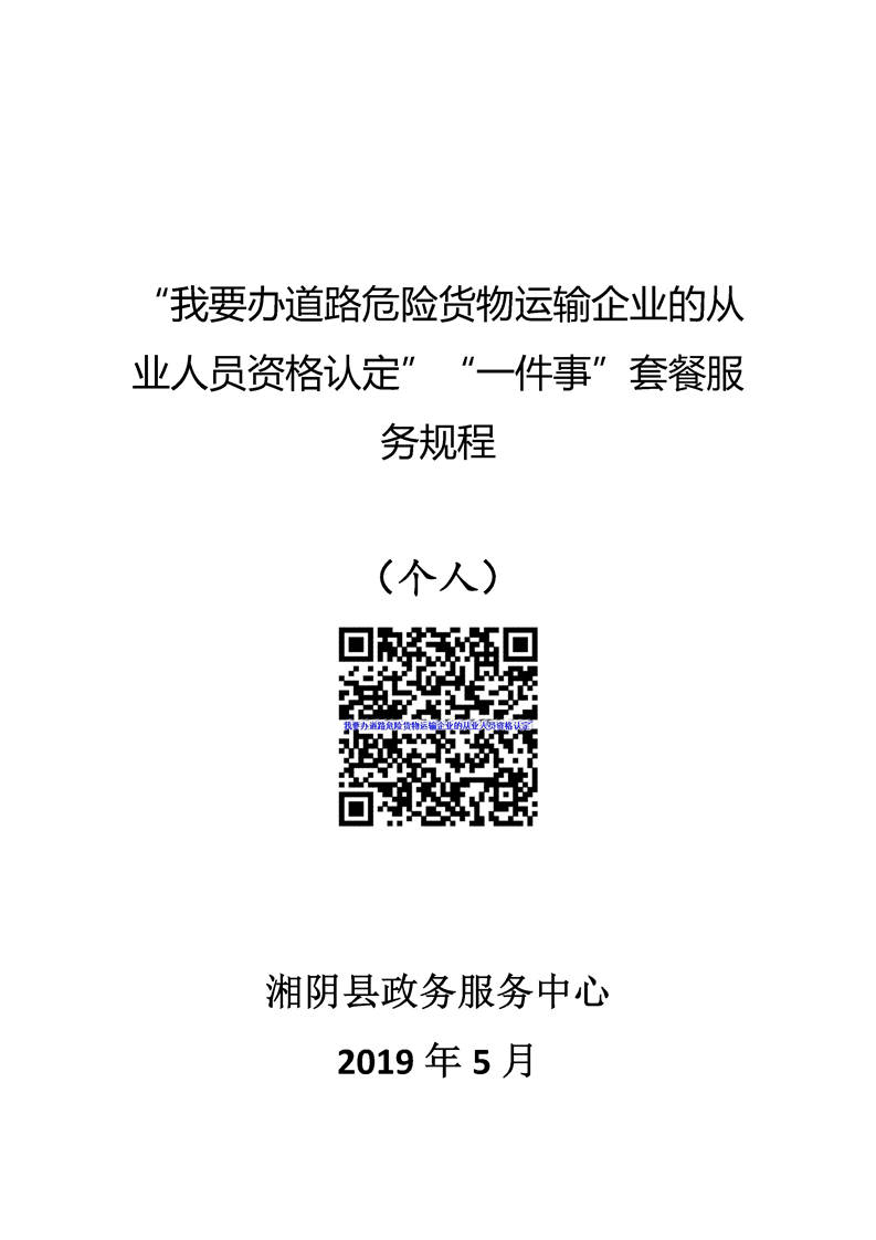 “我要办道路危险货物运输企业的从业人员资格认定”“一件事”套餐服务规程(个人)