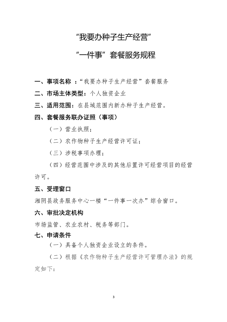 “我要办种子生产经营”(个人独资企业)