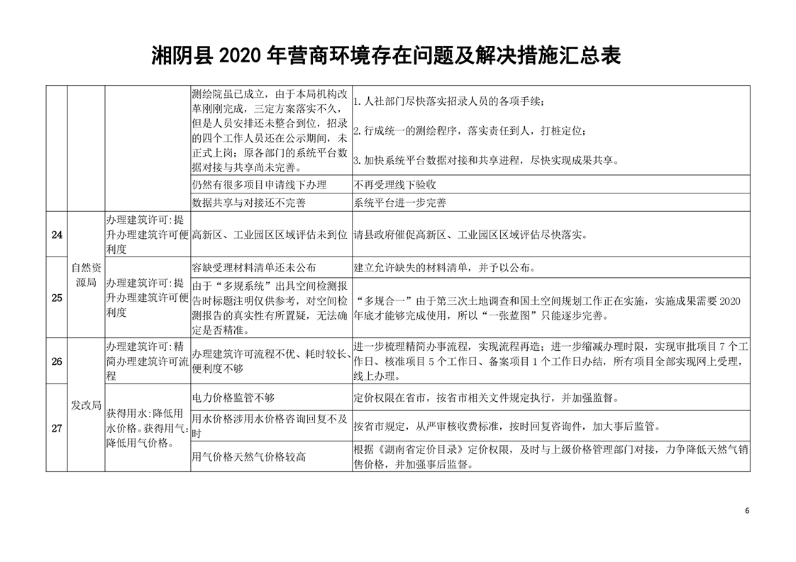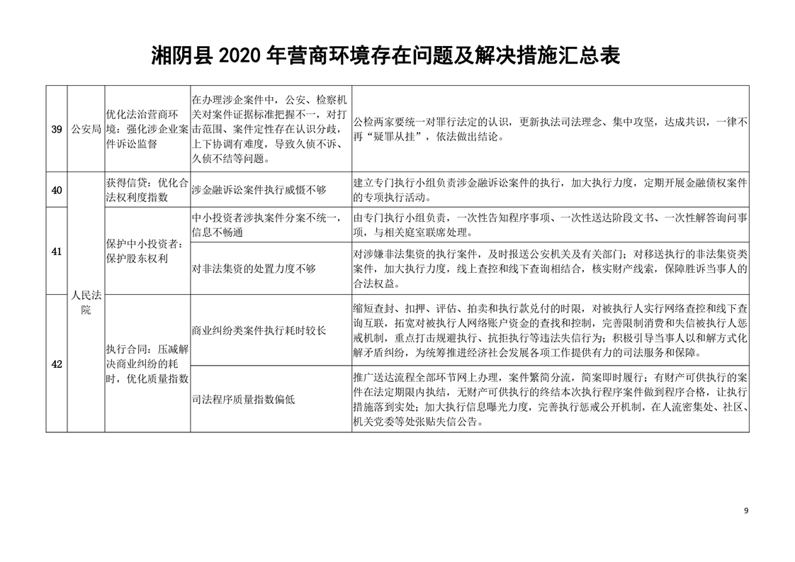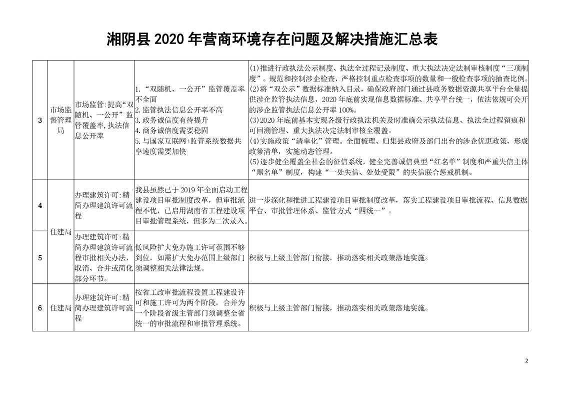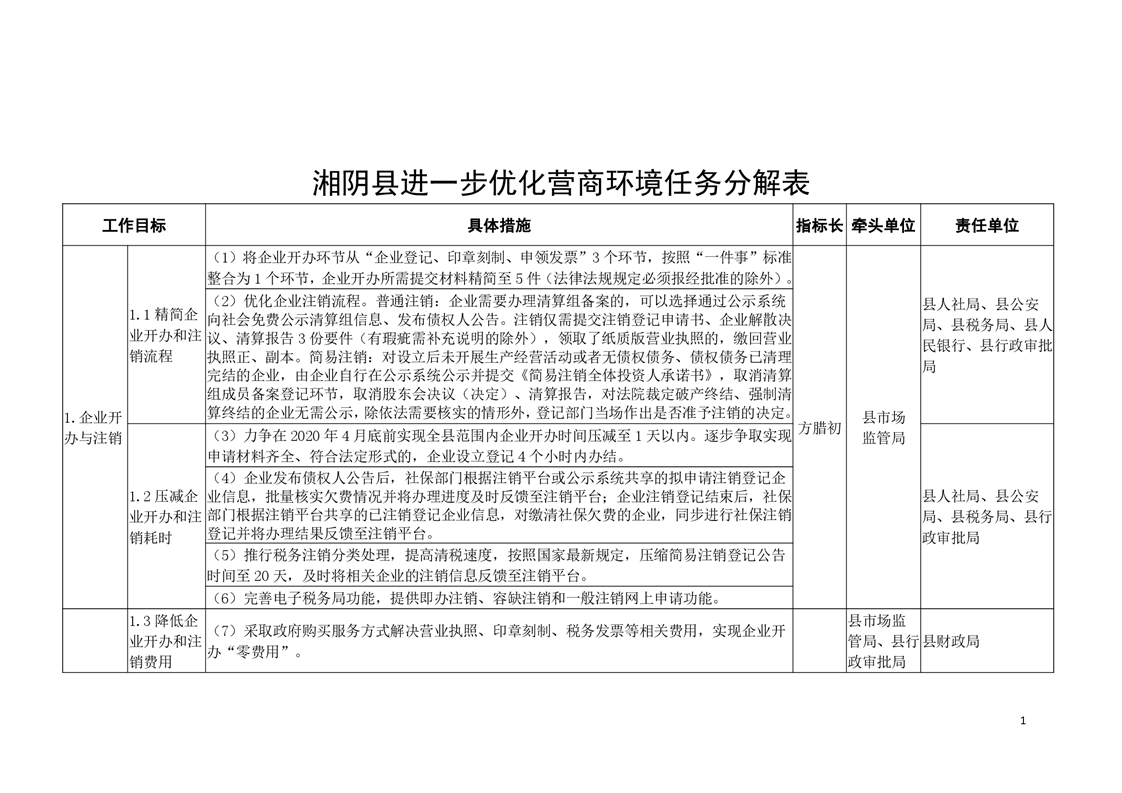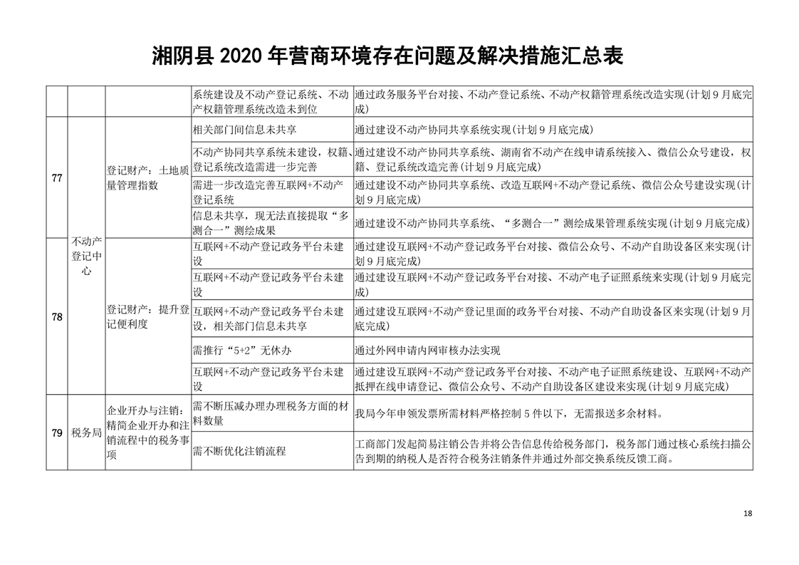 关于印发《湘阴县进一步优化营商环境任务分解表》《湘阴县2020年营商环境存在的问题及解决措施汇总表》《湘阴县部门单位营商环境评价指标责任单位和责任人汇总表》的通知