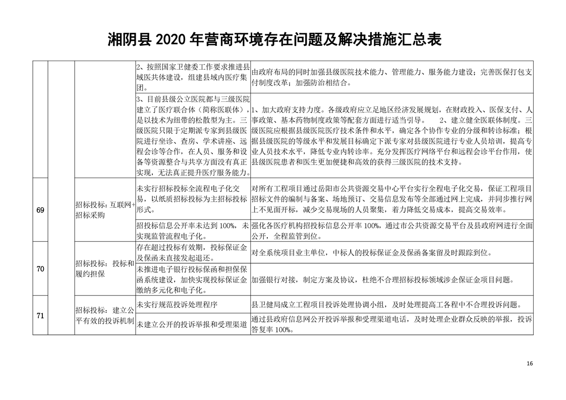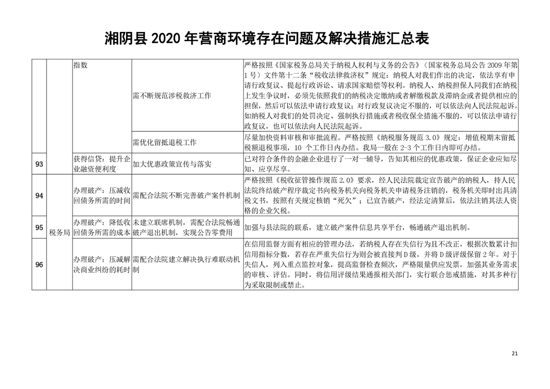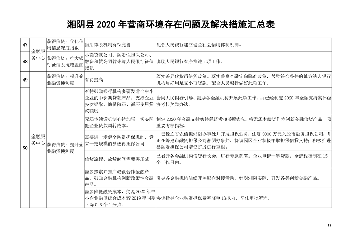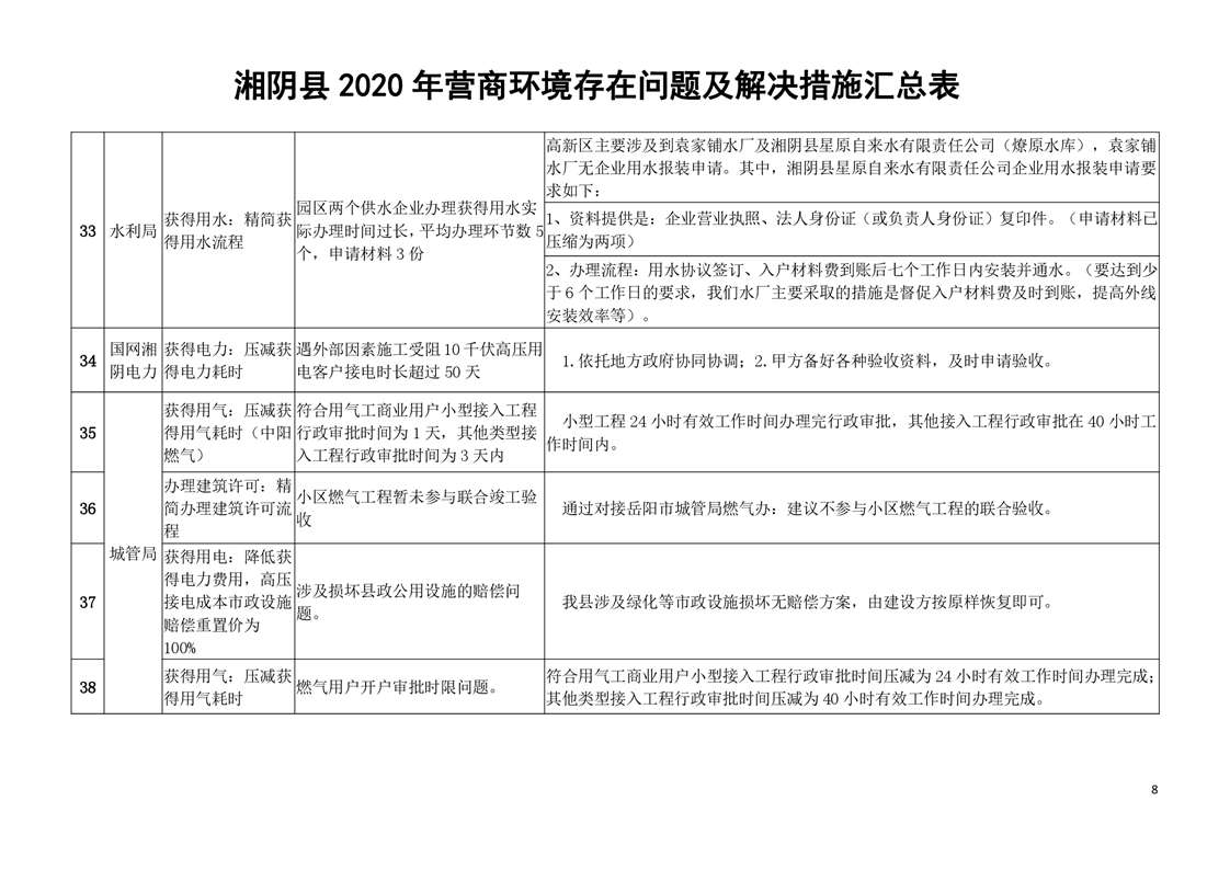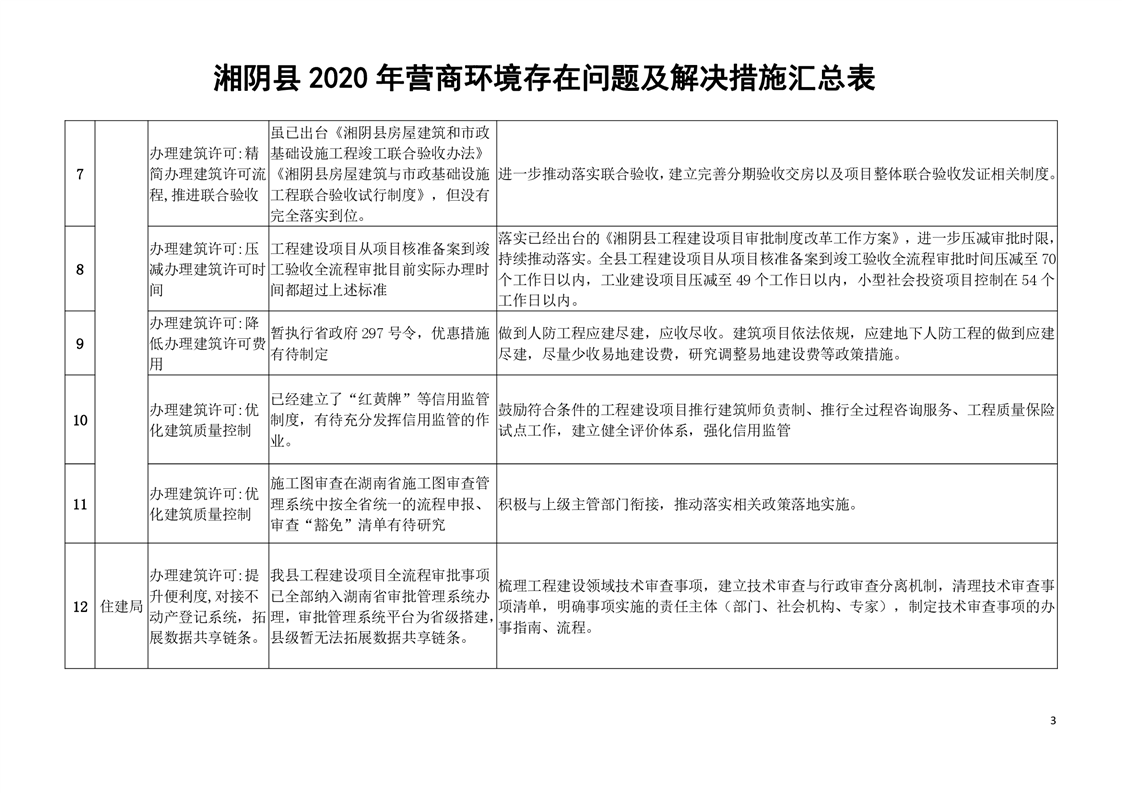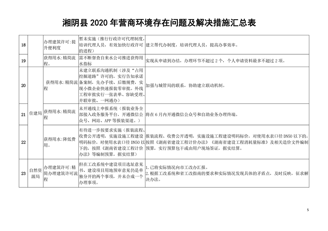 关于印发《湘阴县进一步优化营商环境任务分解表》《湘阴县2020年营商环境存在的问题及解决措施汇总表》《湘阴县部门单位营商环境评价指标责任单位和责任人汇总表》的通知