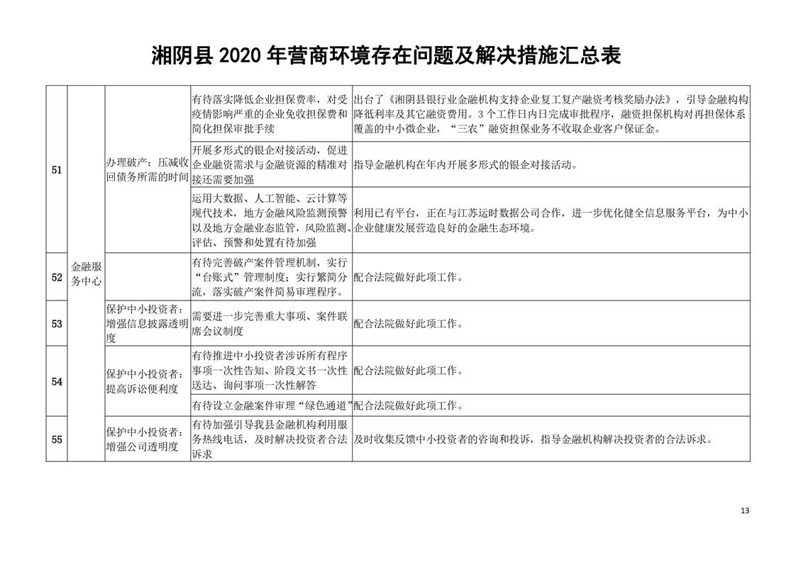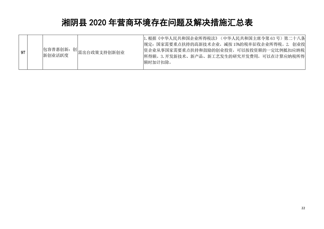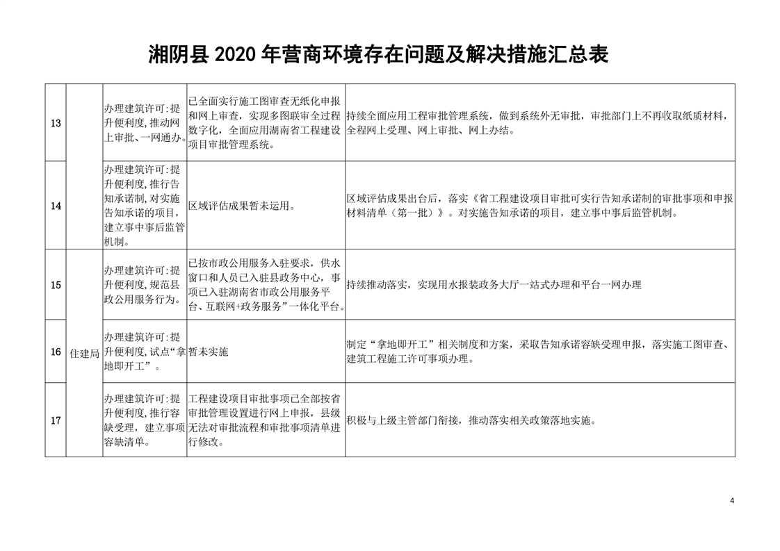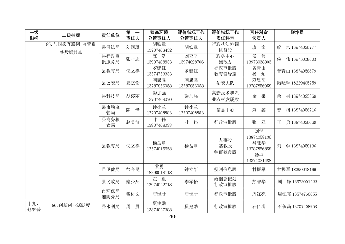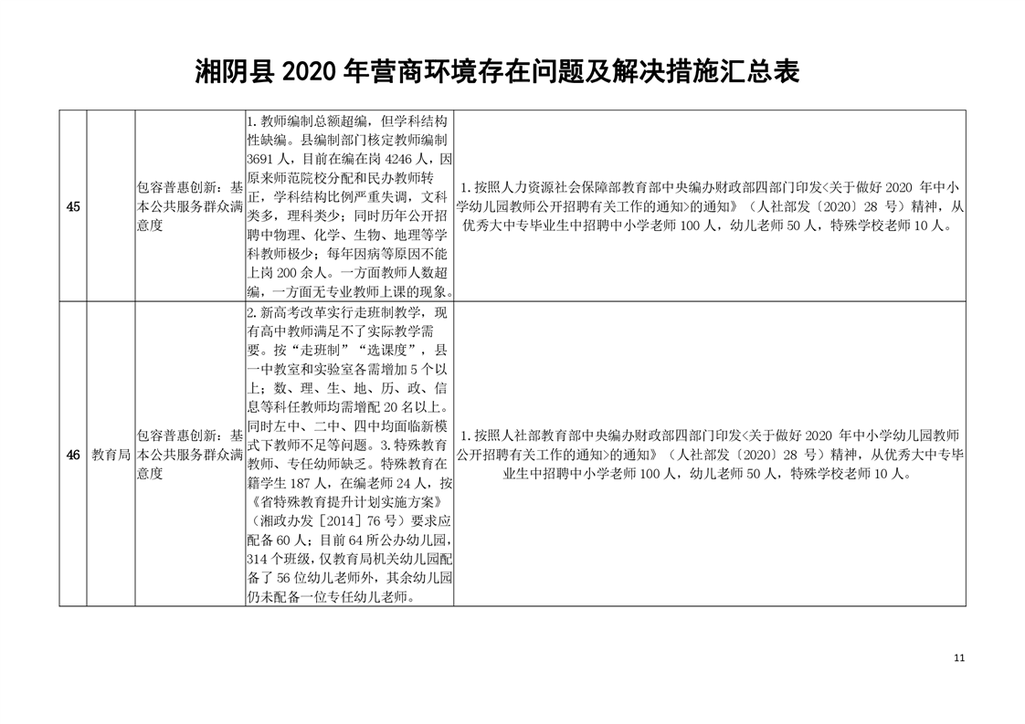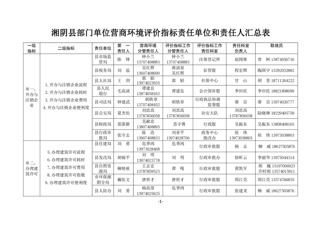 关于印发《湘阴县进一步优化营商环境任务分解表》《湘阴县2020年营商环境存在的问题及解决措施汇总表》《湘阴县部门单位营商环境评价指标责任单位和责任人汇总表》的通知