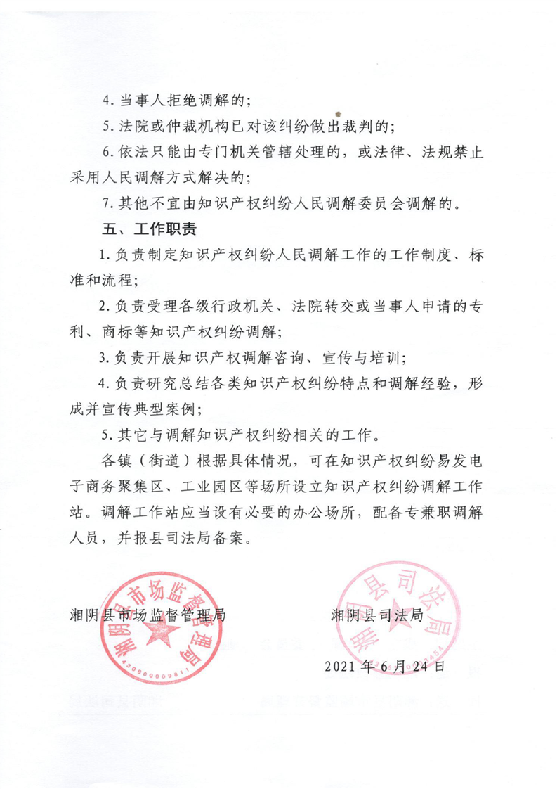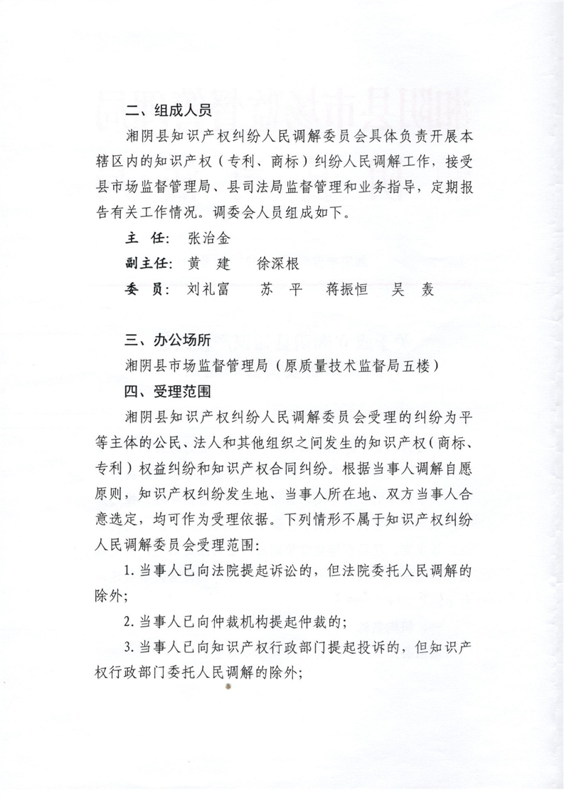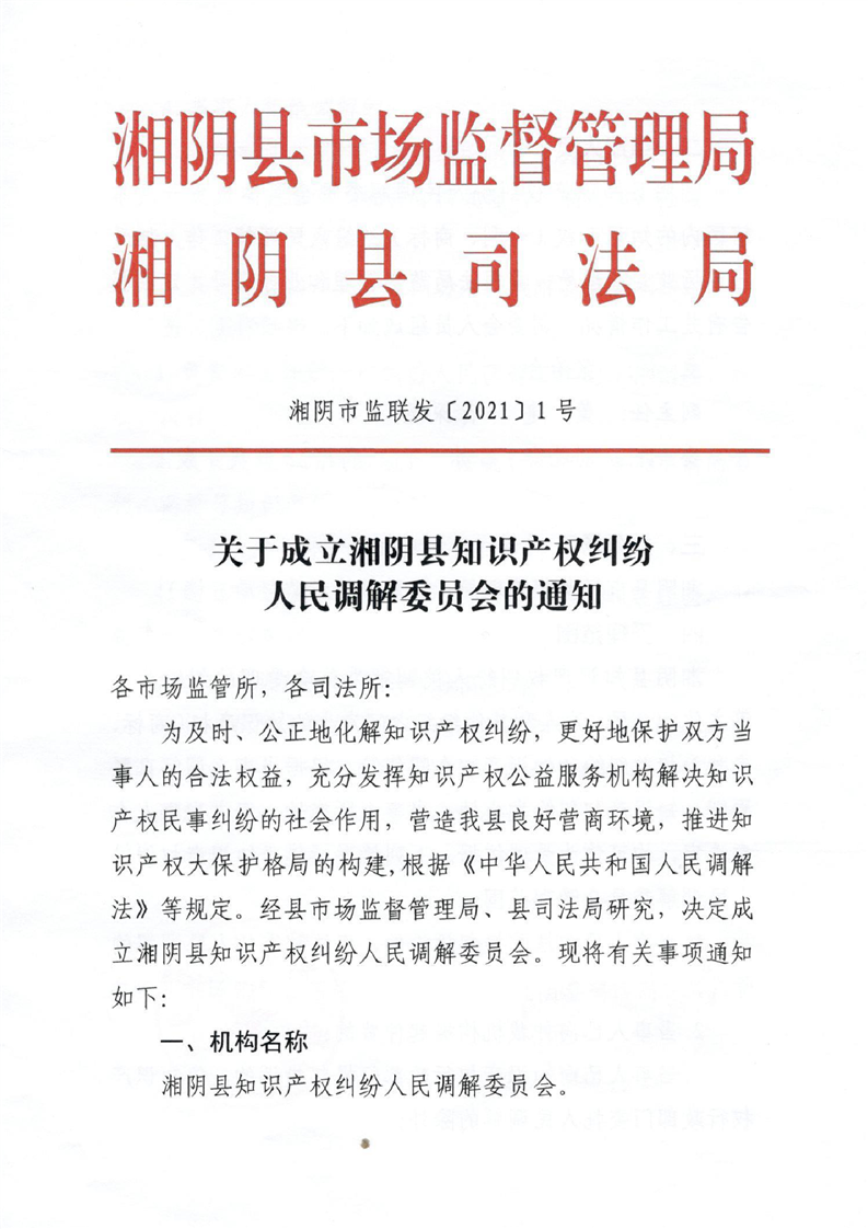 关于成立湘阴县知识产权纠纷人民调节委员会的通知