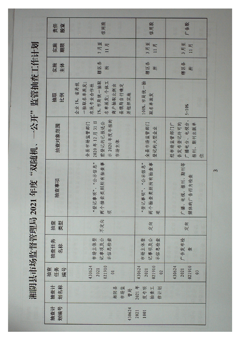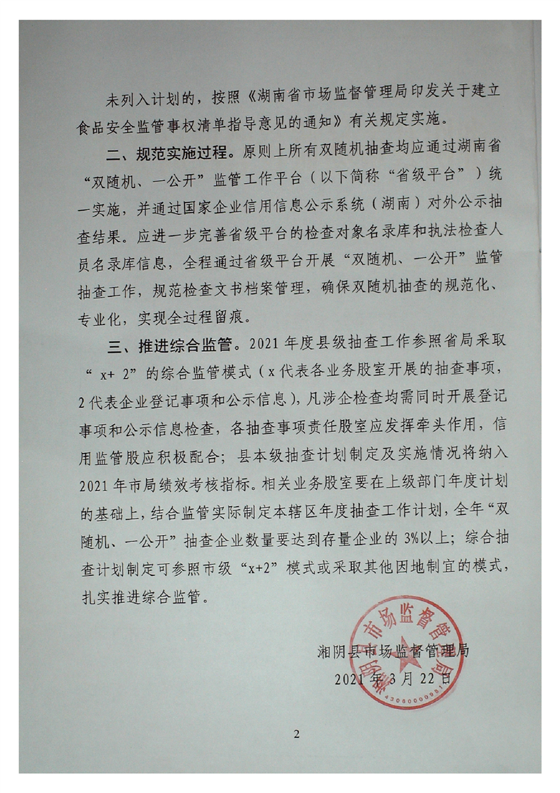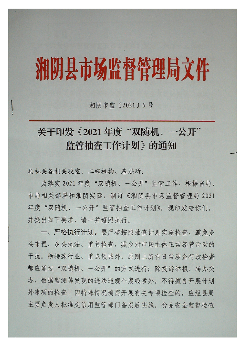 关于印发《2021年度“双随机、一公开”监管抽查工作计划》的通知