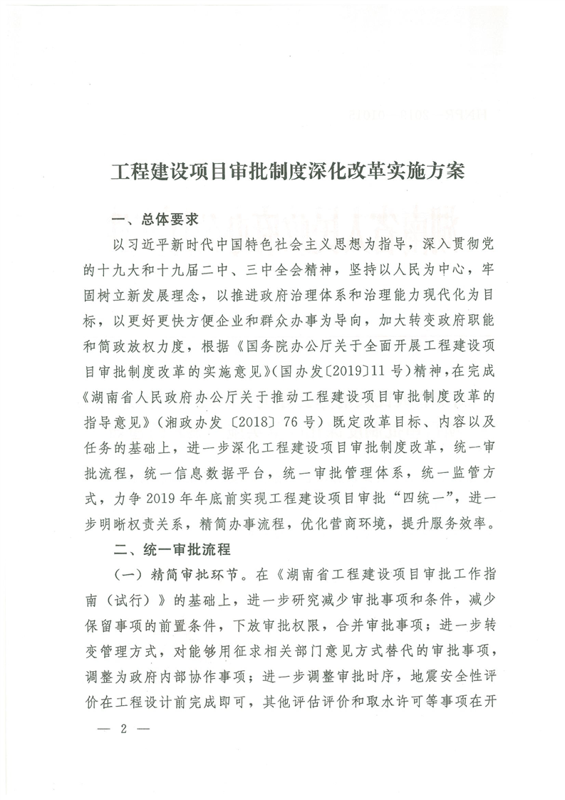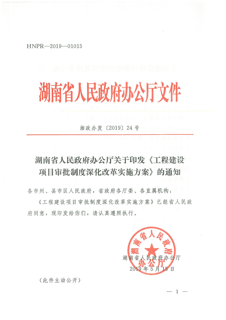 《湖南省人民政府办公厅关于印发工程建设项目审批制度深化改革实施方案的通知》(湘政办发〔2019〕24号)