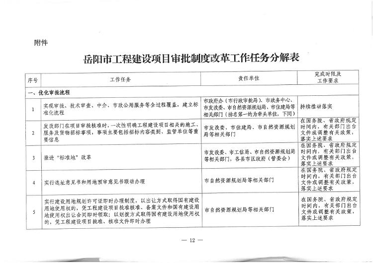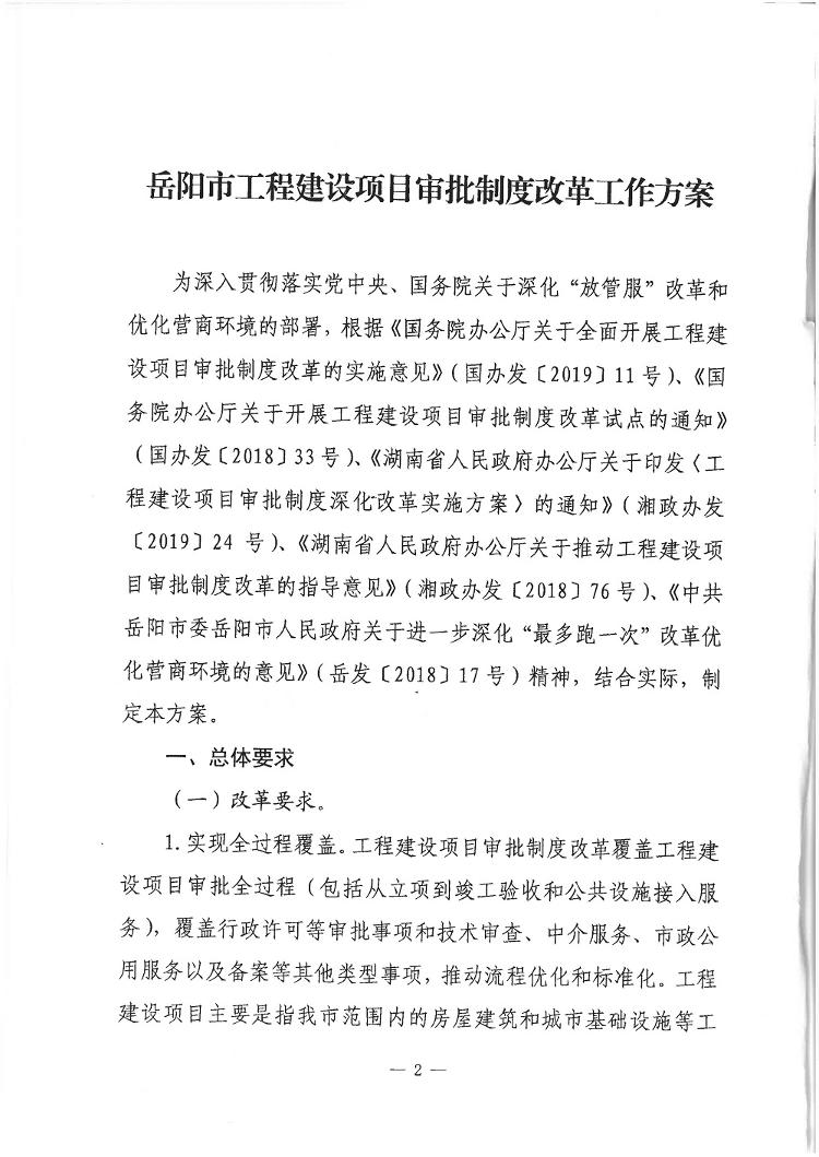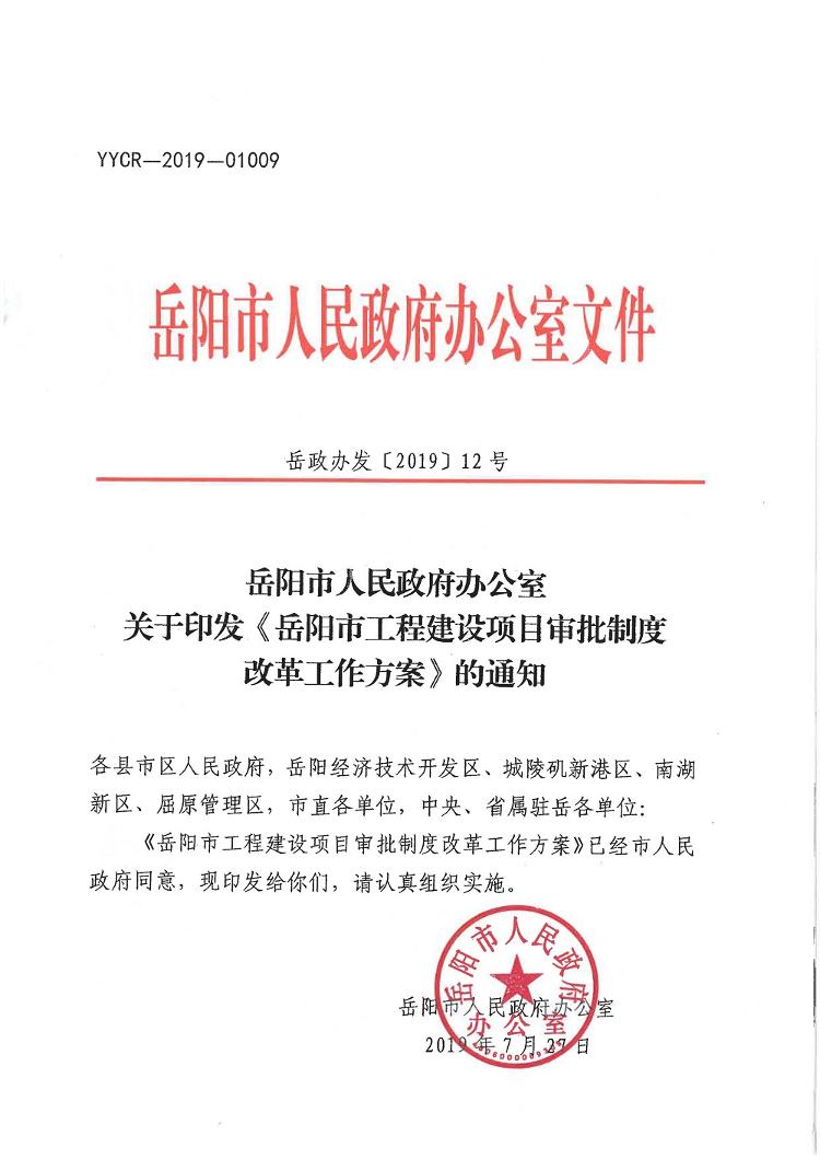 岳阳市人民政府办公室关于印发《岳阳市工程建设项目审批制度改革工作方案》的通知(岳政办发〔2019〕12号)(1)