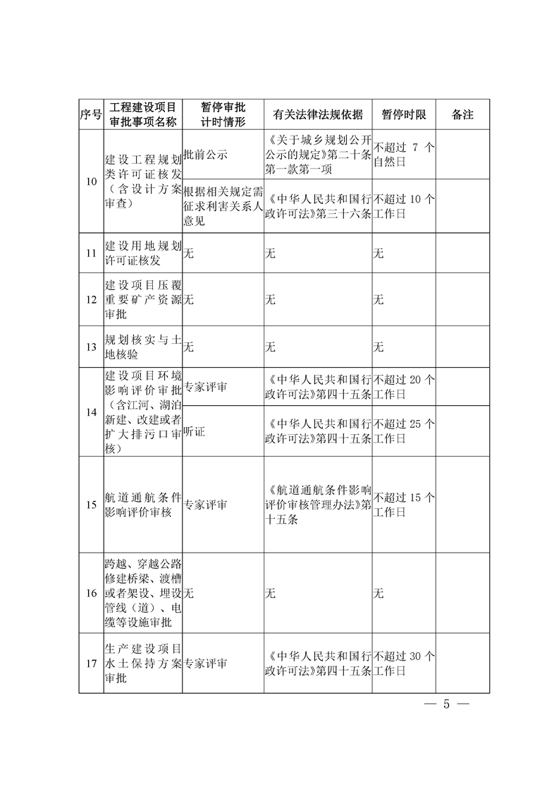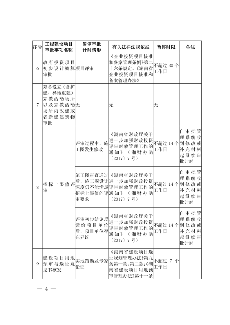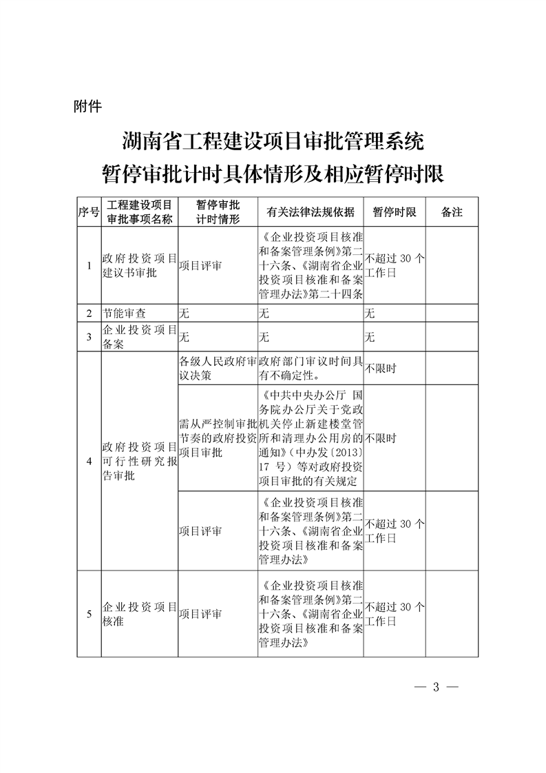 湖南省工程建设项目审批管理系统中暂停审批计时具体情形及相应暂停时限