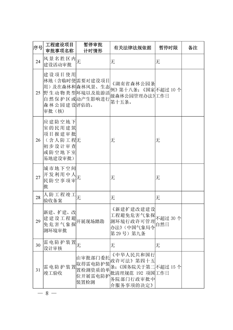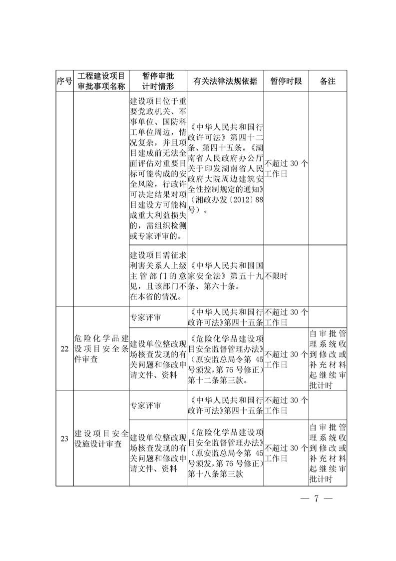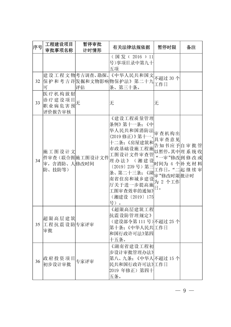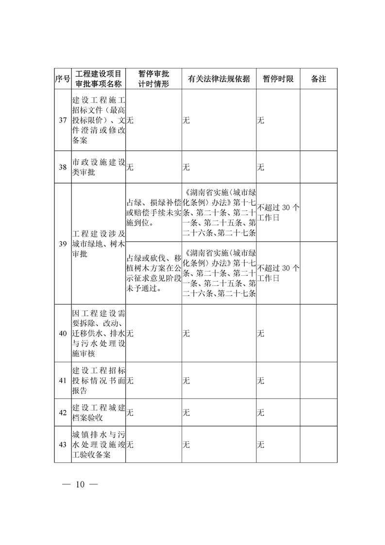 湖南省工程建设项目审批管理系统中暂停审批计时具体情形及相应暂停时限