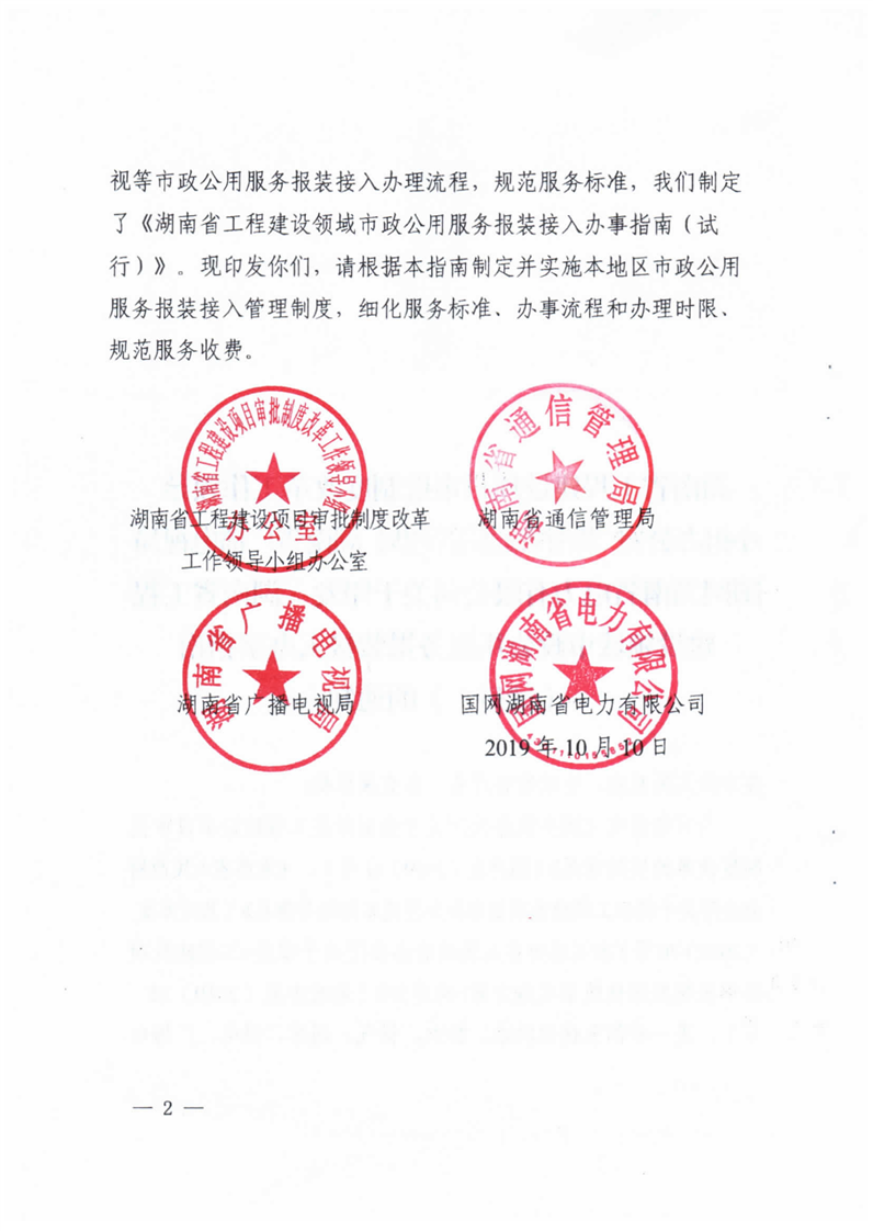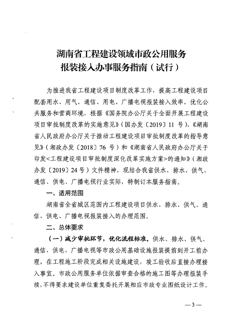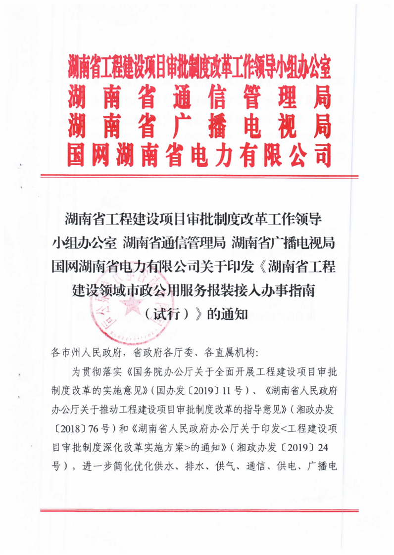 关于印发《湖南省工程建设领域市政公用服务报装接入办事指南(试行)》的通知