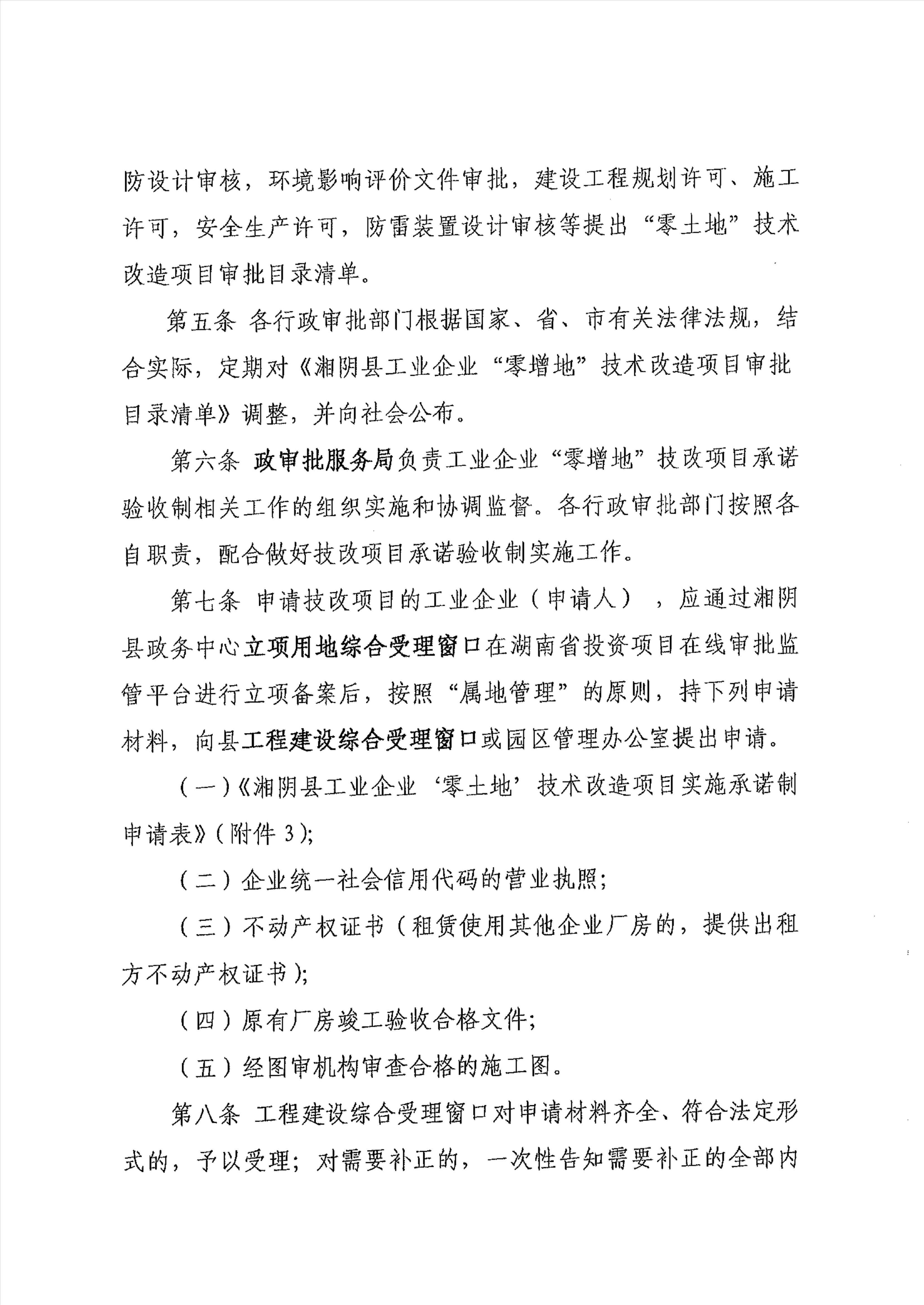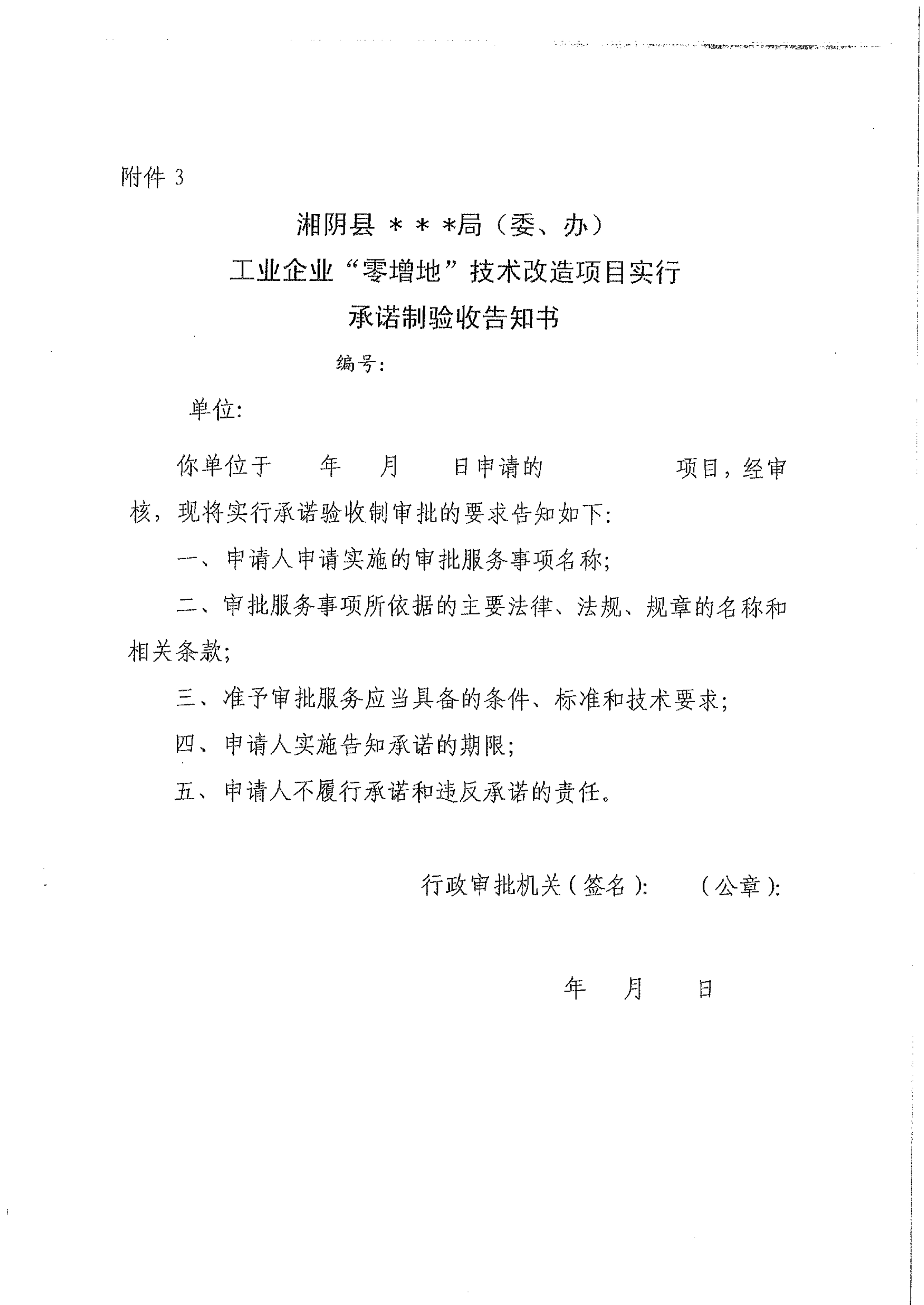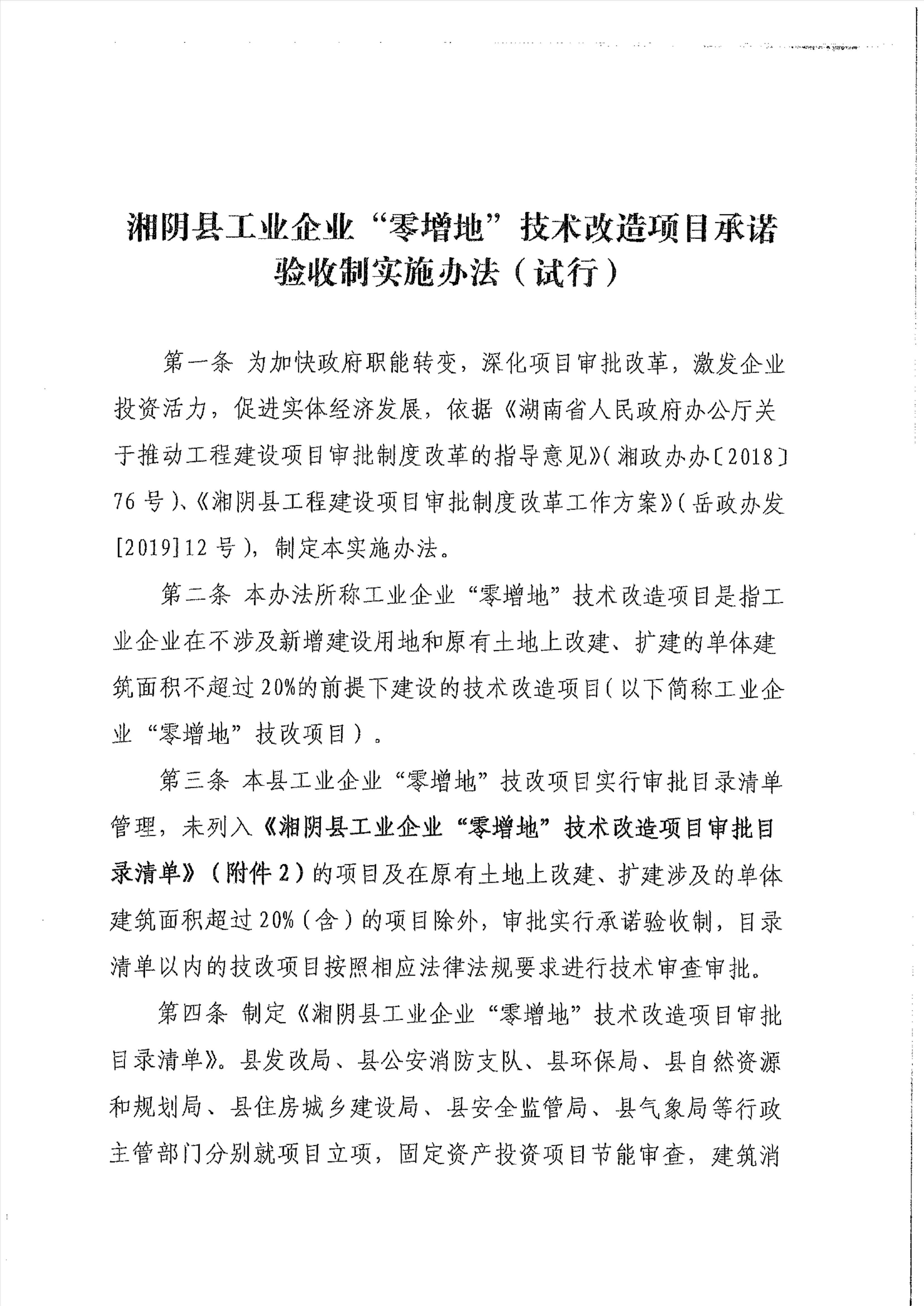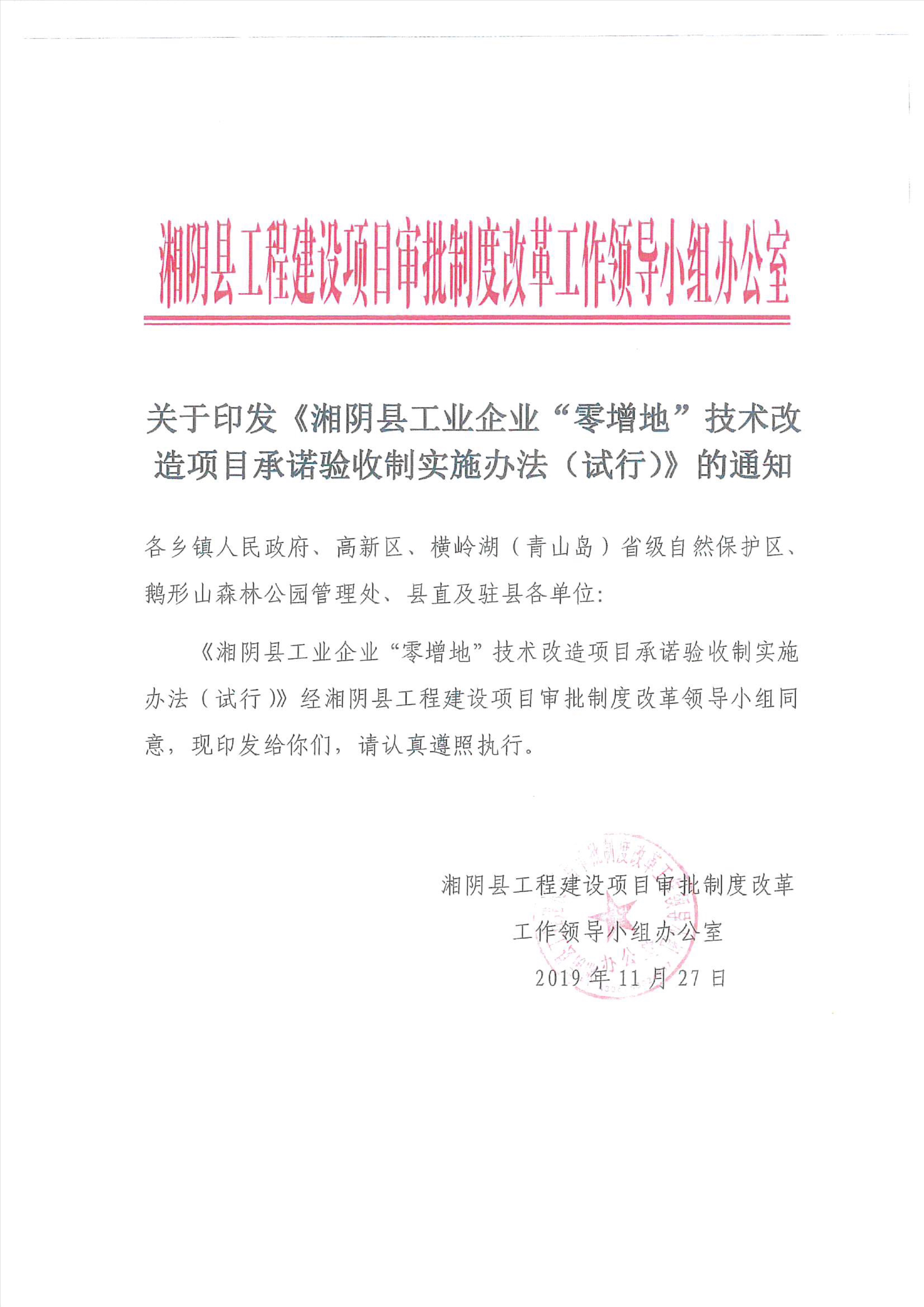 关于印发《湘阴县工业企业“零增地”技术改造项目承诺验收制实施办法(试行)》的通知