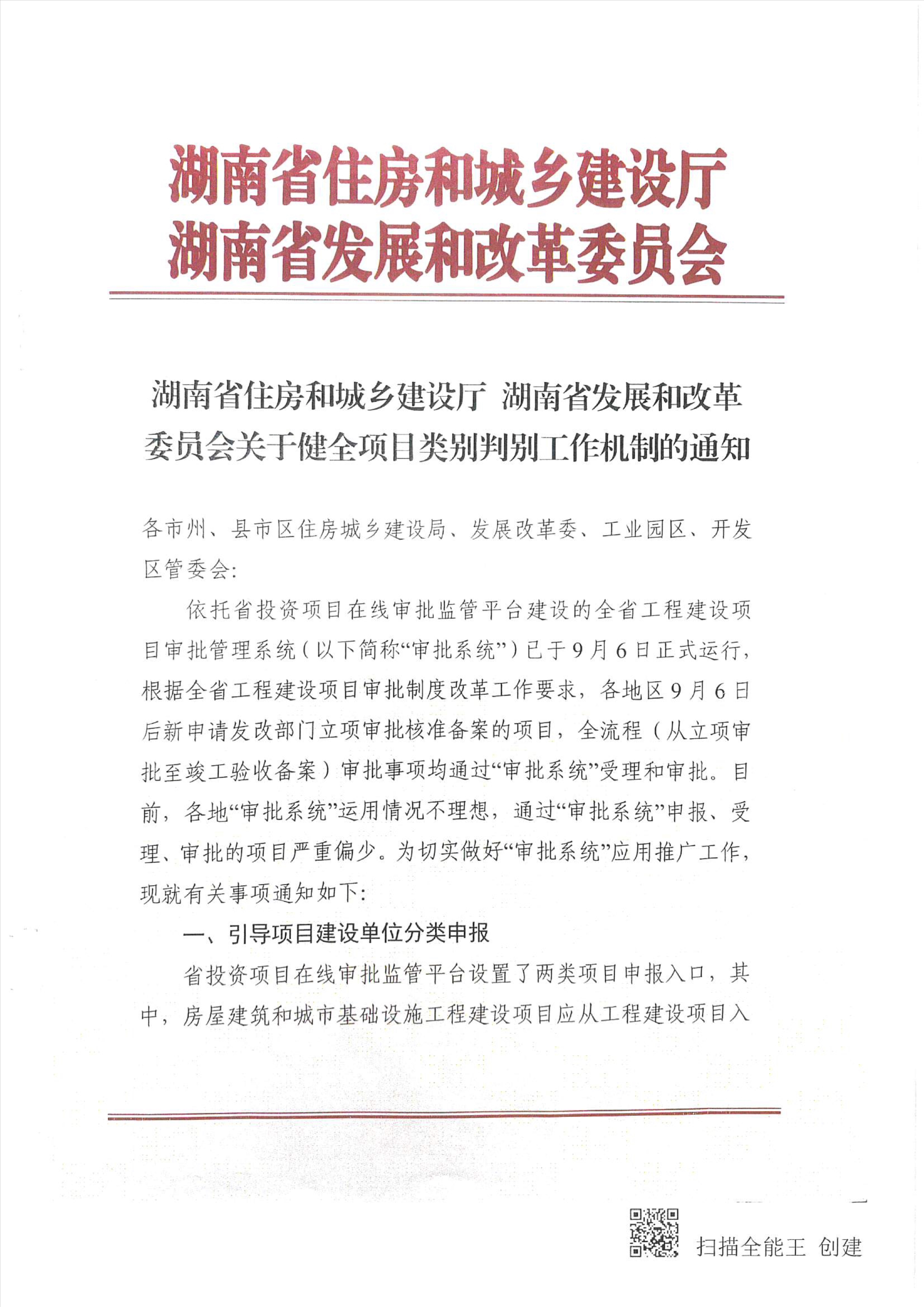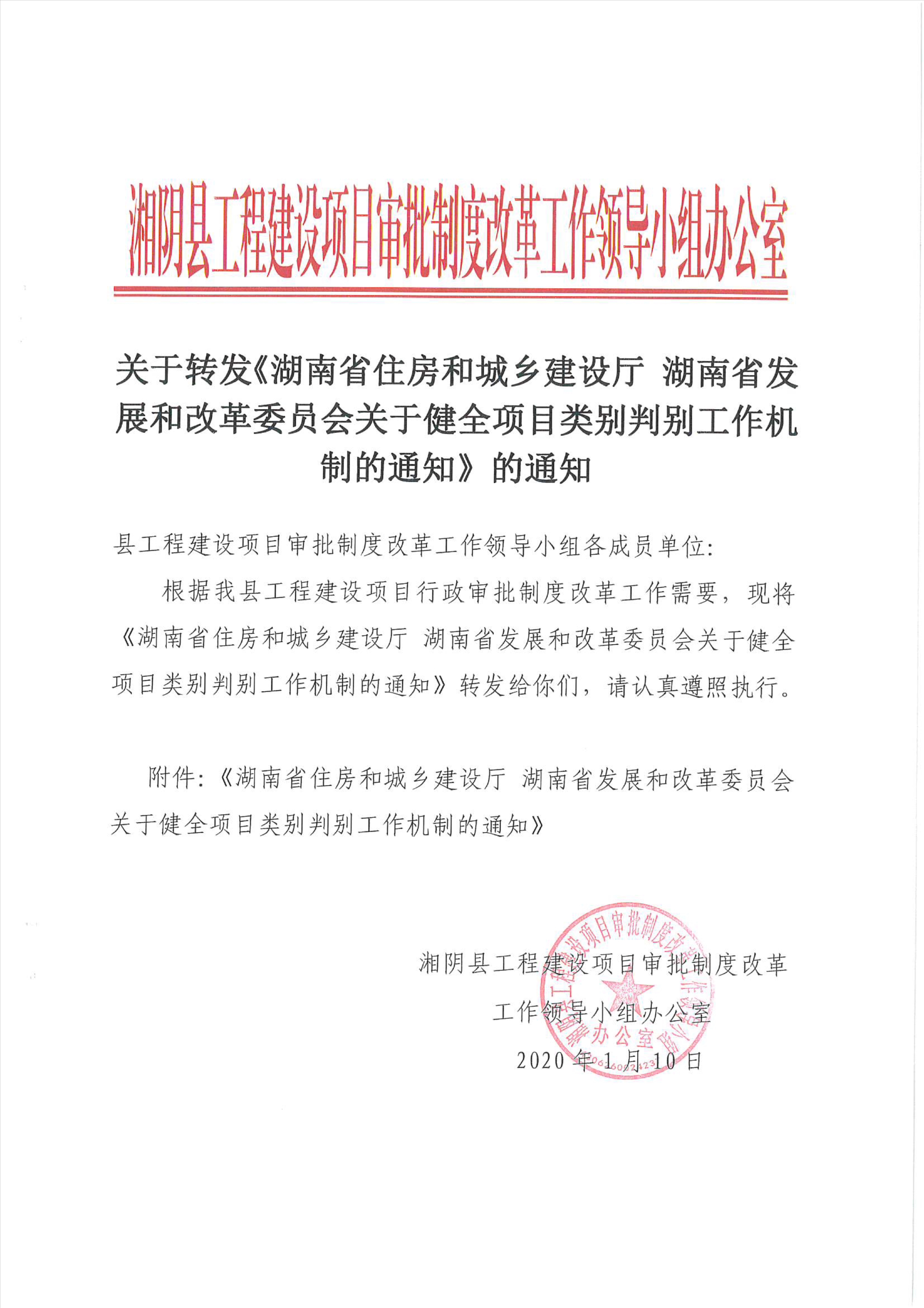 关于转发《湖南省住房和城乡建设厅 湖南省发展和改革委员会关于健全项目类别判别工作机制的通知》的通知