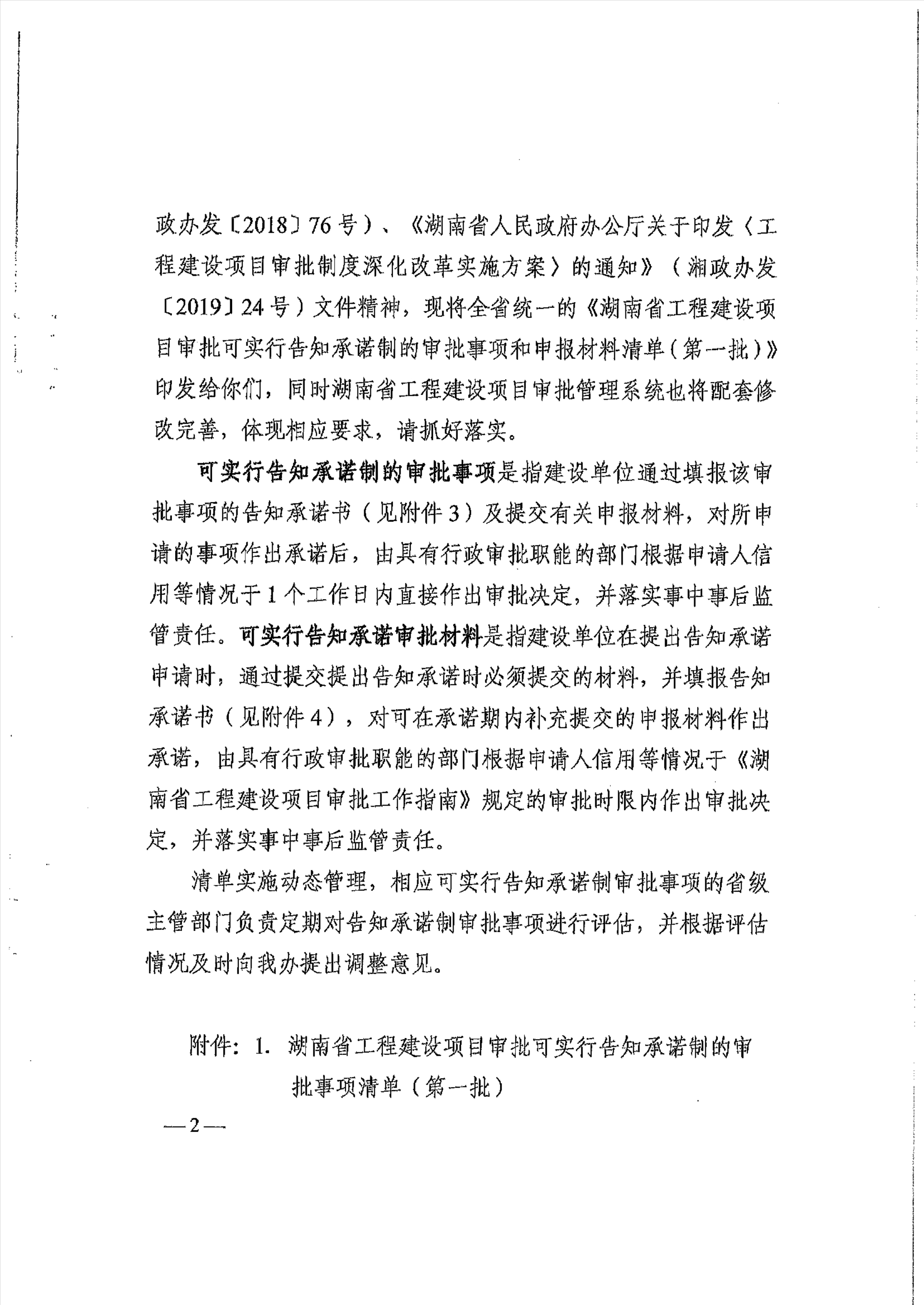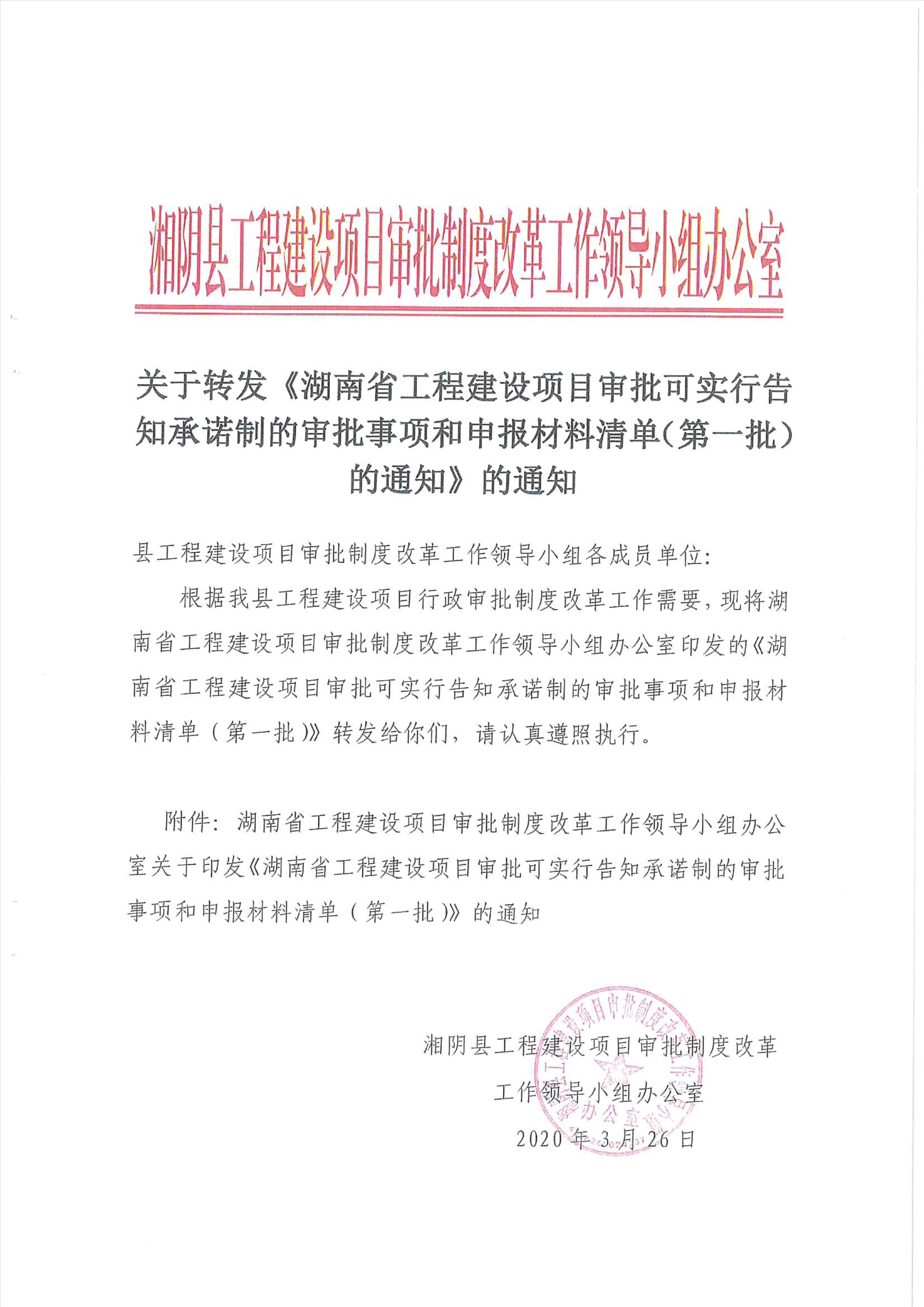 关于转发《湖南省工程建设项目审批可实行告知承诺制的审批事项和申报材料清单(第一批)的通知》的通知