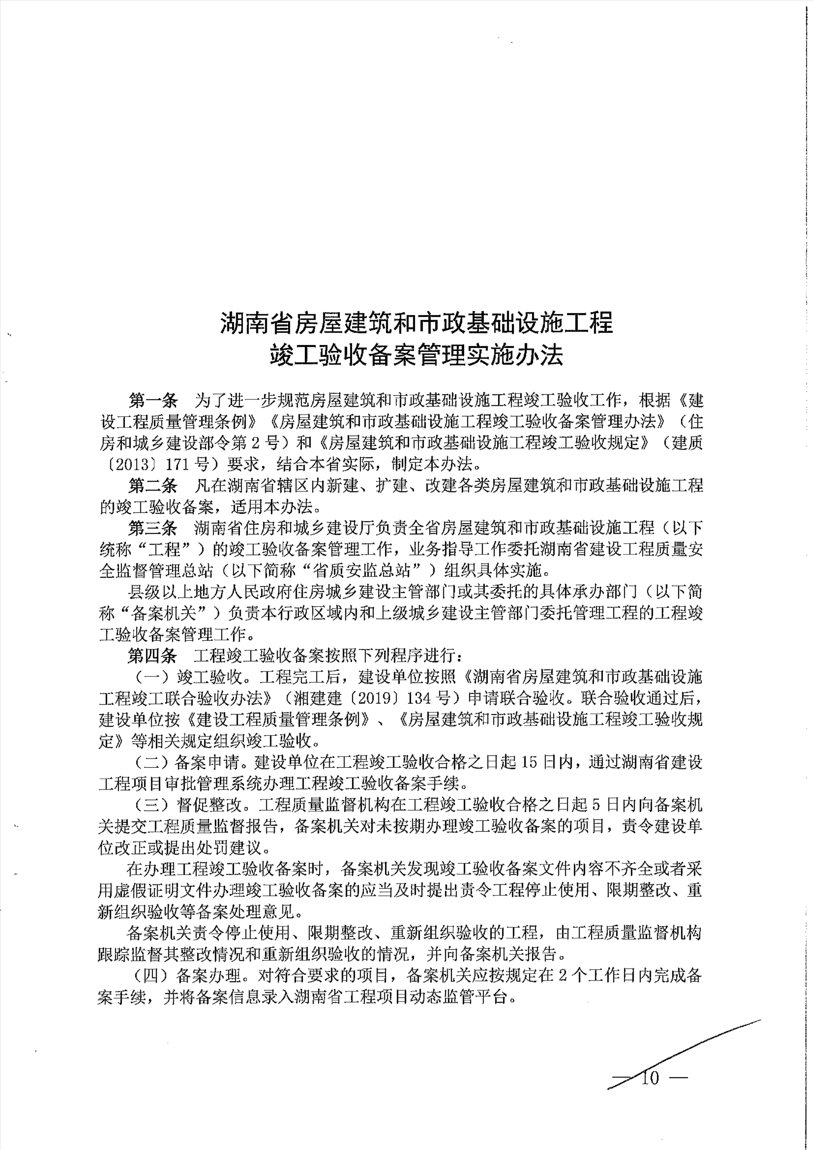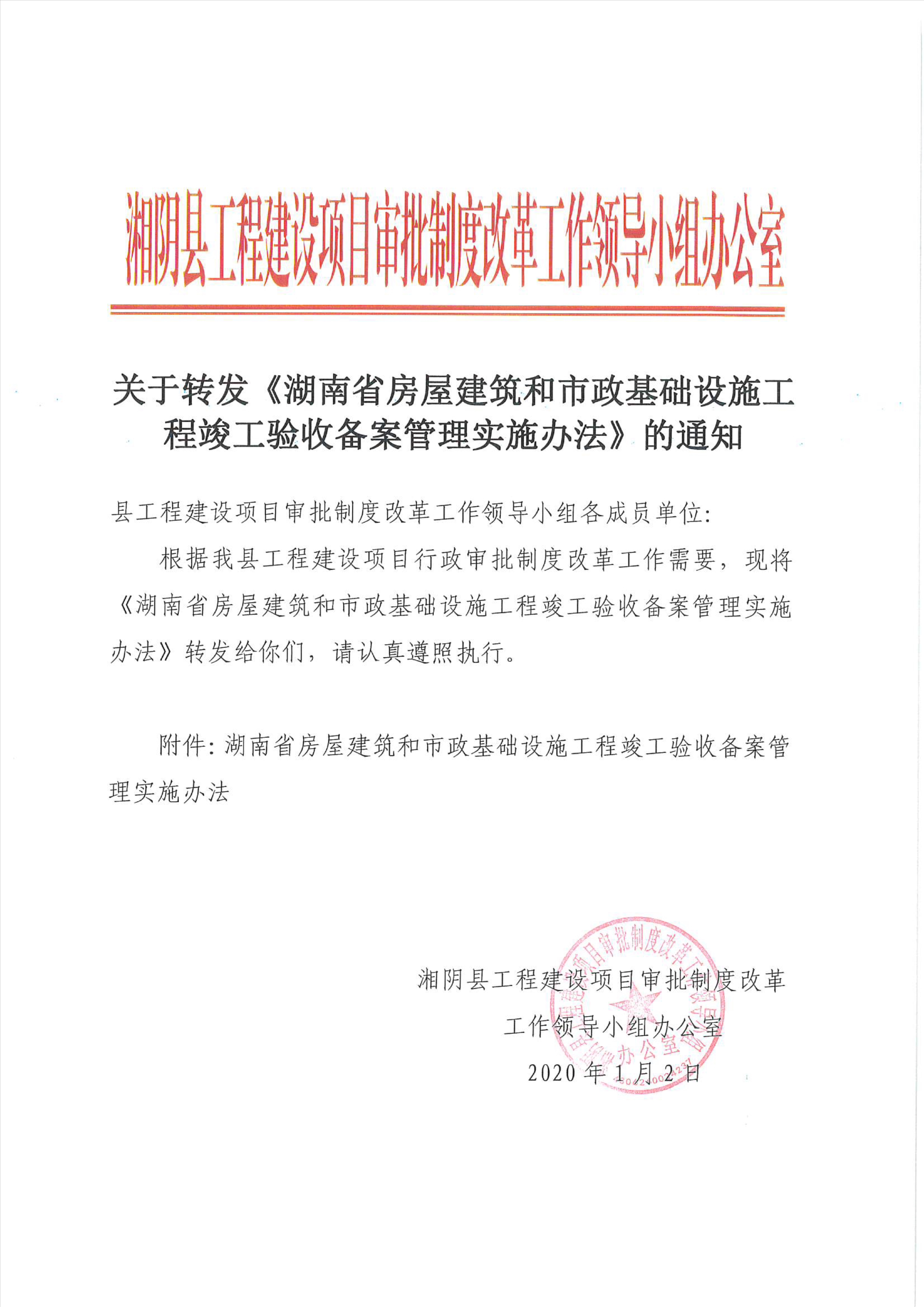 关于转发《湖南省房屋建筑和市政基础设施工程竣工验收备案管理实施办法的通知》的通知