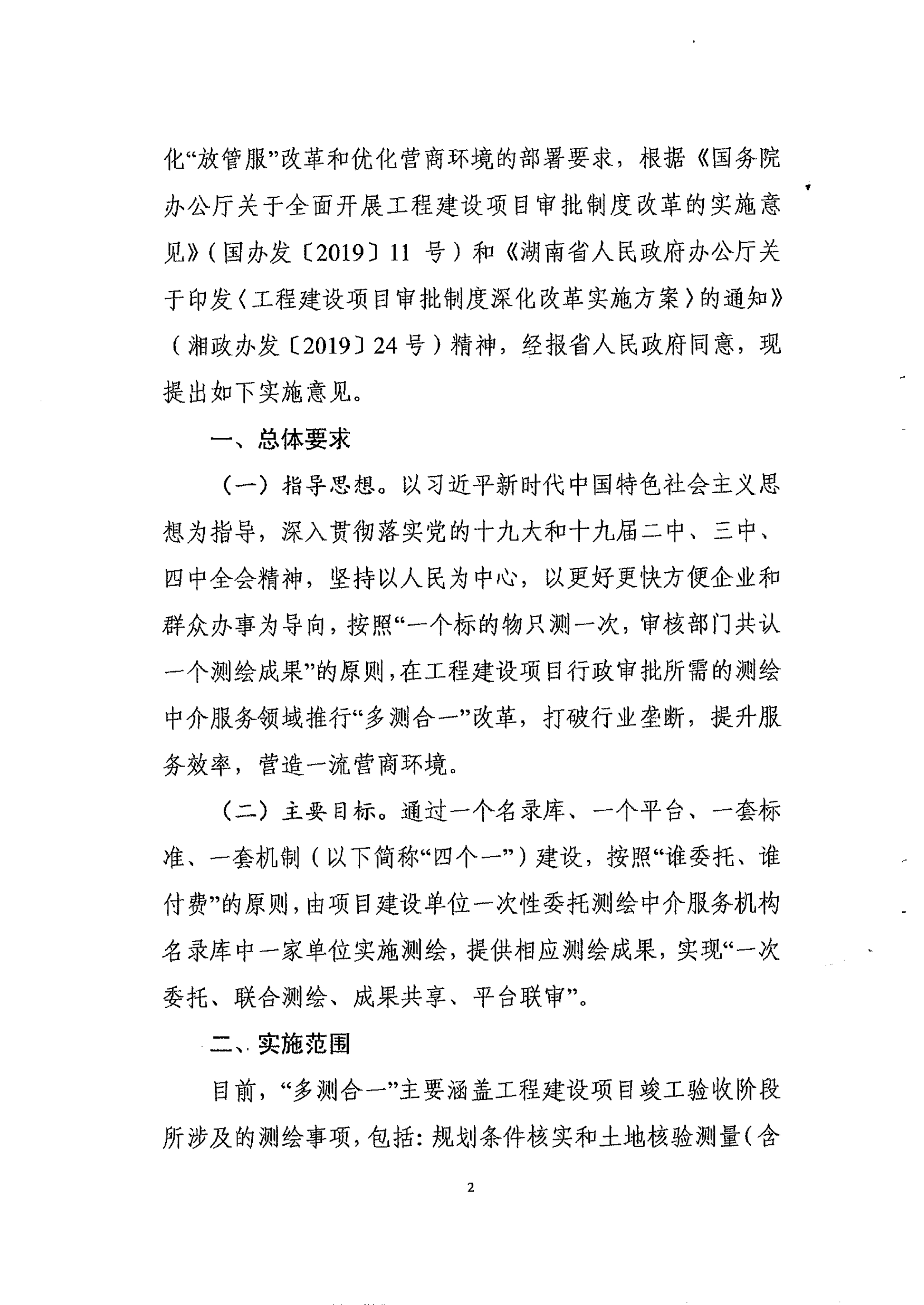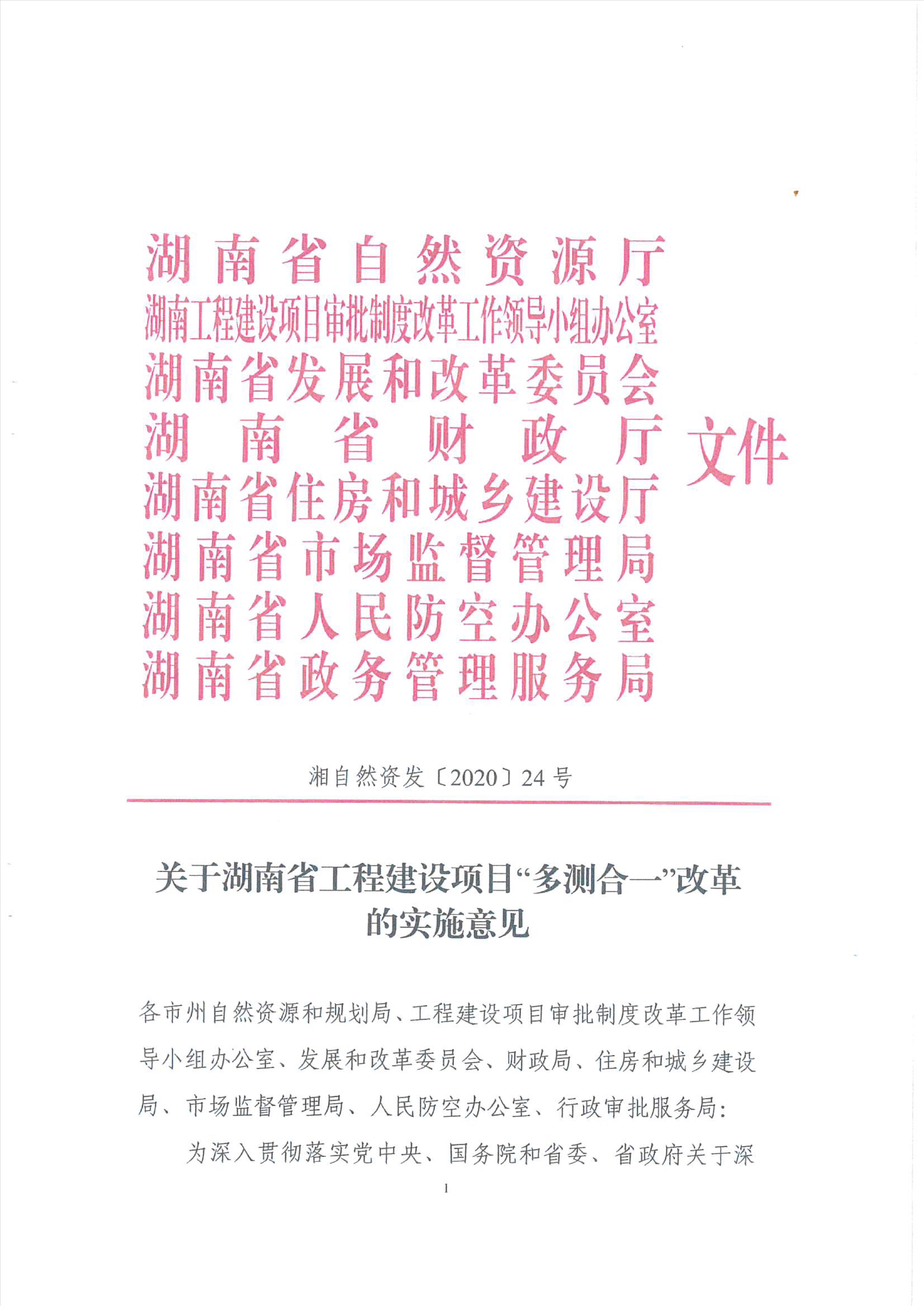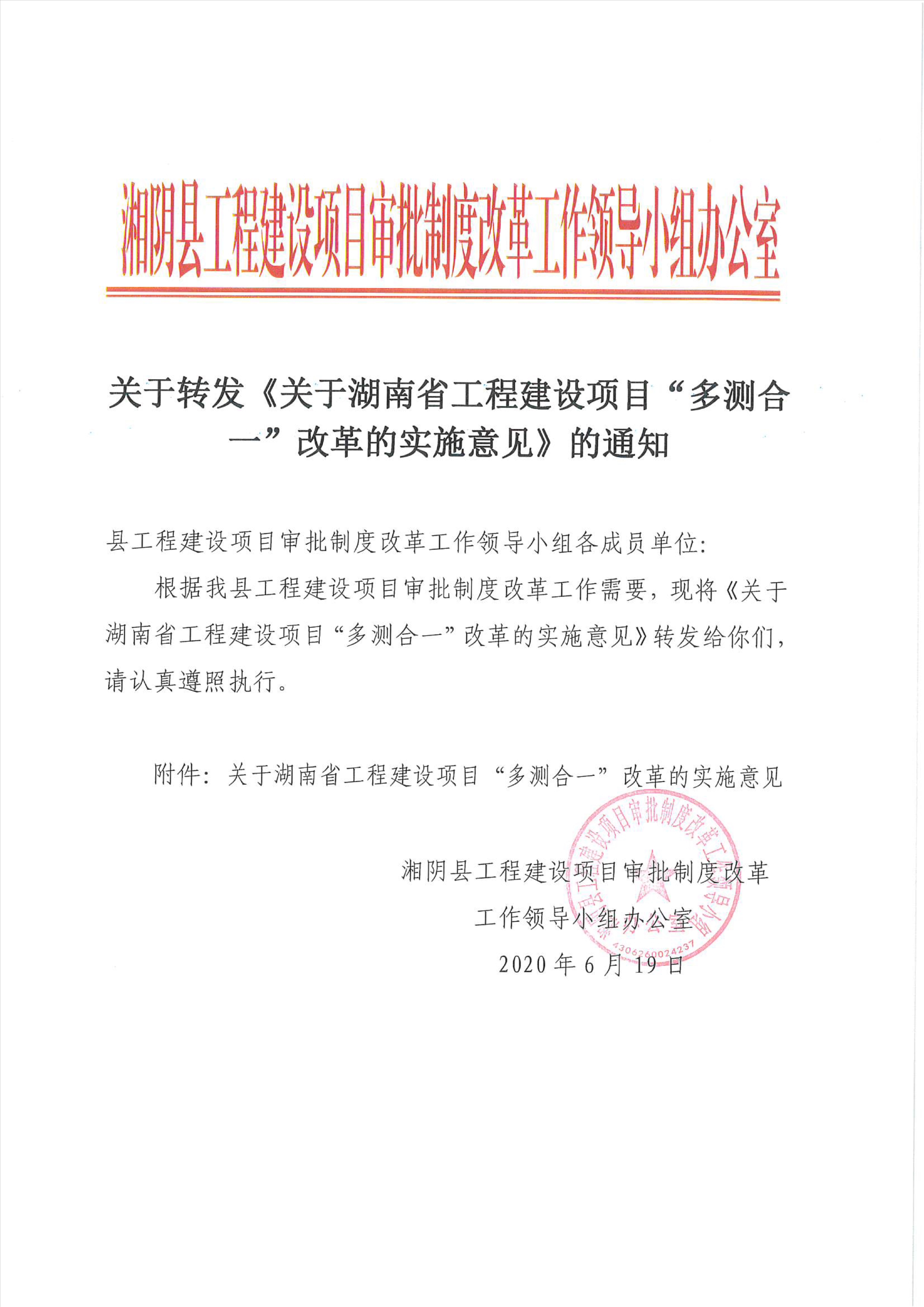 关于转发《关于湖南省工程建设项目“多测合一”改革的实施意见》的通知