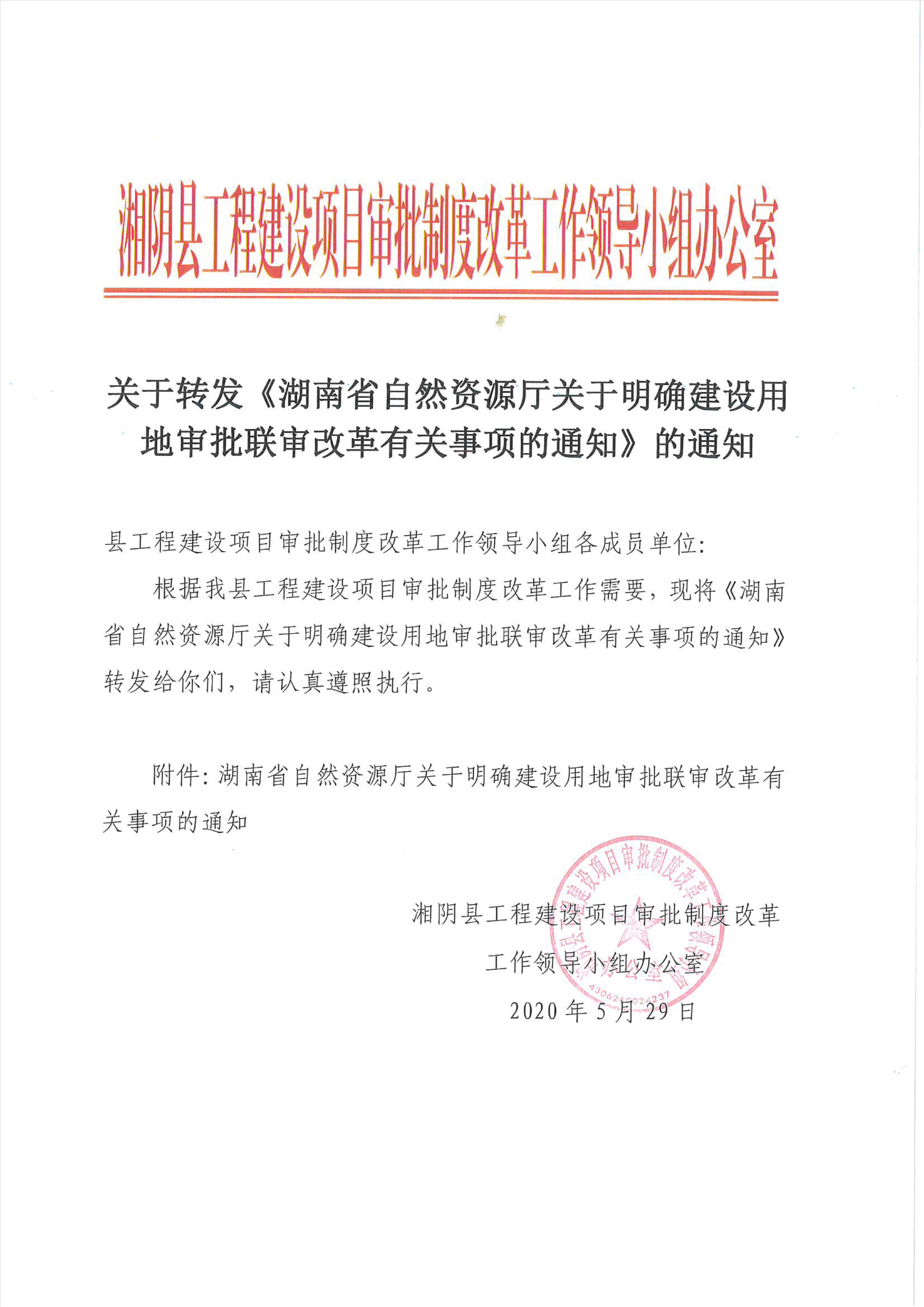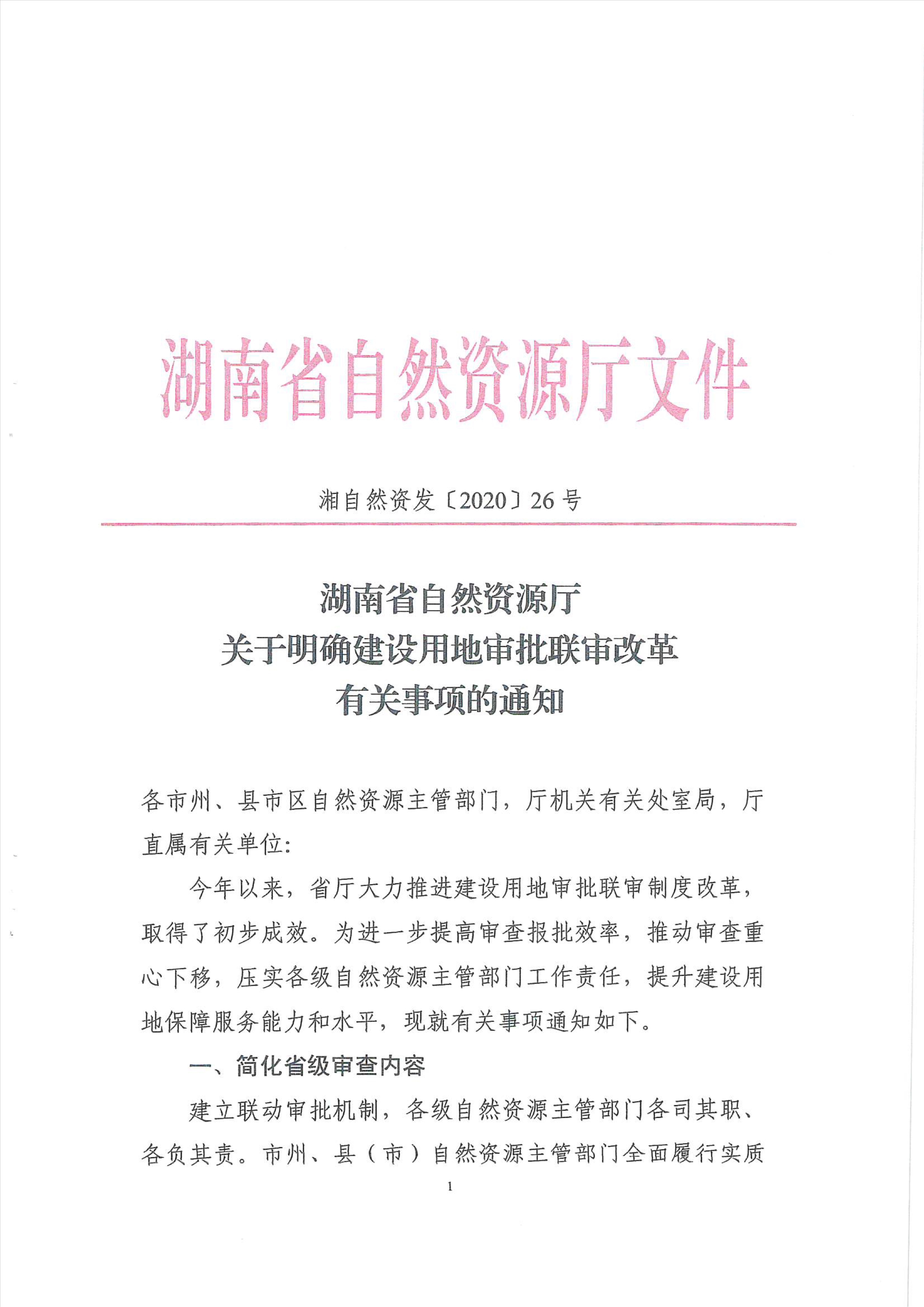 关于转发《湖南省自然资源厅关于明确建设用地审批联审改革有关事项的通知》的通知