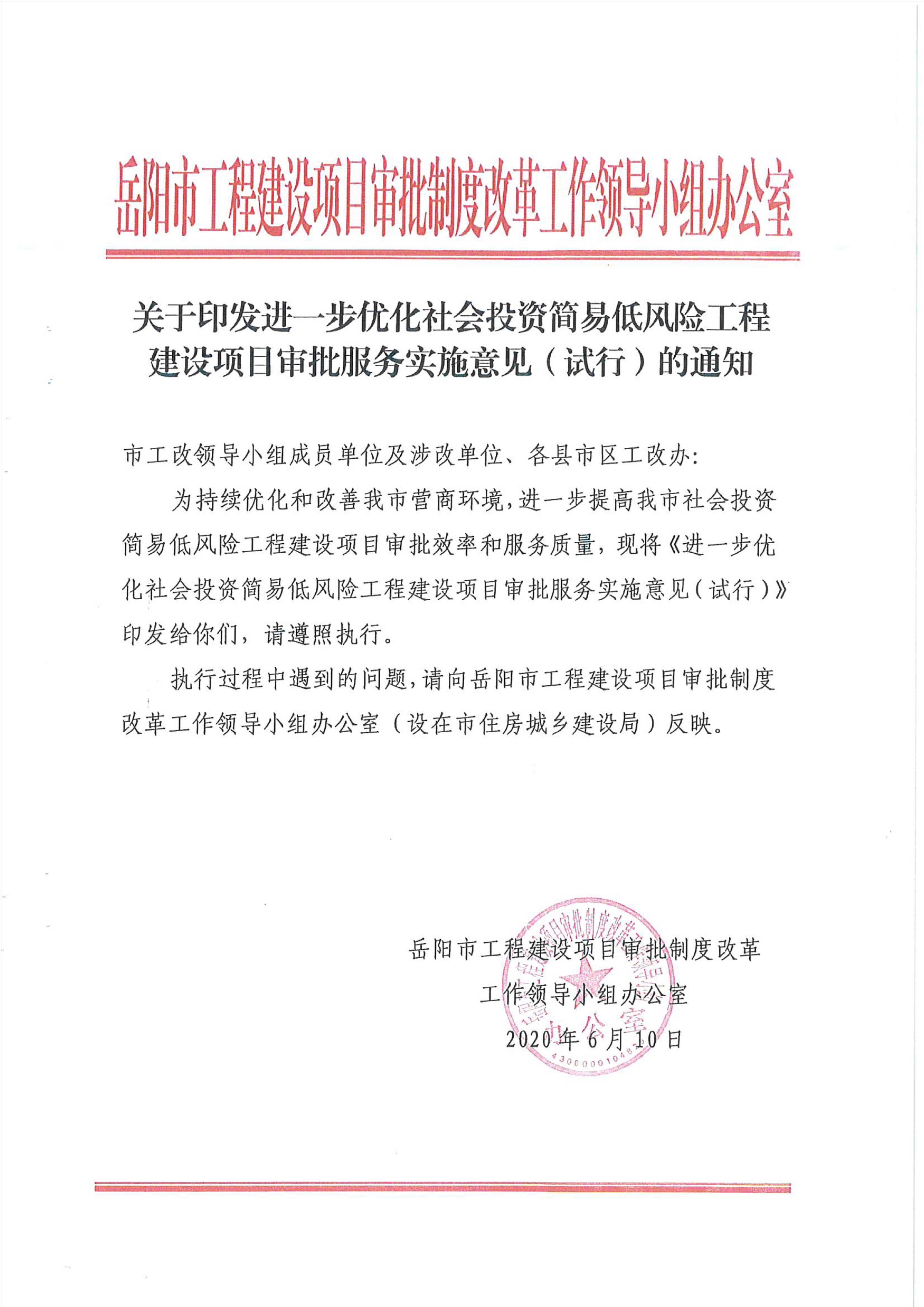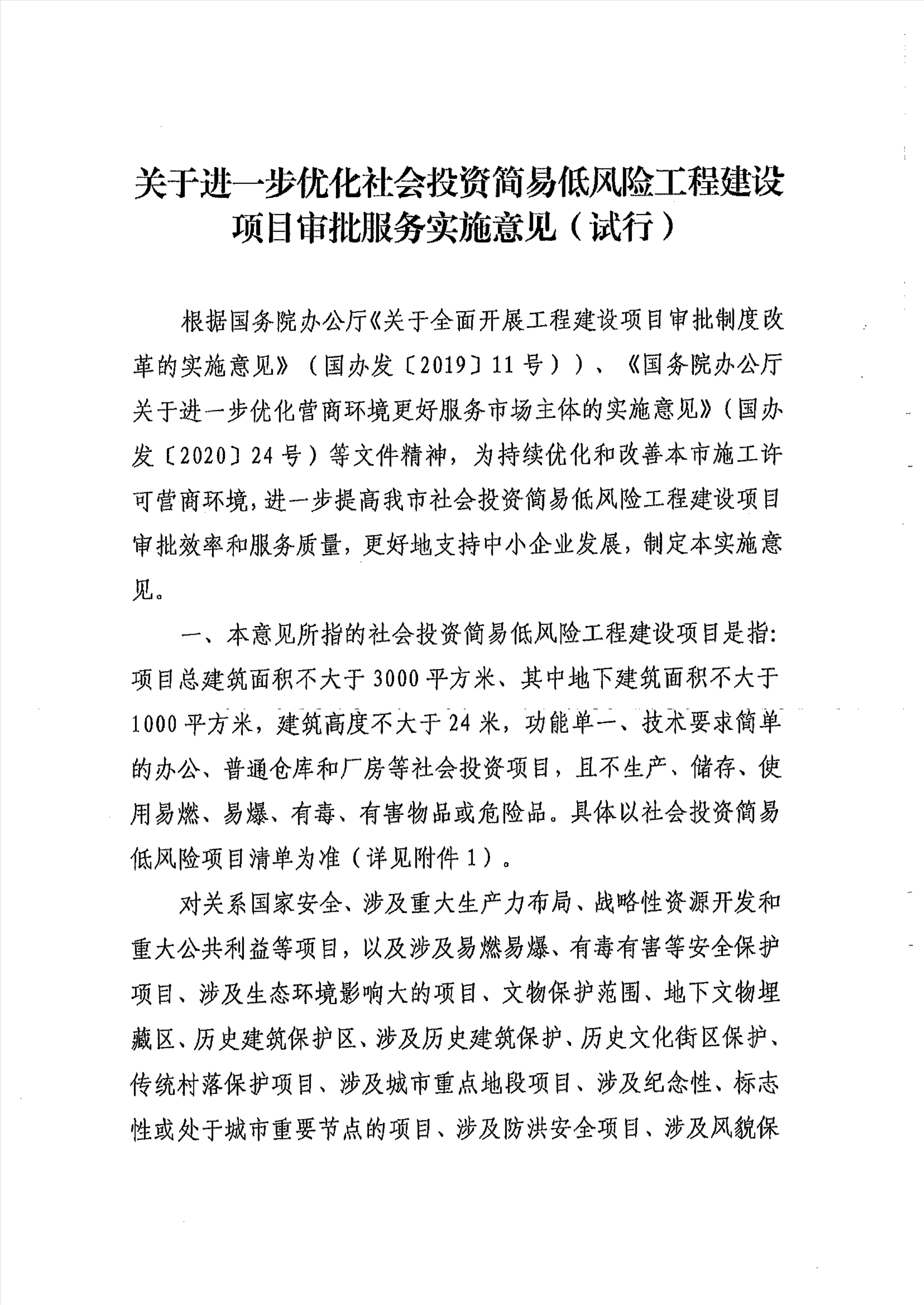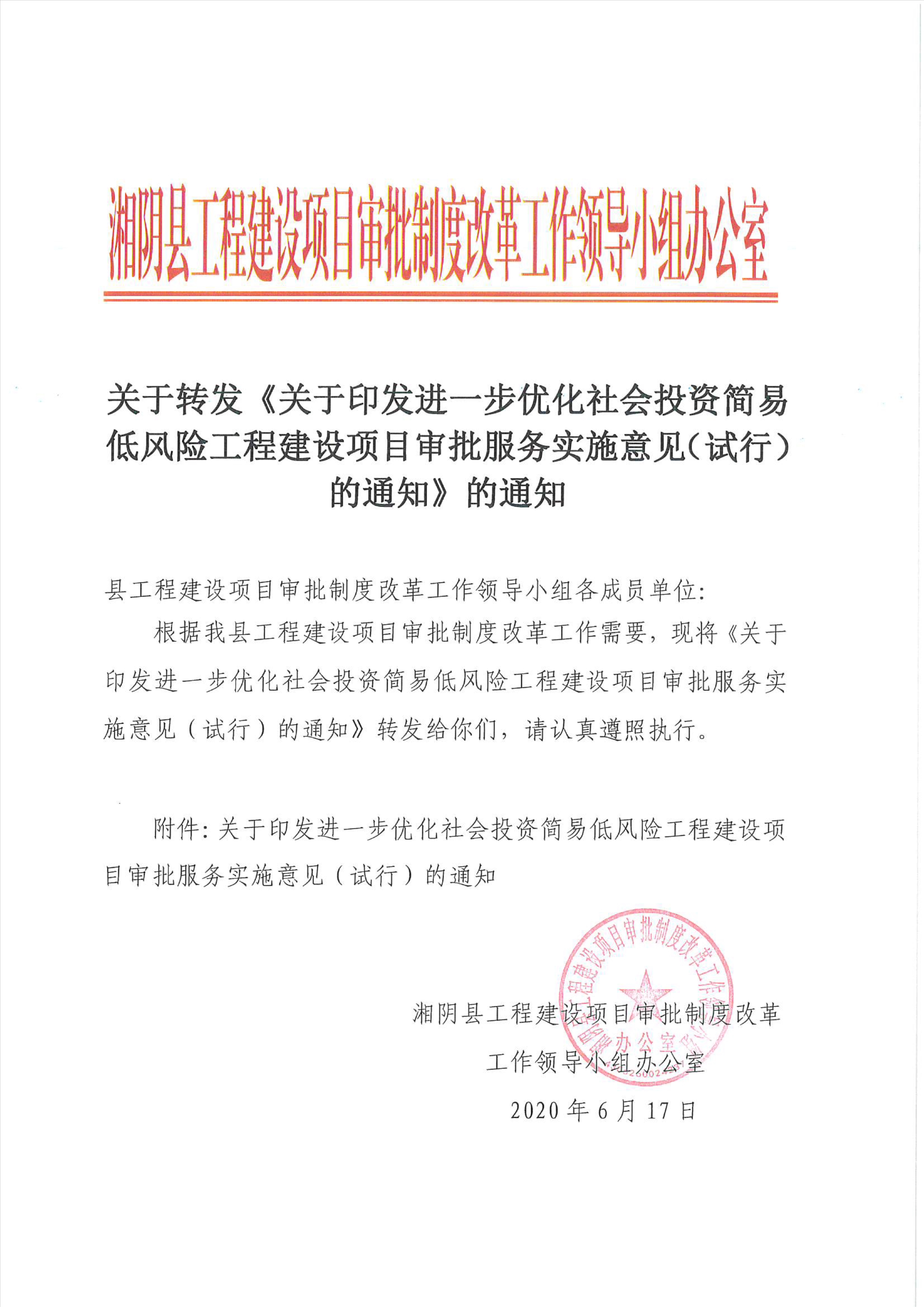 关于转发《关于印发进一步优化社会投资简易低风险工程建设项目审批服务实施意见(试行)的通知》的通知