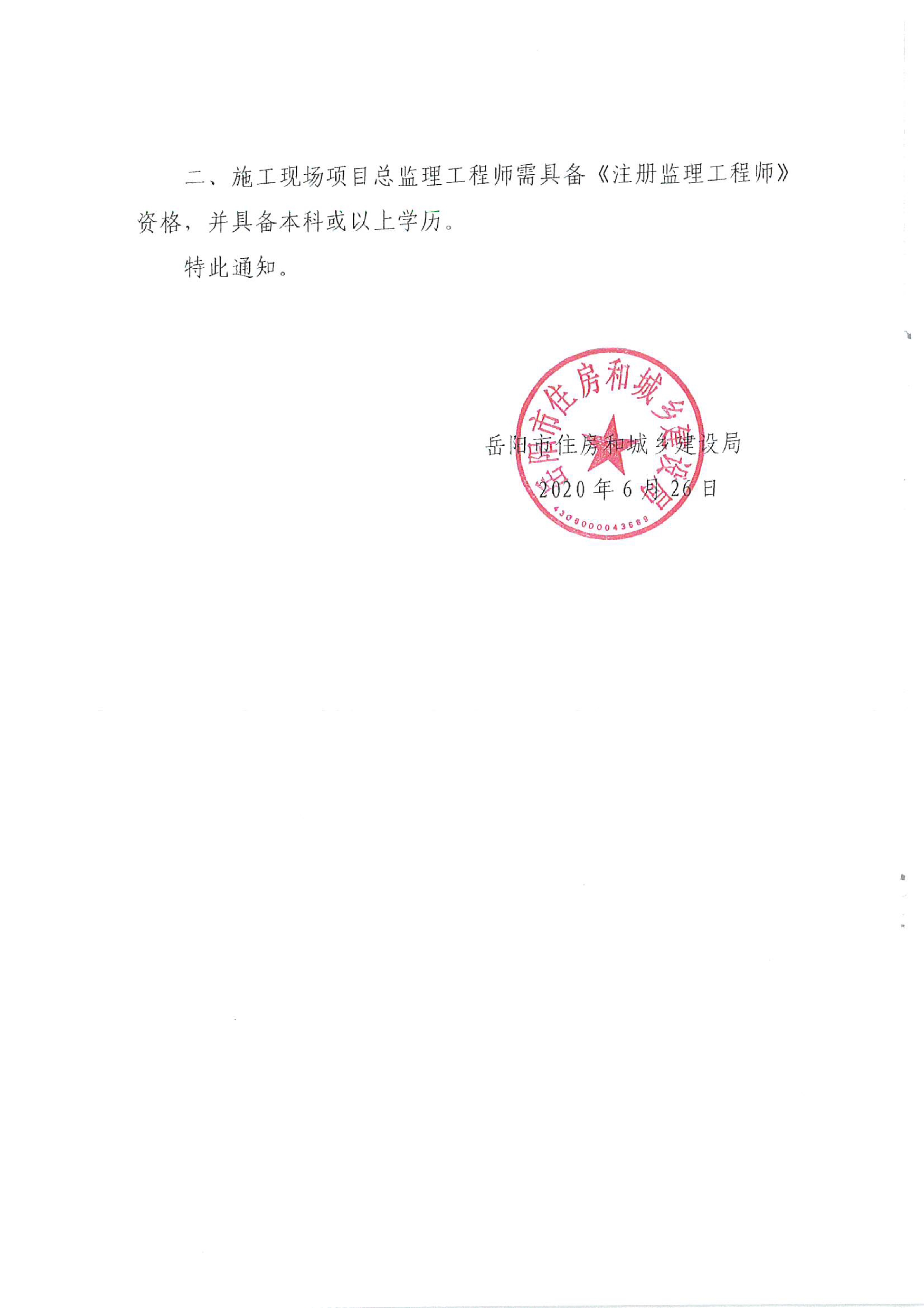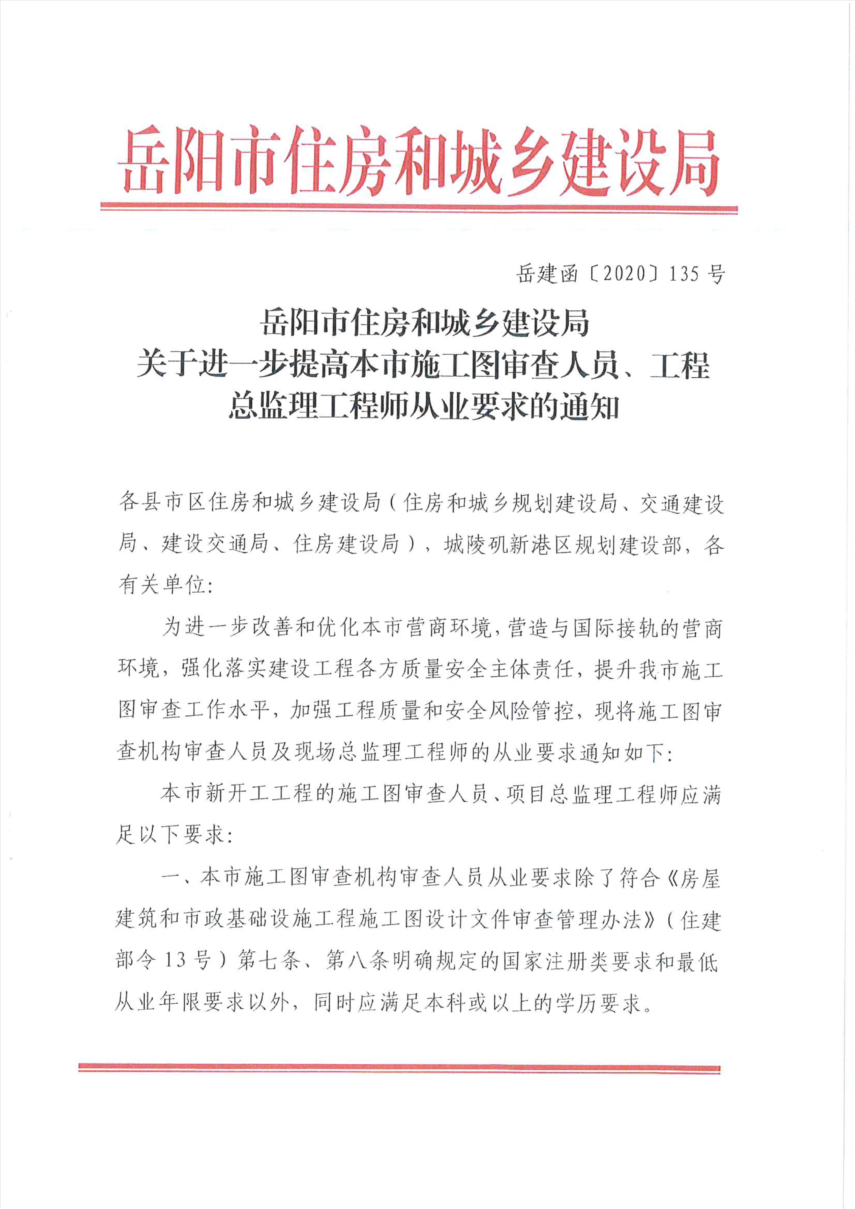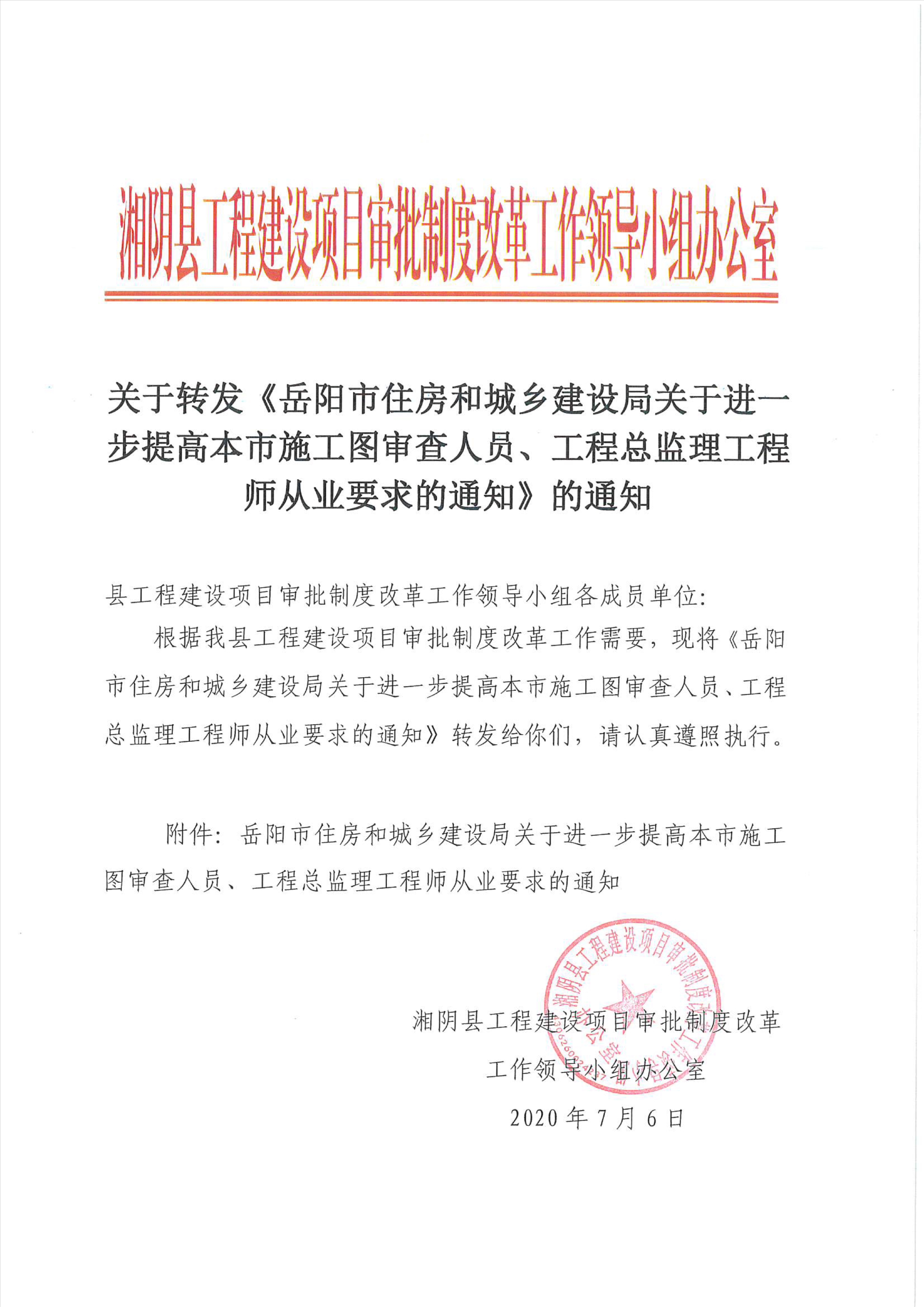 关于转发《岳阳市住房和城乡建设局关于进一步提高本市施工图审查人员、工程总监理工程师从业要求的通知》的通知