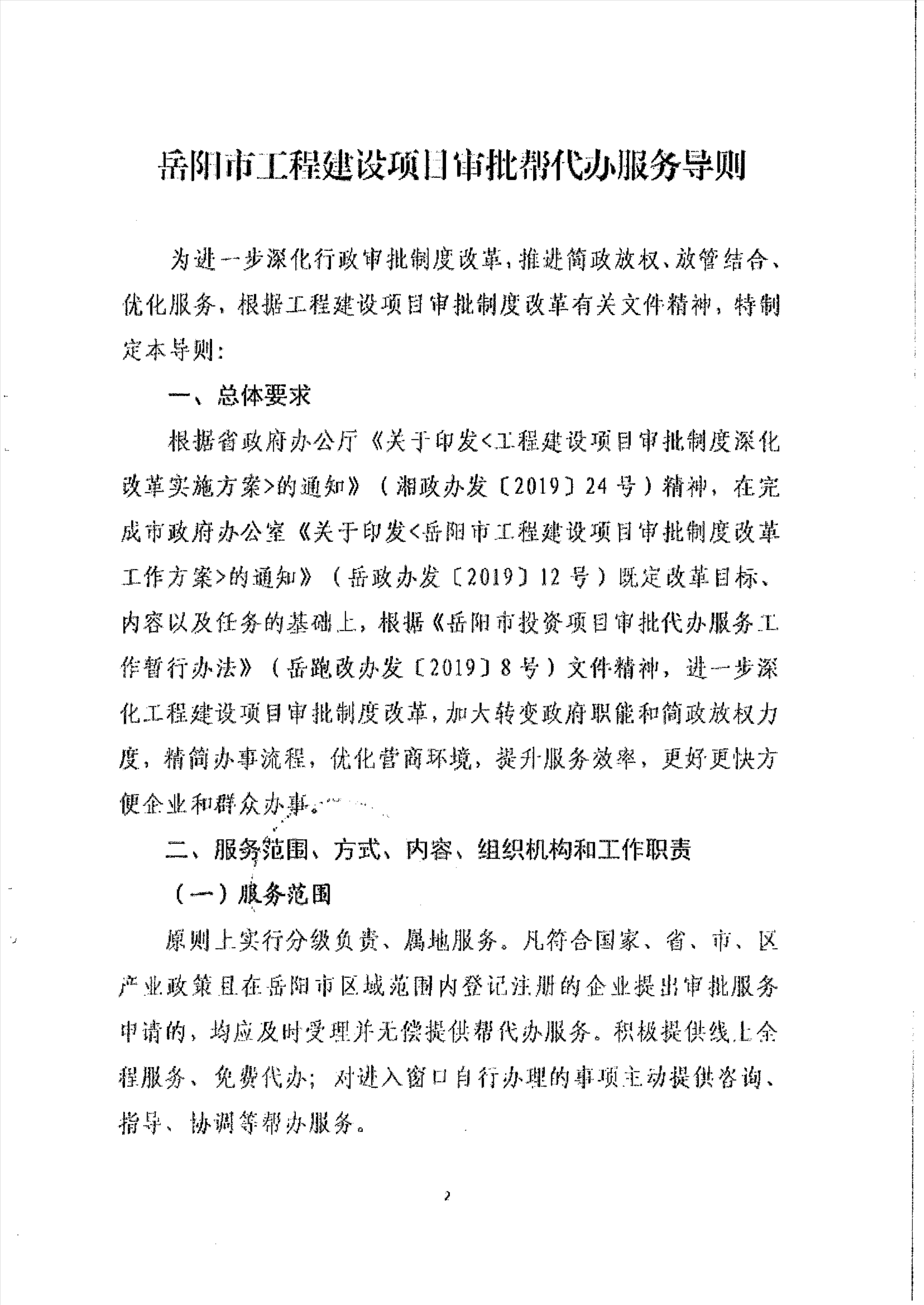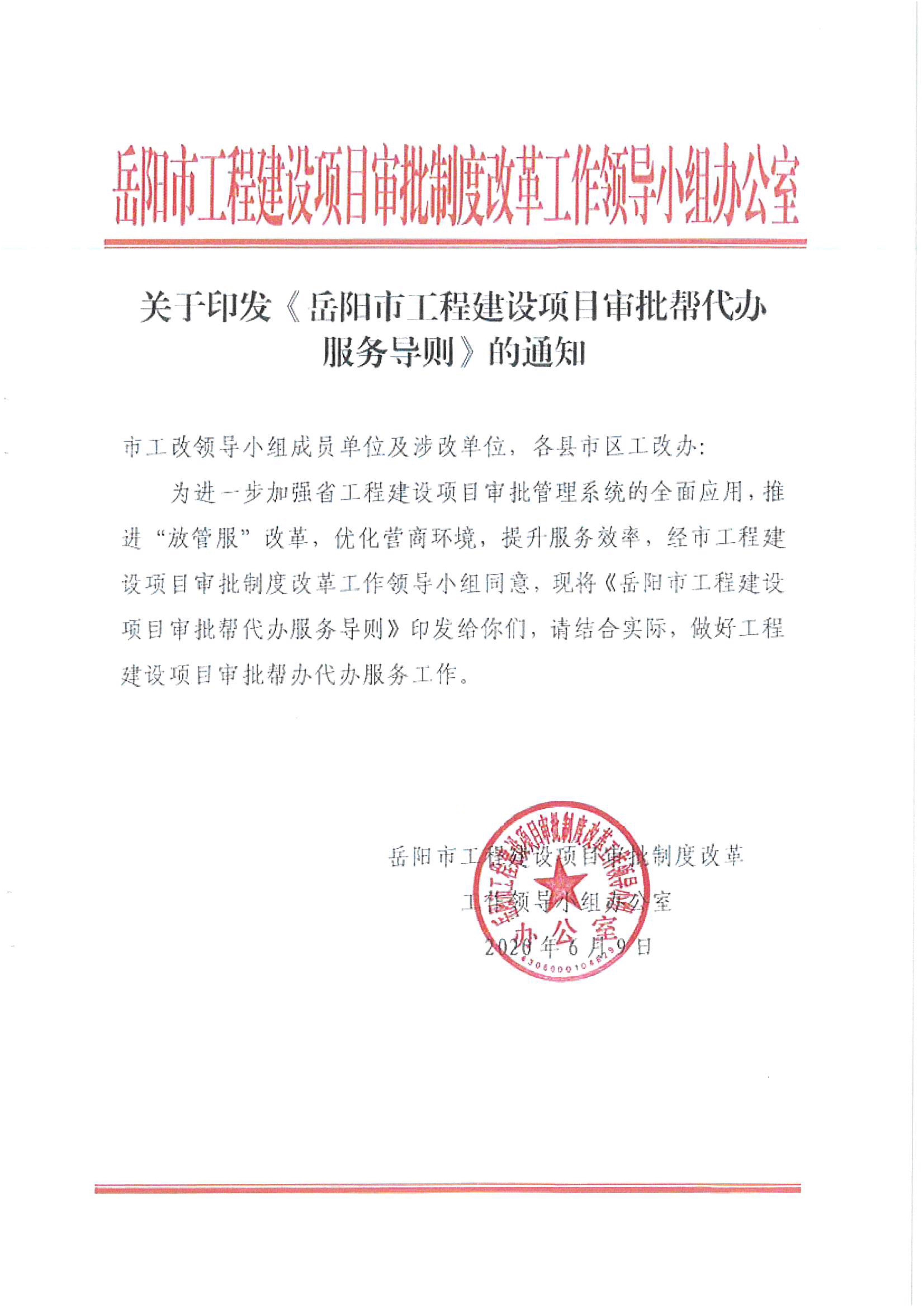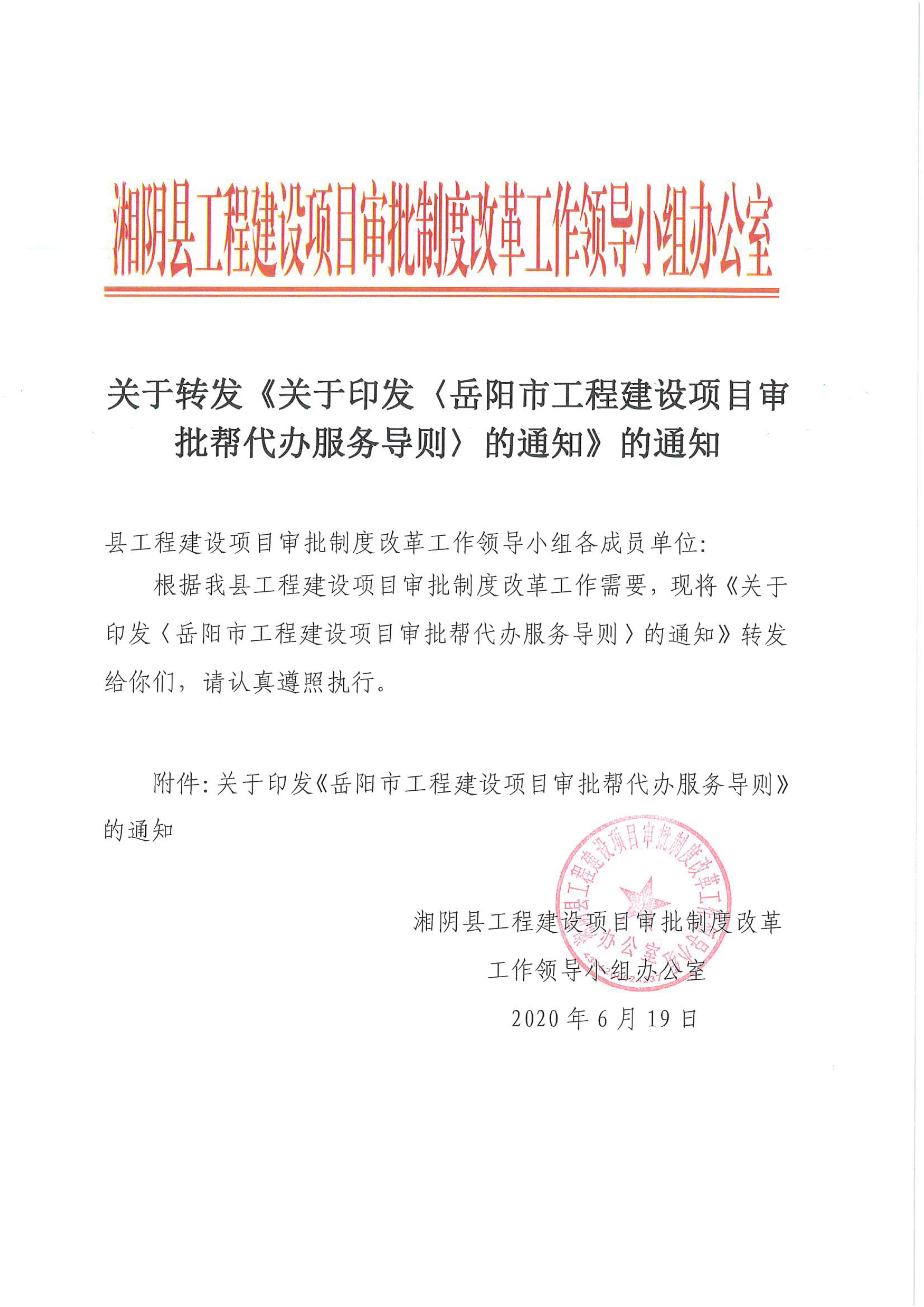 关于转发《关于印发〈岳阳市工程建设项目审批帮代办服务导则〉的通知》的通知