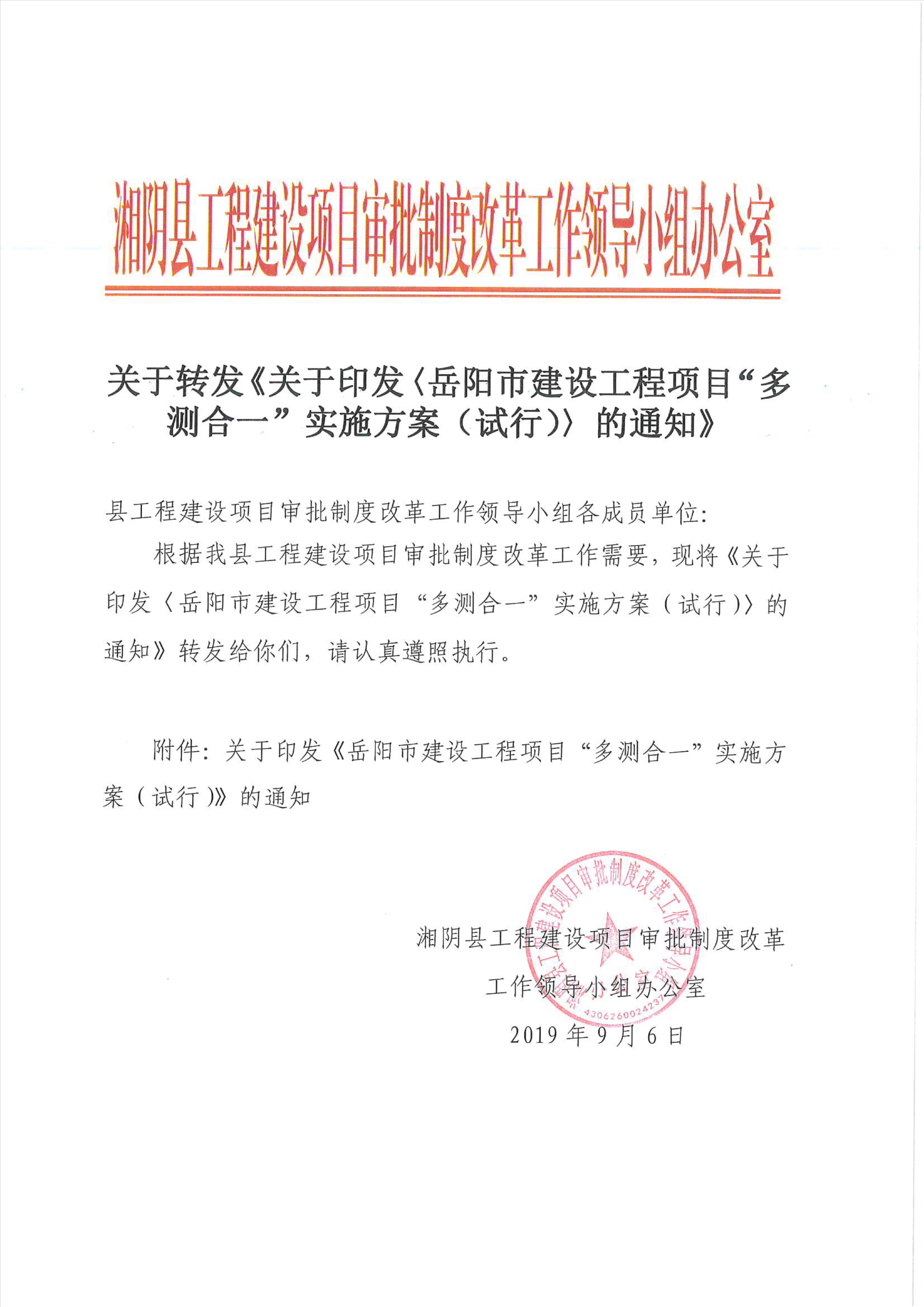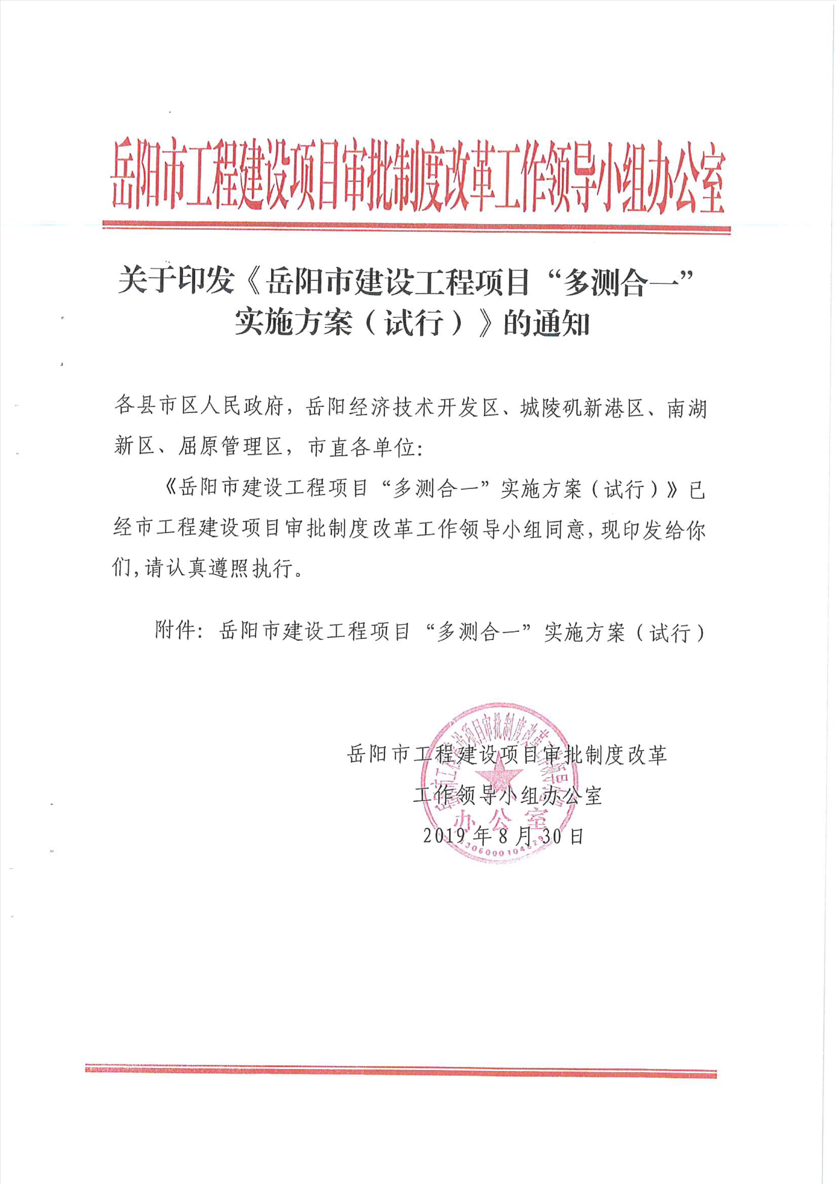关于转发《关于印发〈岳阳市建设工程项目“多测合一”实施方案(试行)〉的通知》