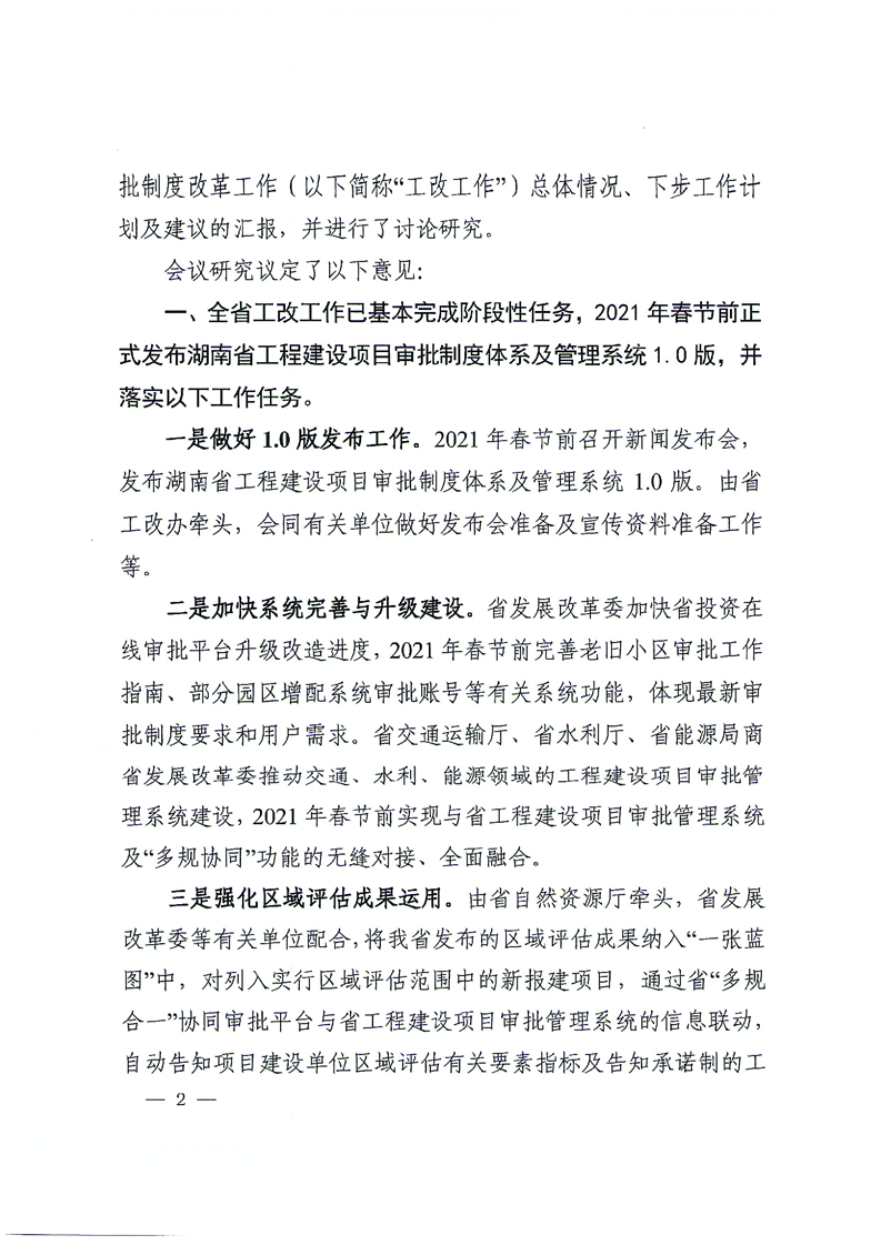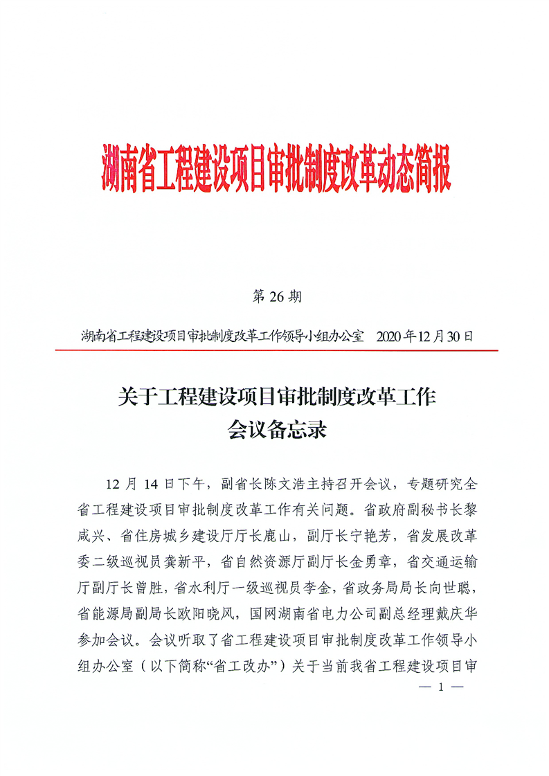 湖南省工程建设项目审批制度改革动态简报 关于工程建设项目审批制度改革工作会议备忘录