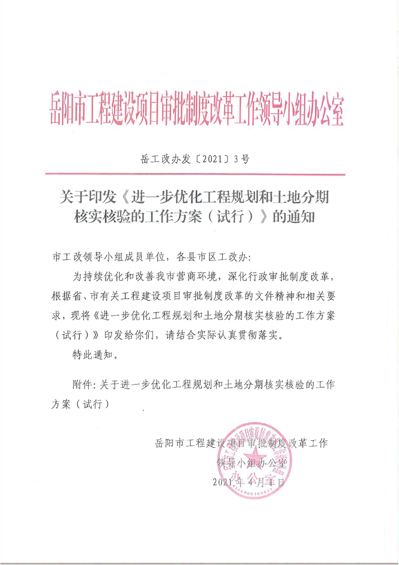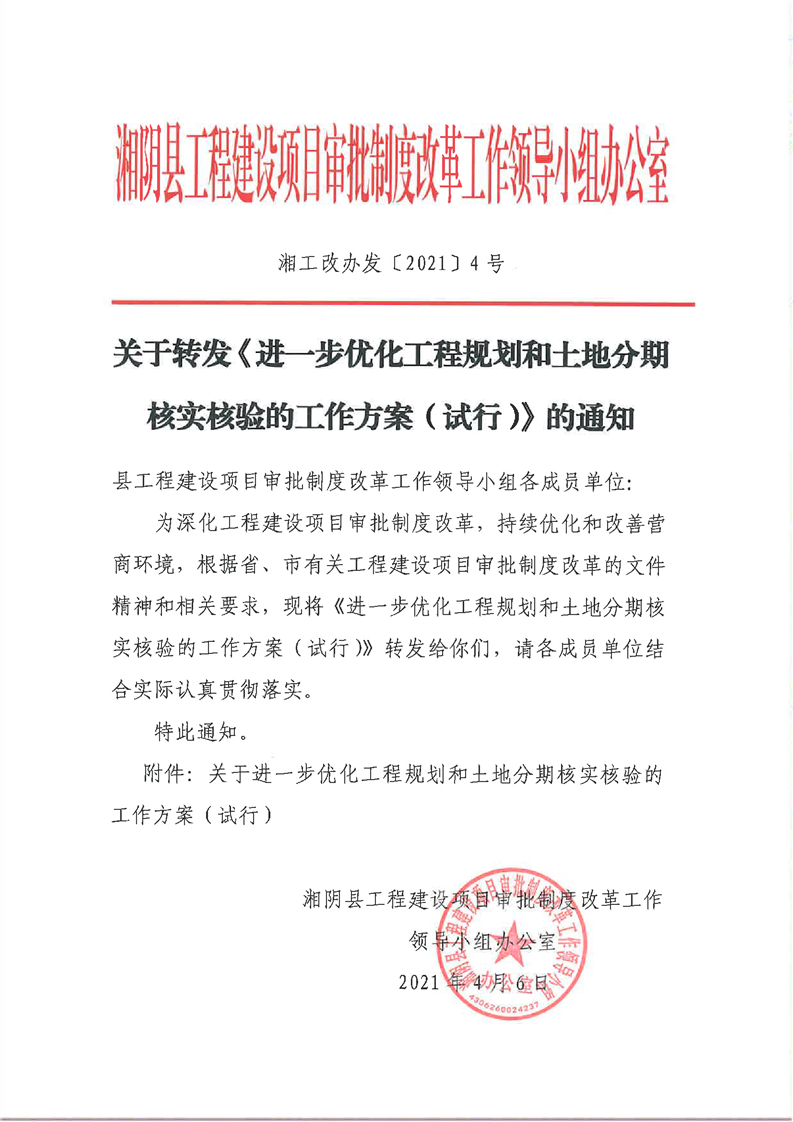 关于转发《进一步优化工程规划和土地分期核实核验的工作方案(试行)》的通知