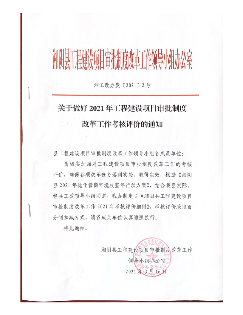 关于做好2021年工程建设项目审批制度改革工作考核评价的通知