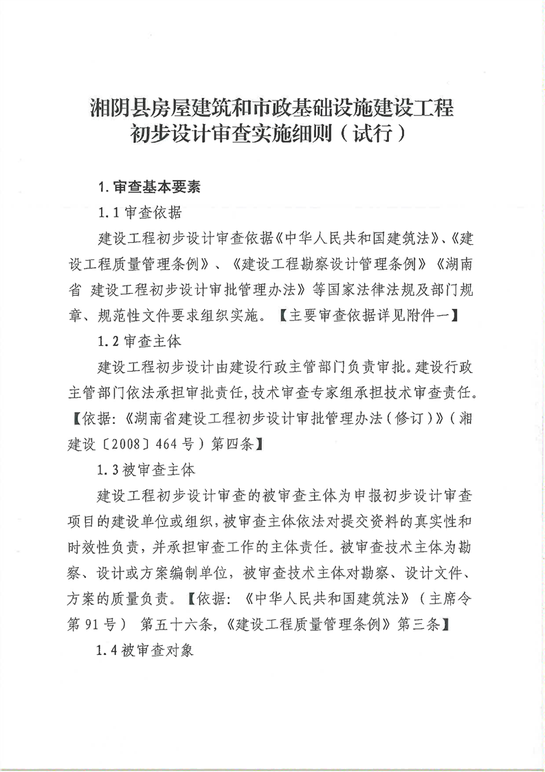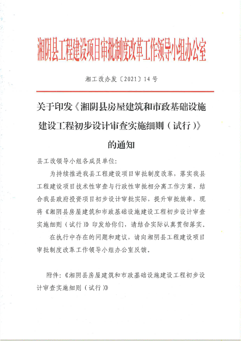 关于印发《湘阴县房屋建筑和市政基础设施建设工程初步设计审查实施细则(试行)》的通知