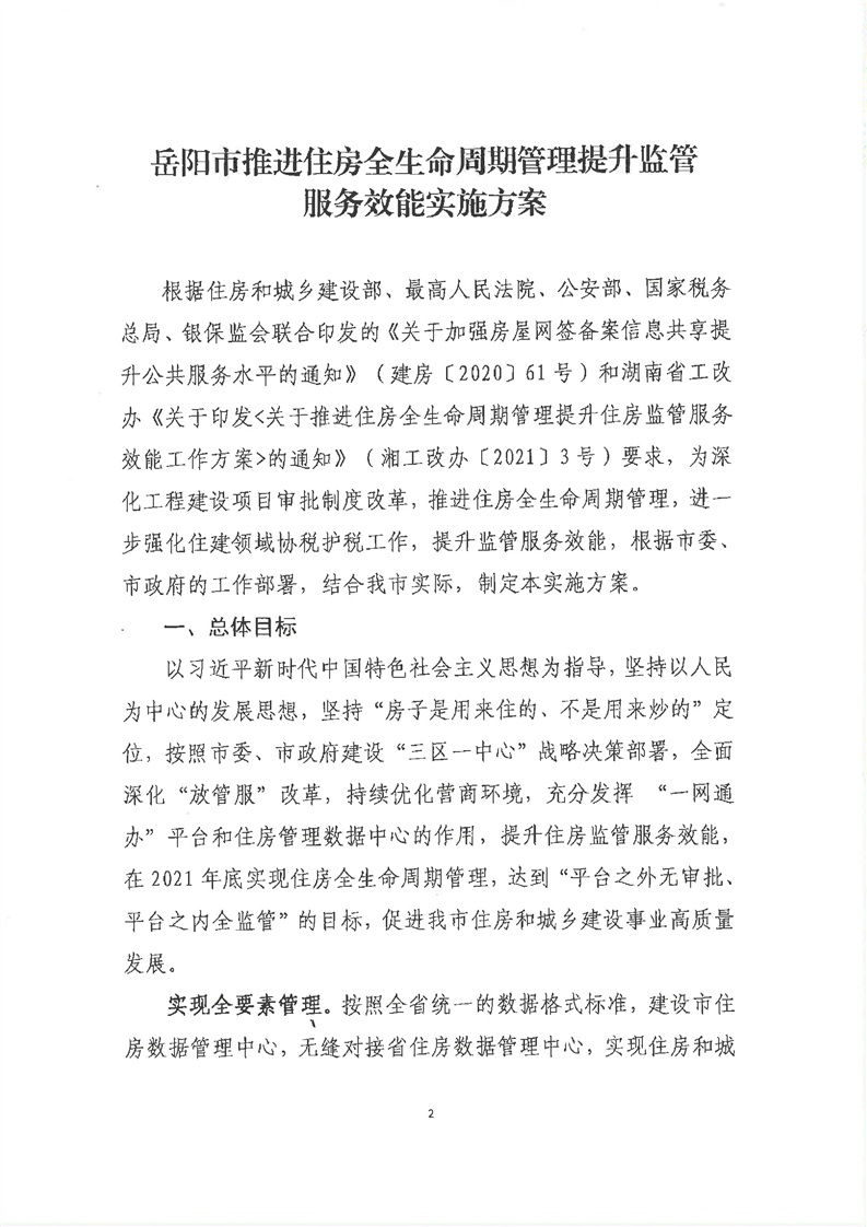 关于转发《岳阳市推进住房全生命周期管理提升监管服务效能实施方案》的通知