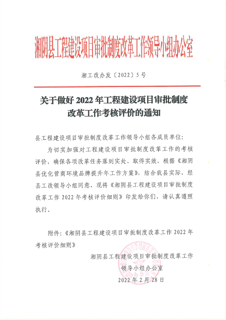 关于做好2022年工程建设项目审批制度改革工作考核评价的通知