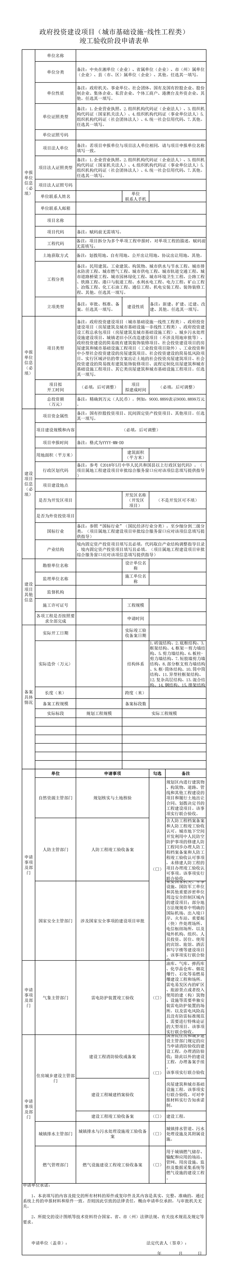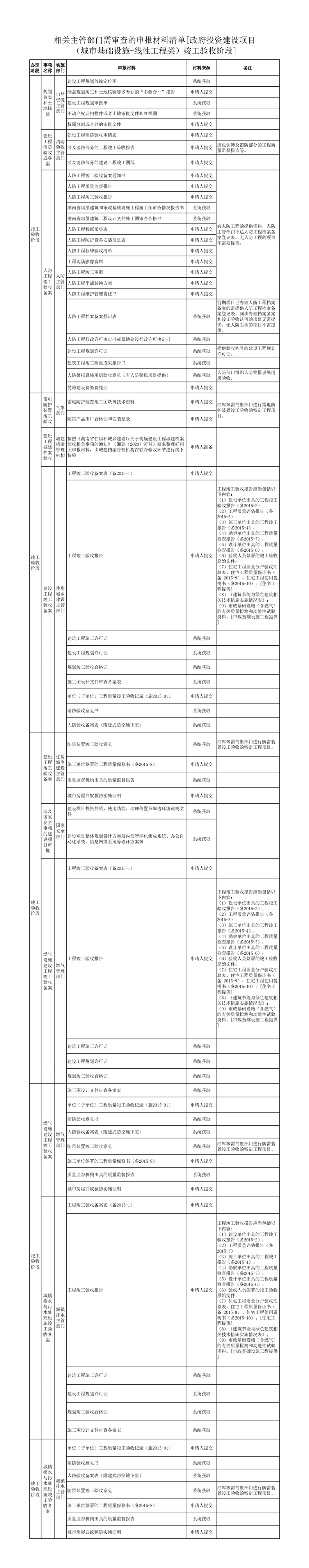 政府投资建设项目(城市基础设施-线性工程类)竣工验收阶段申请表单、申报材料清单
