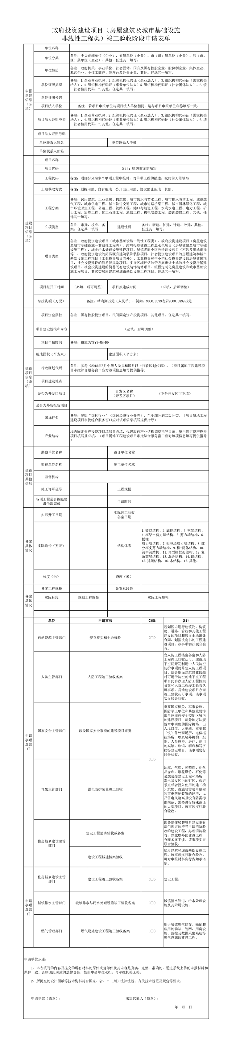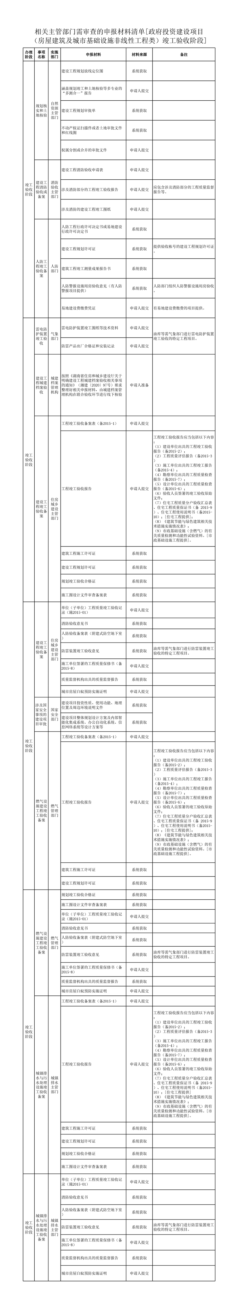 政府投资建设项目(房屋建筑、城市基础设施非线性工程类)竣工验收阶段申请表单、申报材料清单