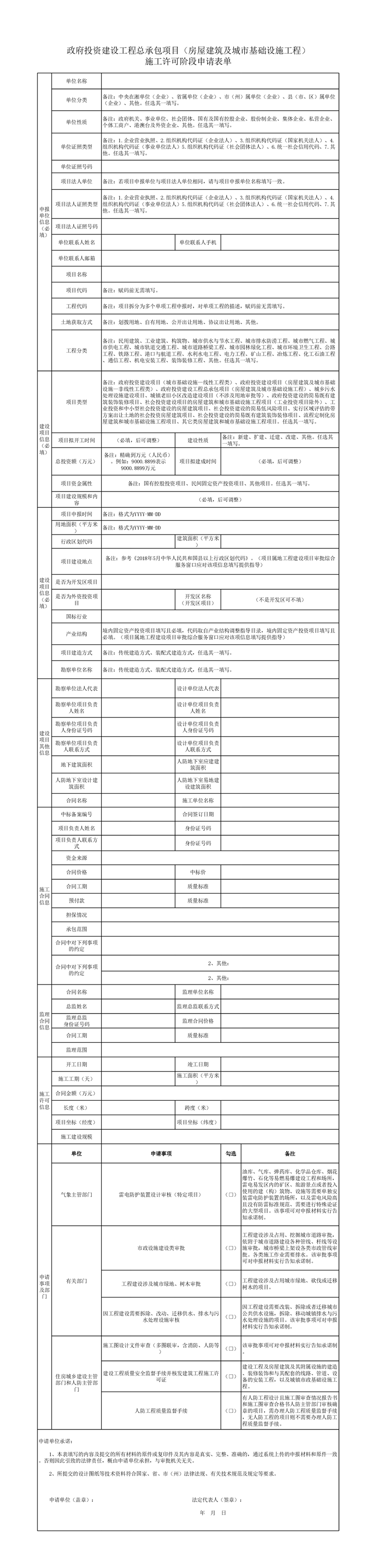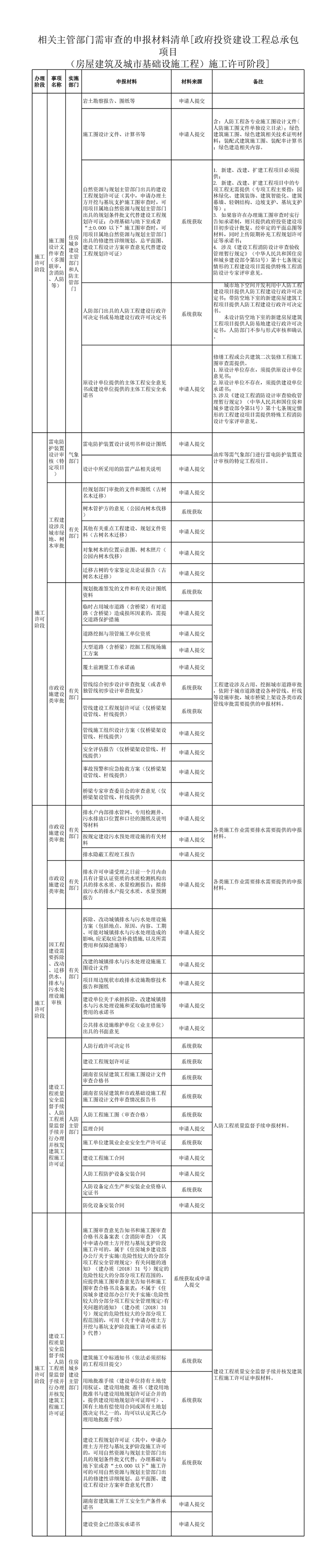 政府投资建设工程总承包项目(房屋建筑及城市基础设施工程)施工许可阶段申请表单、申报材料清单