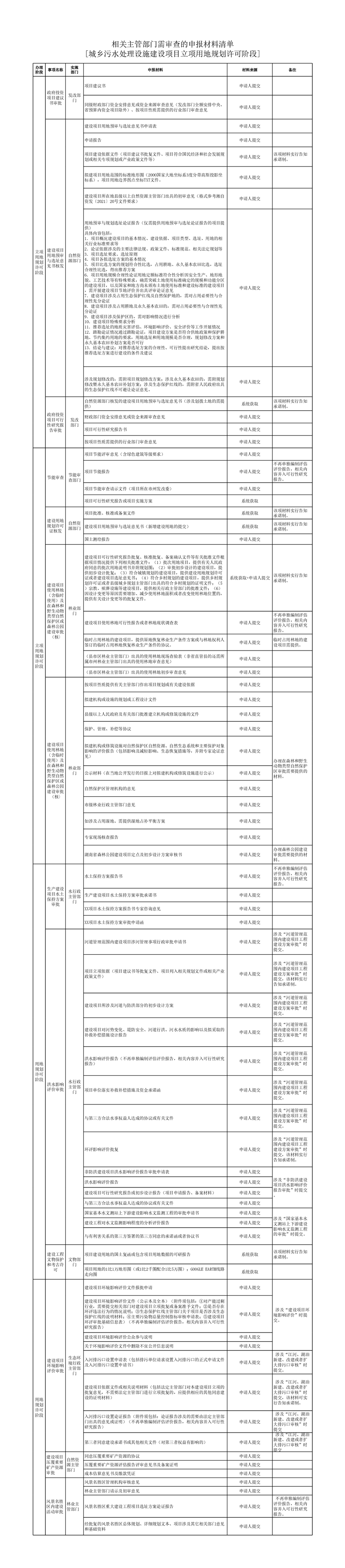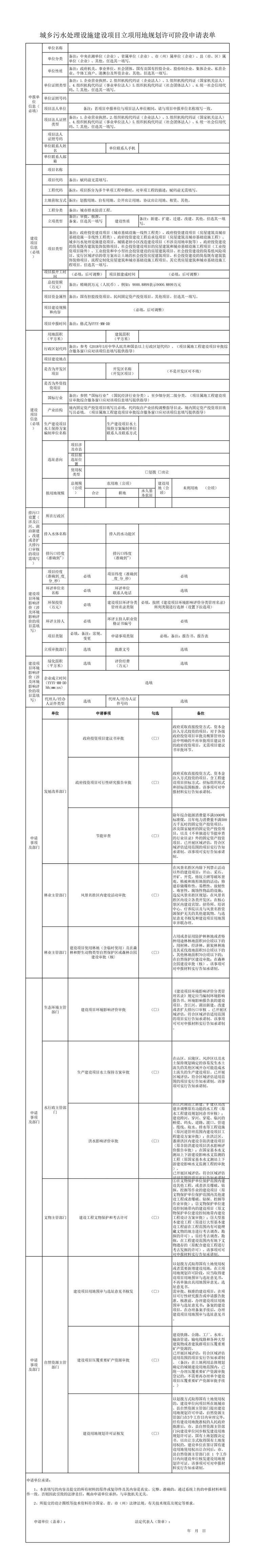 城乡污水处理设施建设项目立项用地规划许可阶段申请表单、申报材料清单