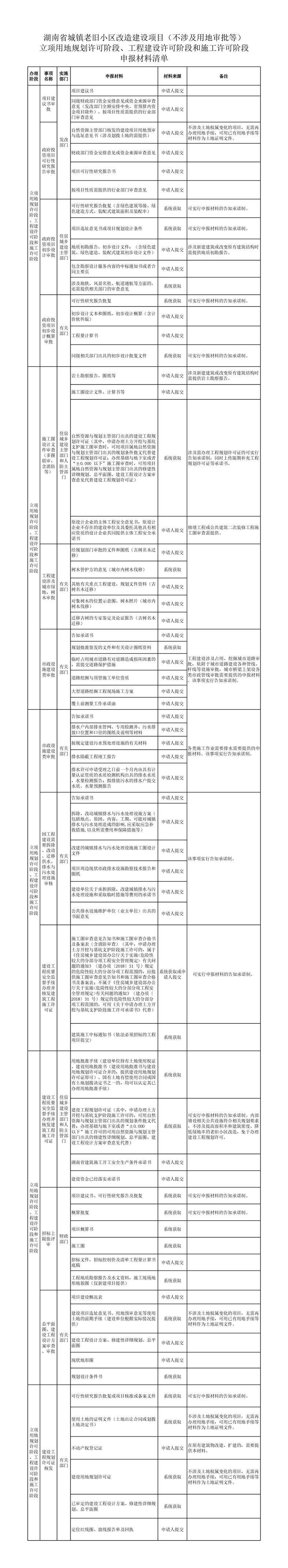城镇老旧小区改造建设项目(不涉及用地审批等)立项用地规划许可阶段、工程建设许可阶段和施工许可阶段申请表单、申报材料清单