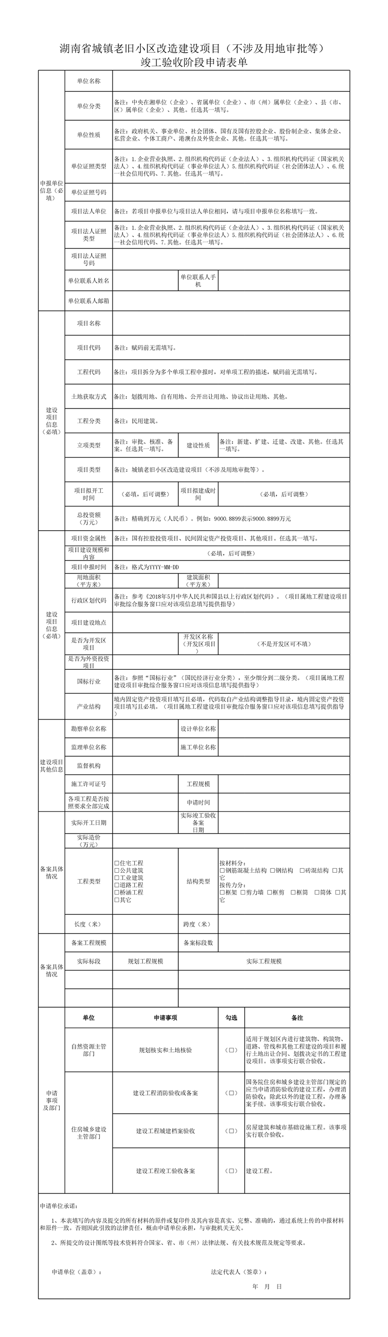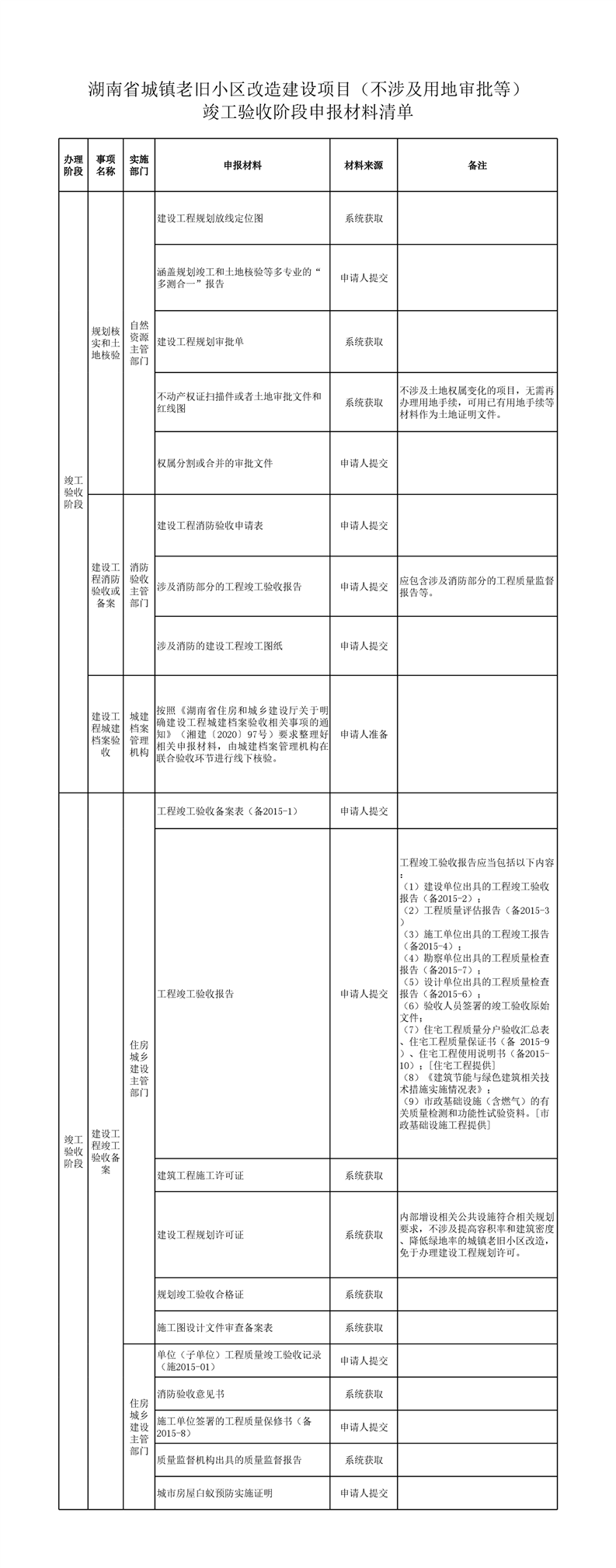 城镇老旧小区改造建设项目(不涉及用地审批等)竣工验收阶段申请表单、申报材料清单