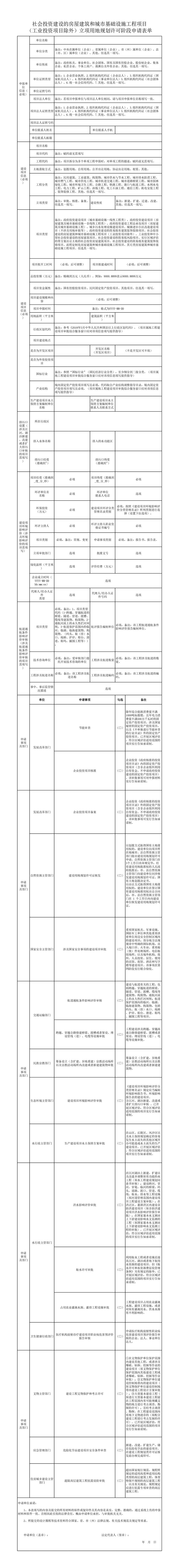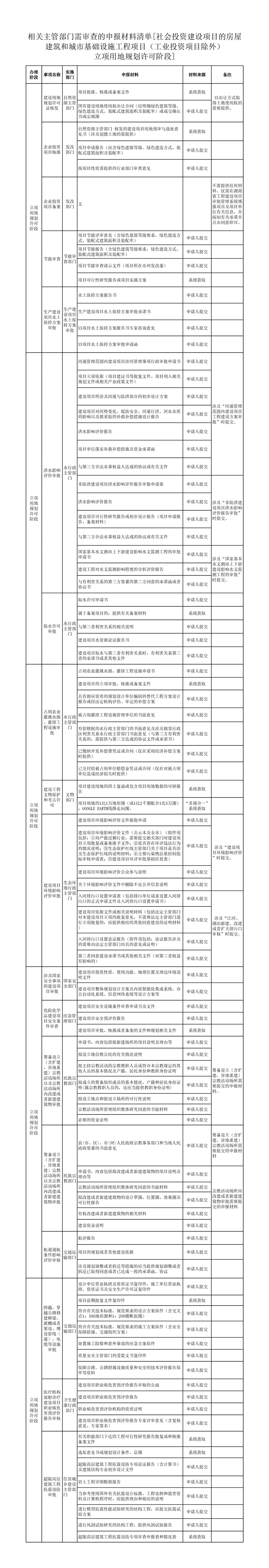 社会投资建设的房屋建筑和城市基础设施工程项目(工业投资项目除外)立项用地规划许可阶段申请表单、申报材料清单