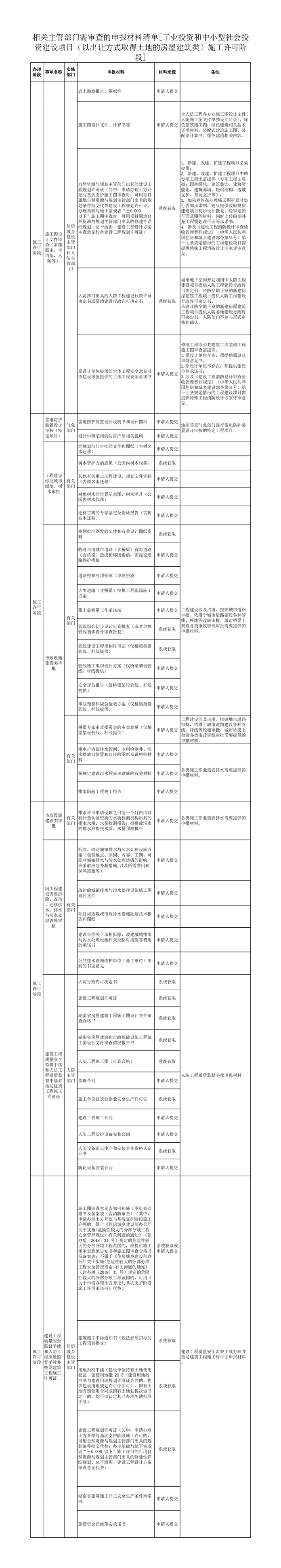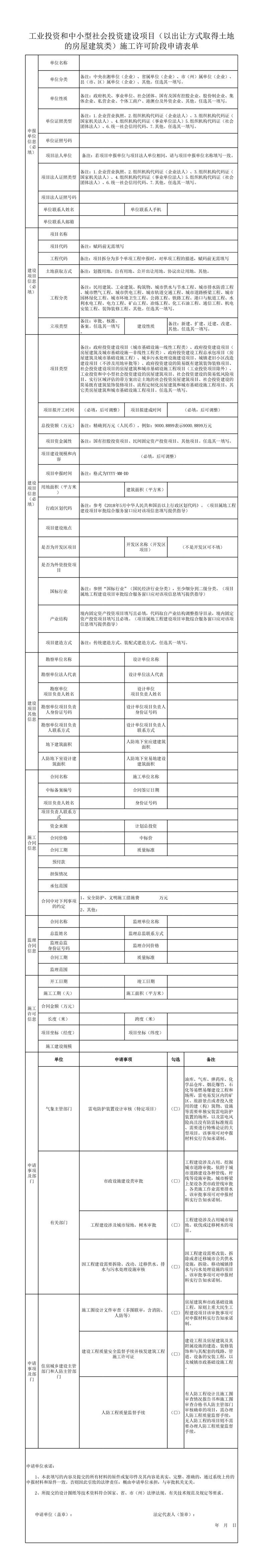 工业投资和中小型社会投资建设项目(以出让方式取得土地的房屋建筑类)施工许可阶段申请表单、申报材料清单