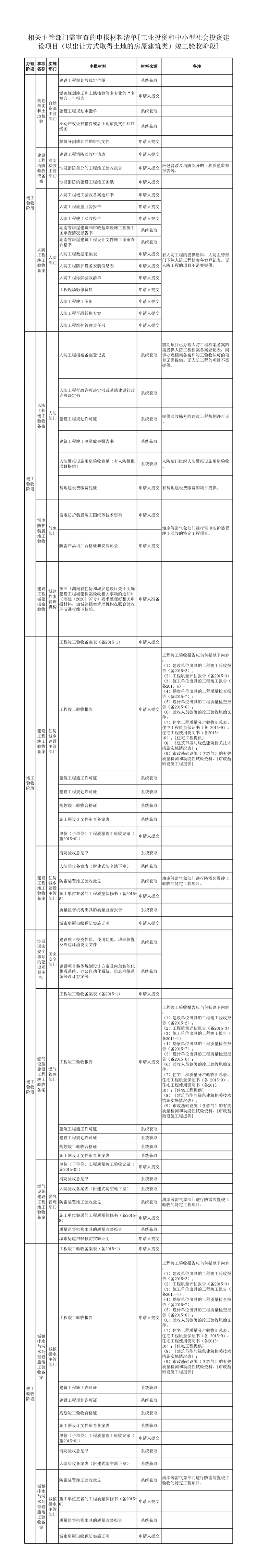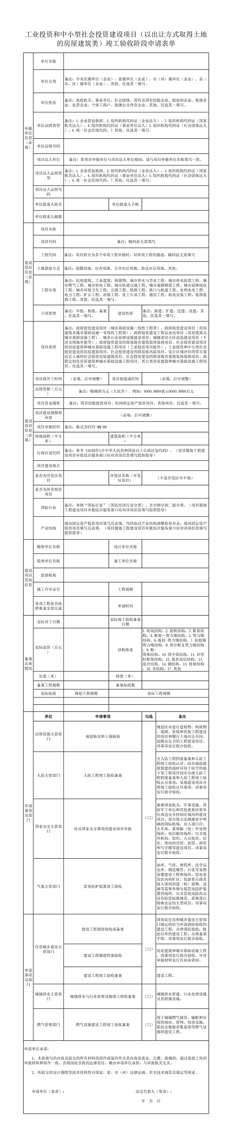 工业投资和中小型社会投资建设项目(以出让方式取得土地的房屋建筑类)竣工验收阶段申请表单、申报材料清单