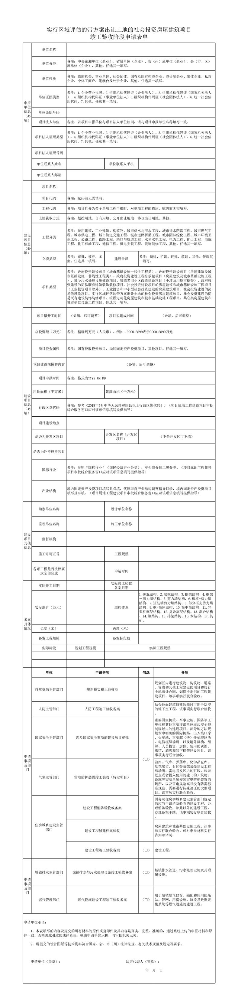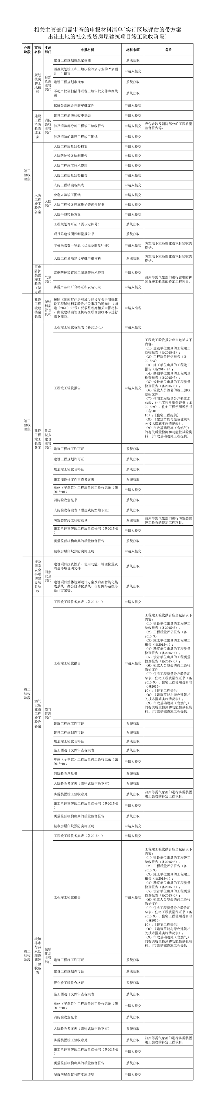实行区域评估的带方案出让土地的社会投资房屋建筑项目竣工验收阶段申请表单、申报材料清单