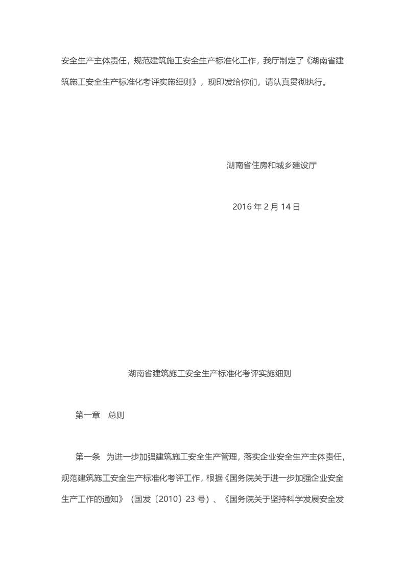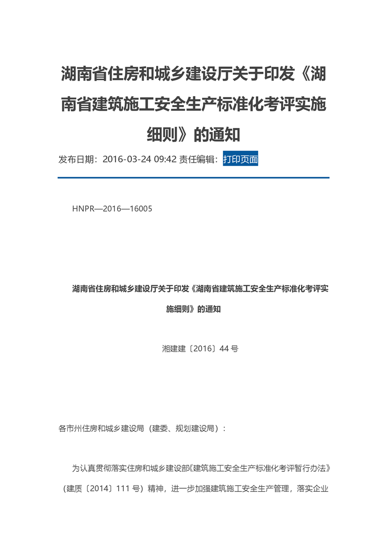 湖南省住房和城乡建设厅关于印发《湖南省建筑施工安全生产标准化考评实施细则》的通知