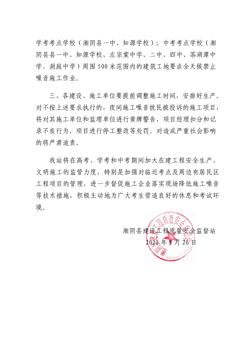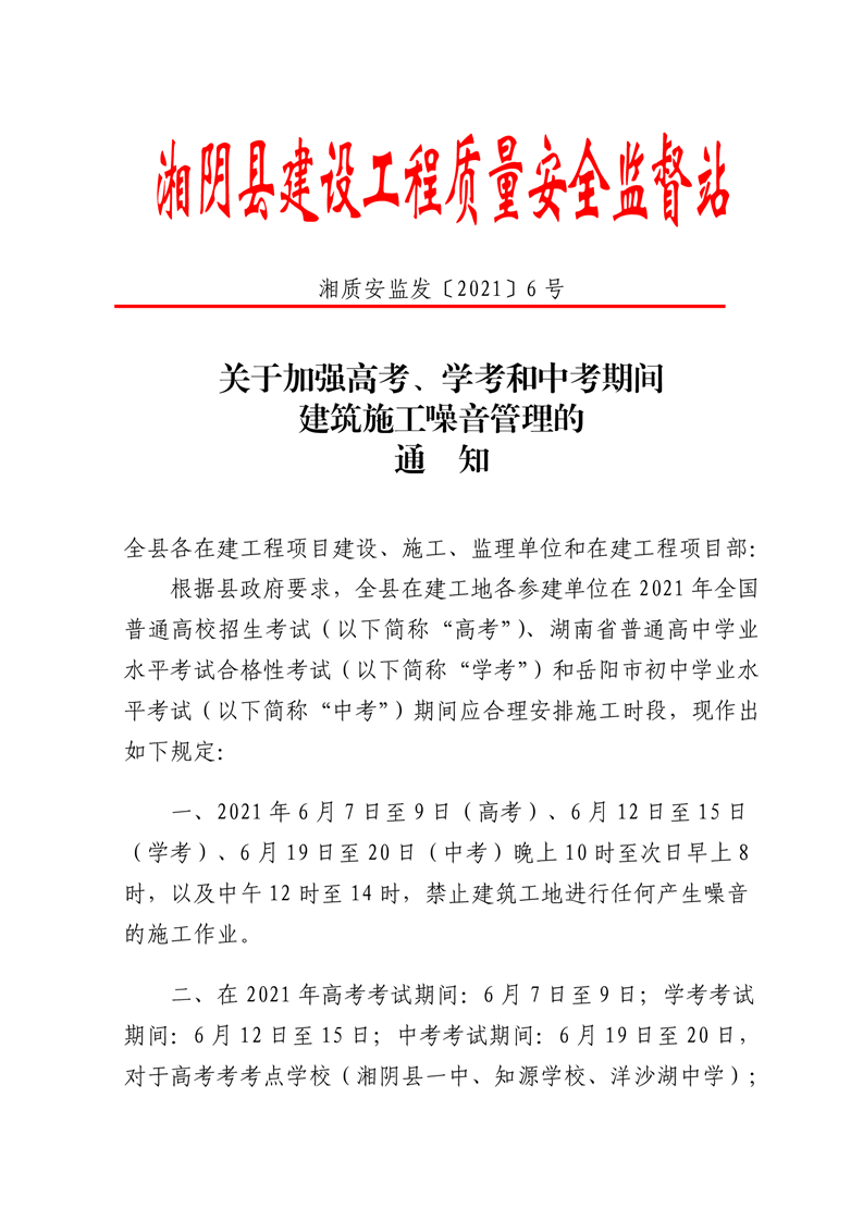 关于加强高考、学考和中考期间建筑施工噪音管理的通知