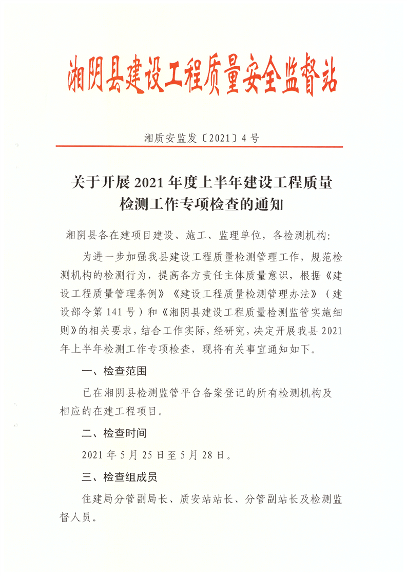 关于开展2021年度上半年建设工程质量检测工作专项检测的通知