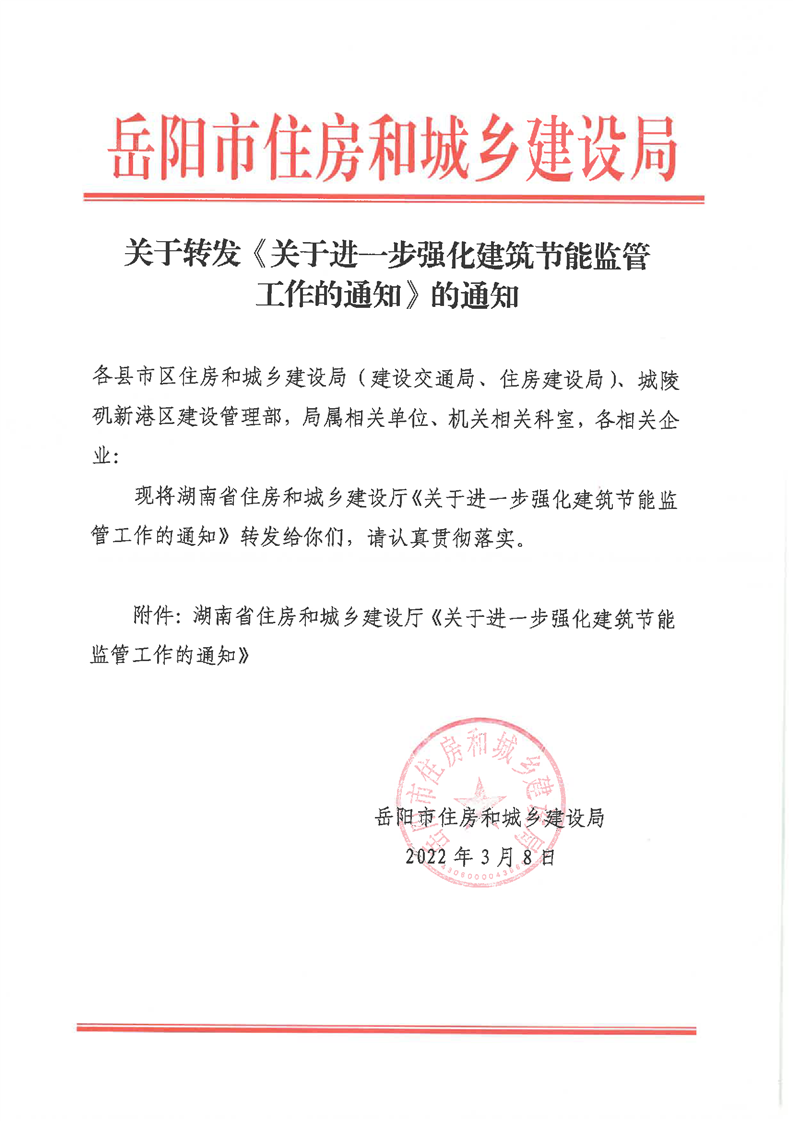 关于转发《关于进一步强化建筑节能监管工作的通知》的通知